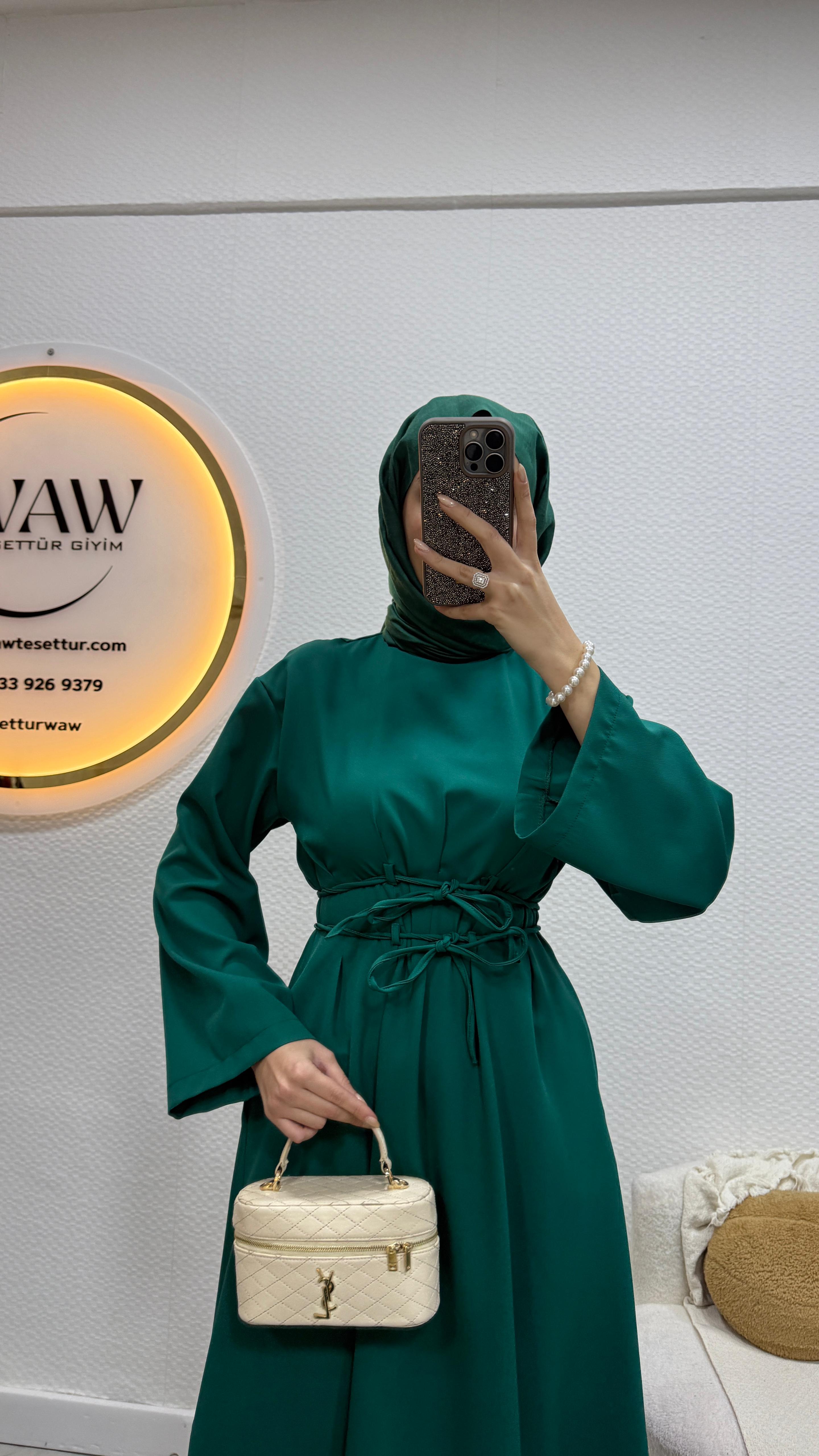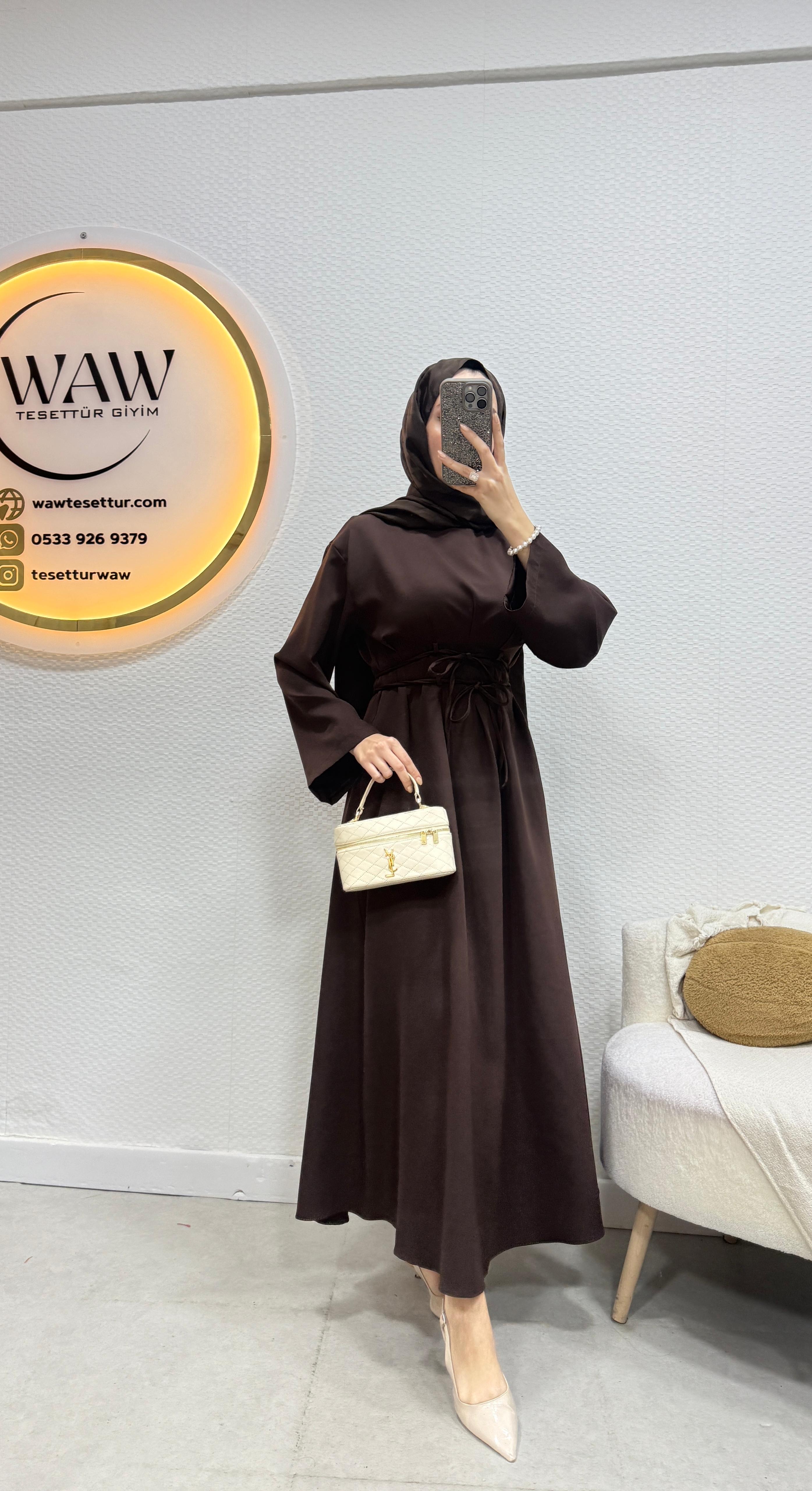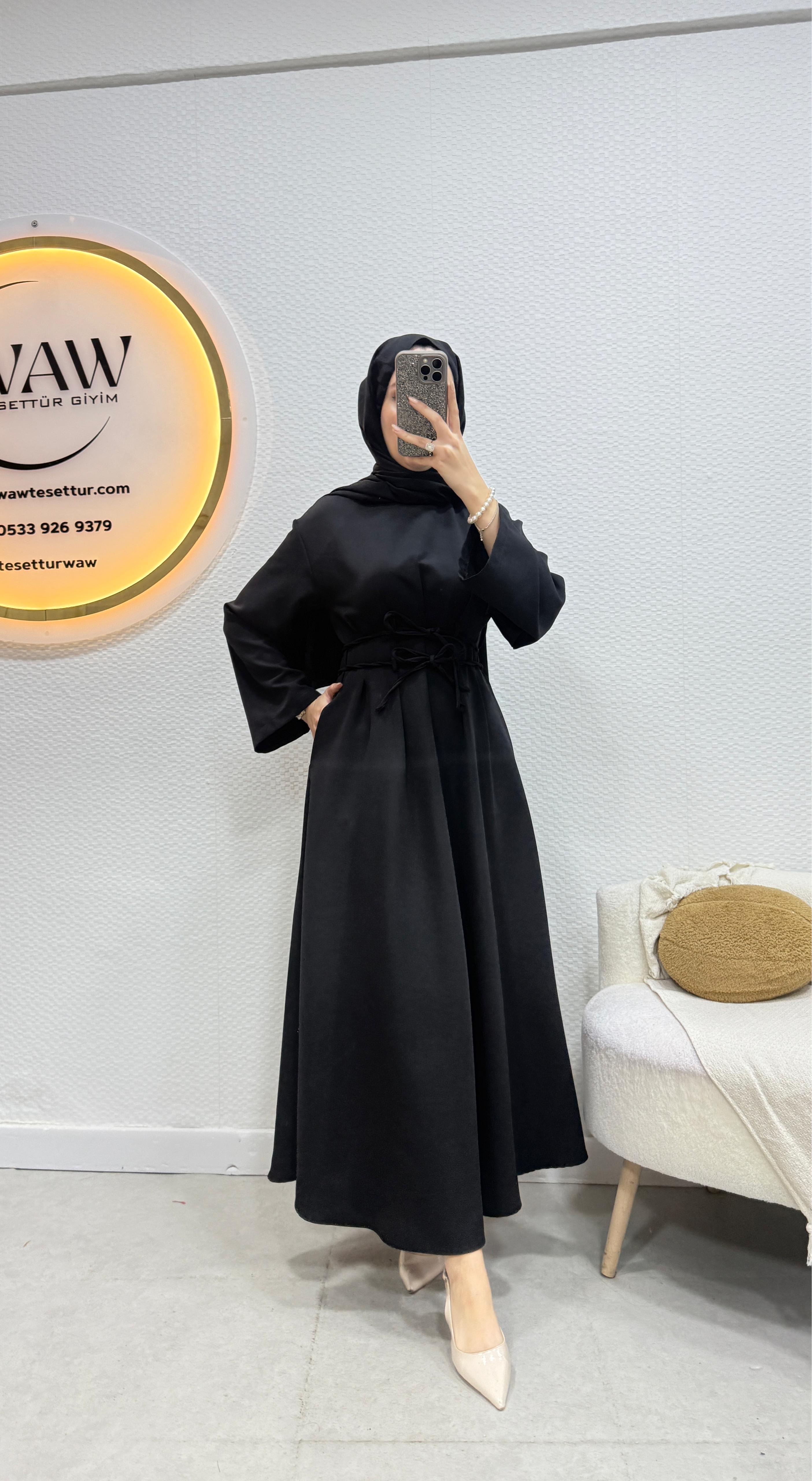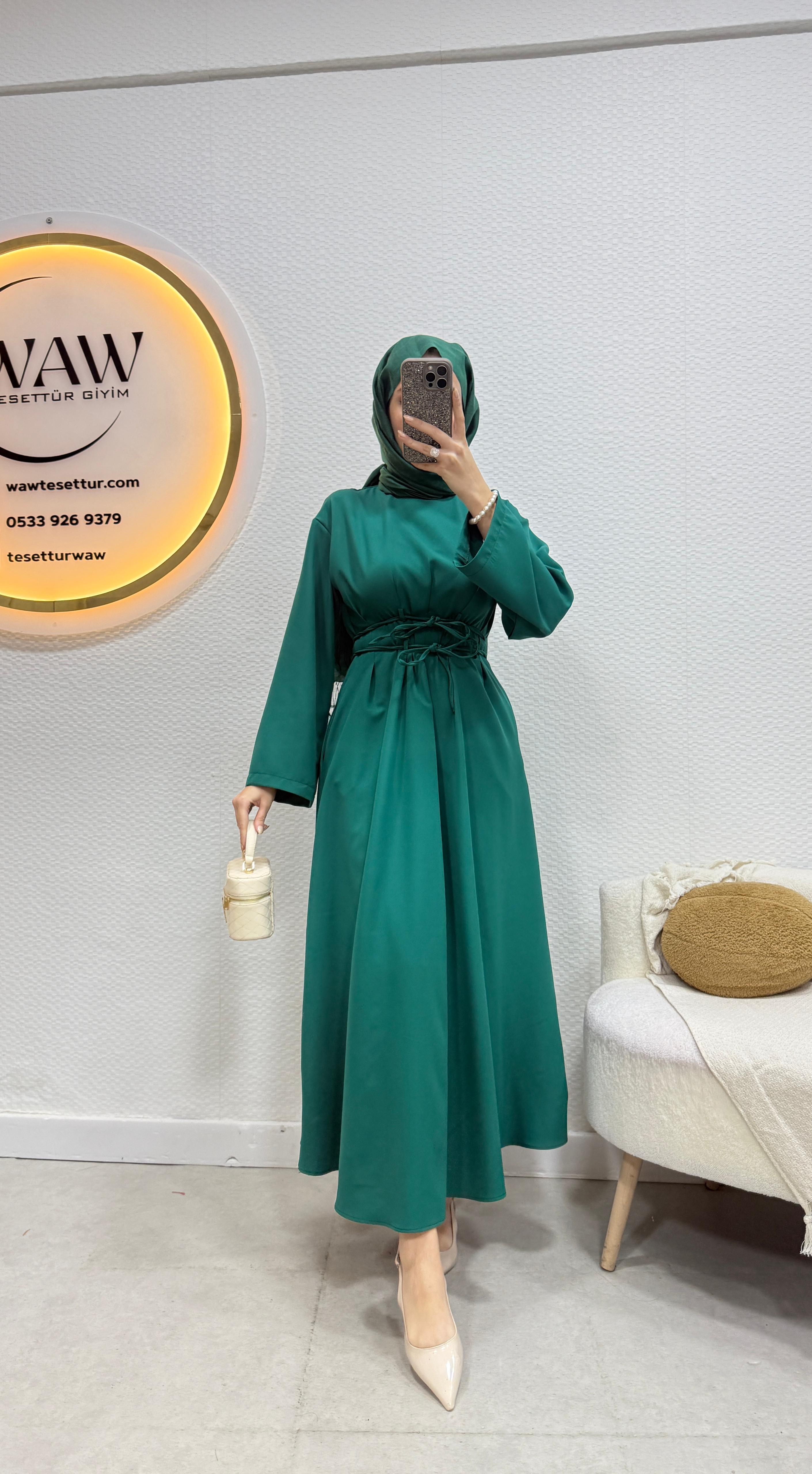 Gelince Haber VerÜrünümüz birinci kalite dabıl krep Kumaştan üretilmiştir.Bel bağlama detaylıdır.Kol İspanyol kesimdir .Kalem formdadır.Ürün boyu 135cm’dir.Ürünümüz tam kalıptır.Asimetrik kesimdir.36/38/40/42/44 bedenler mevcuttur.Manken 170/60kg 38 giymektedir.