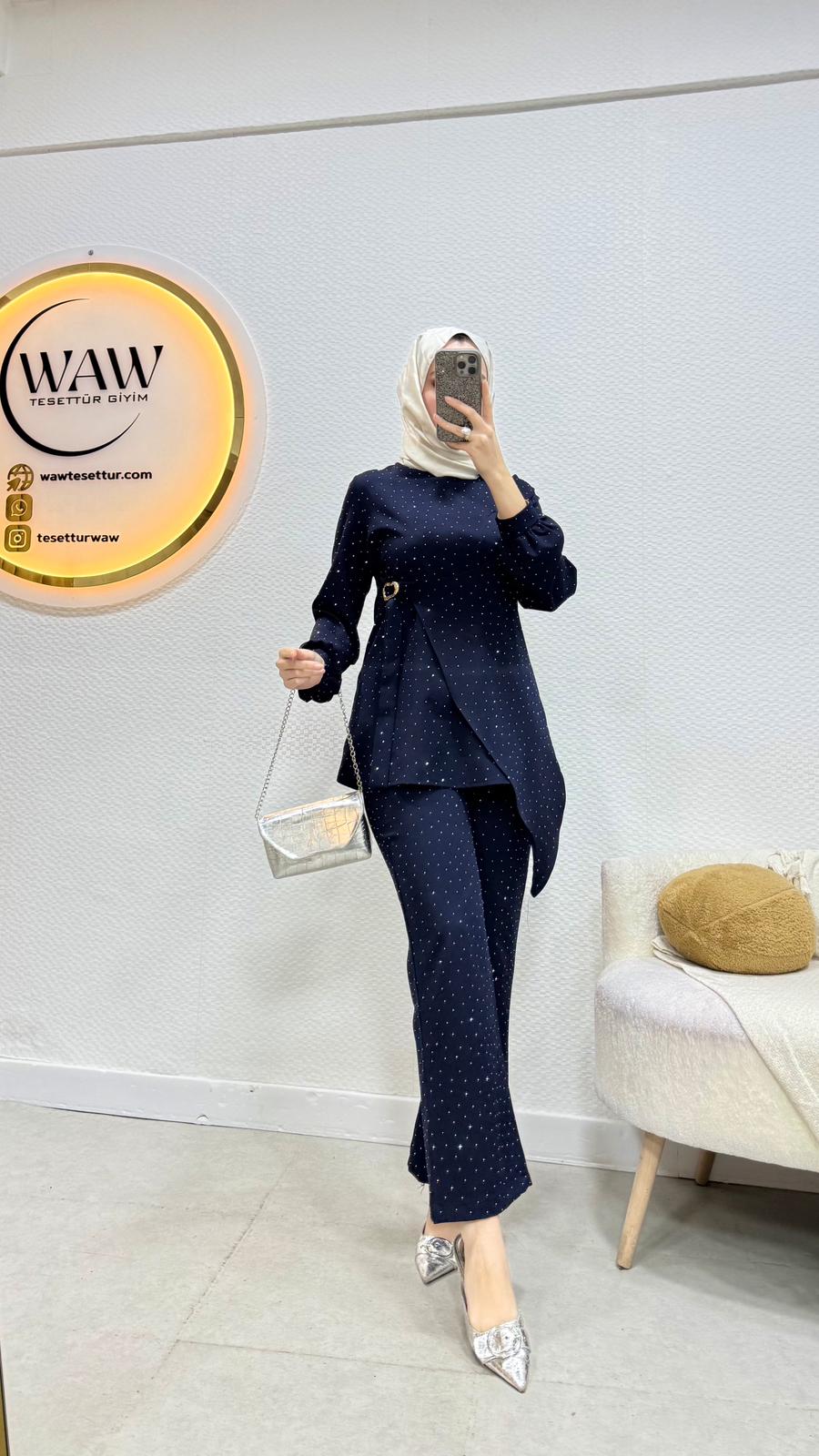 Tunik/Pantolon şeklinde ikili takımdır.