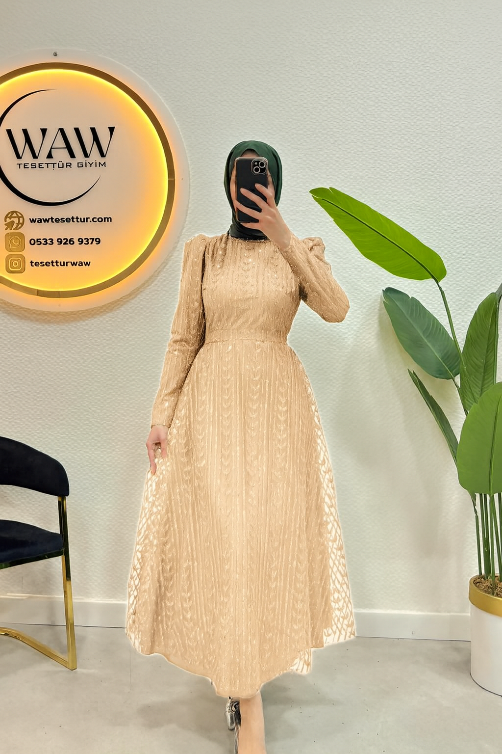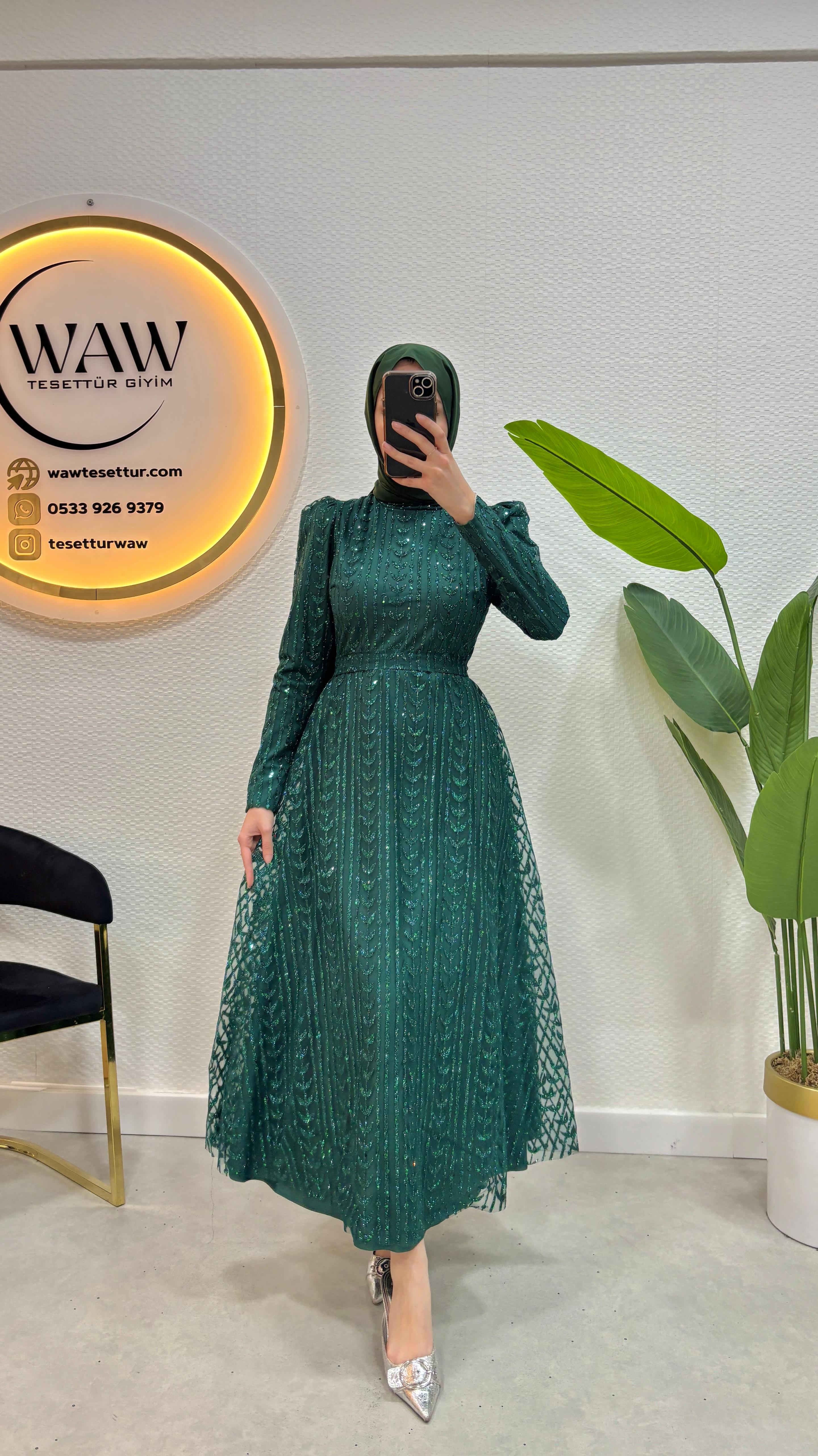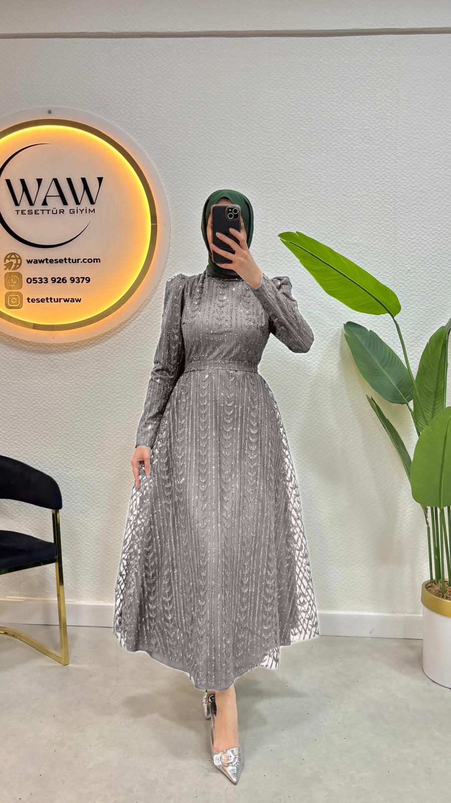 Simli tül kumaştan imal edilmiştir.