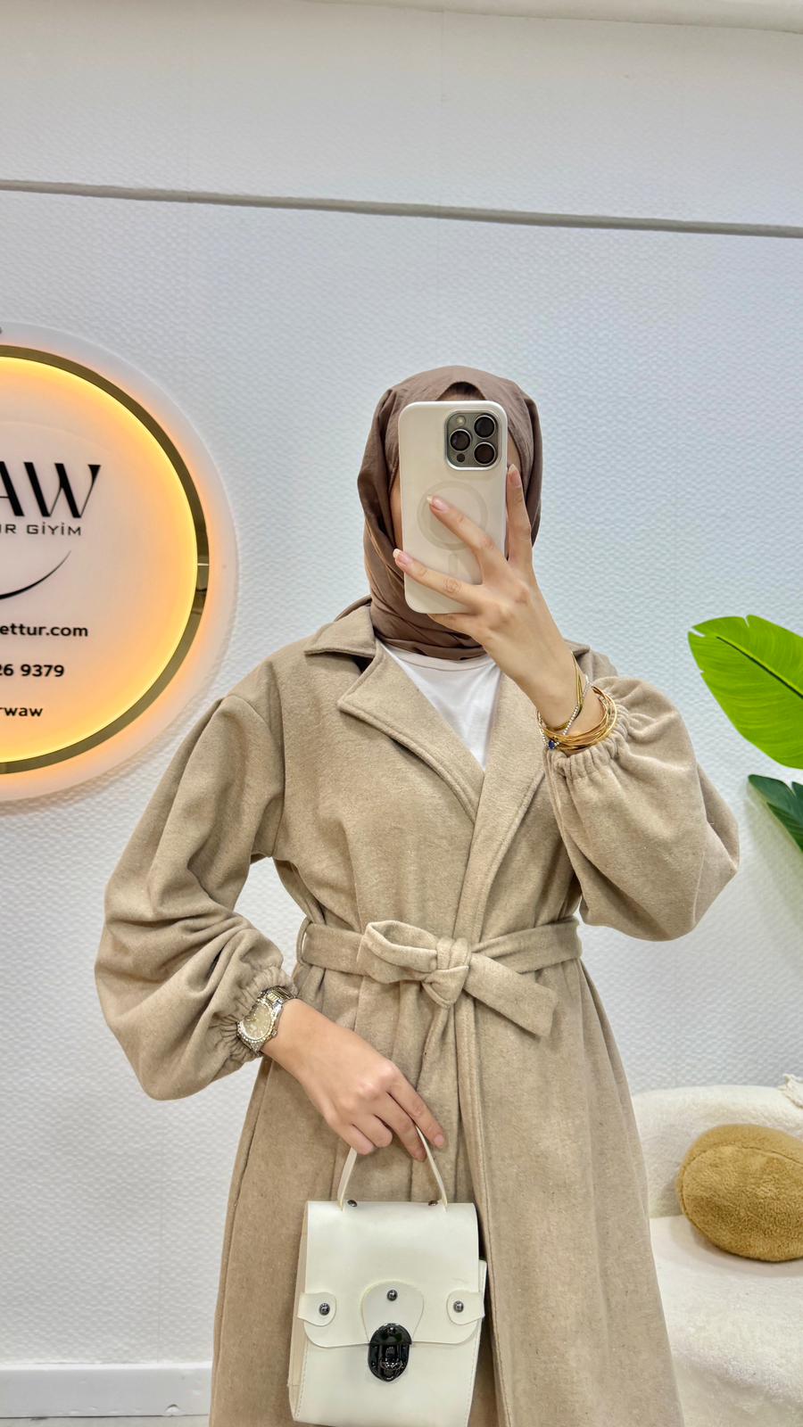 1.kalite kaşe kumaştan üretilmiştir.36/38/40/42/44/46 bedenler mevcuttur.Ürün boyu 105cm'dir.Manken 170/60kg 38 giymektedir.