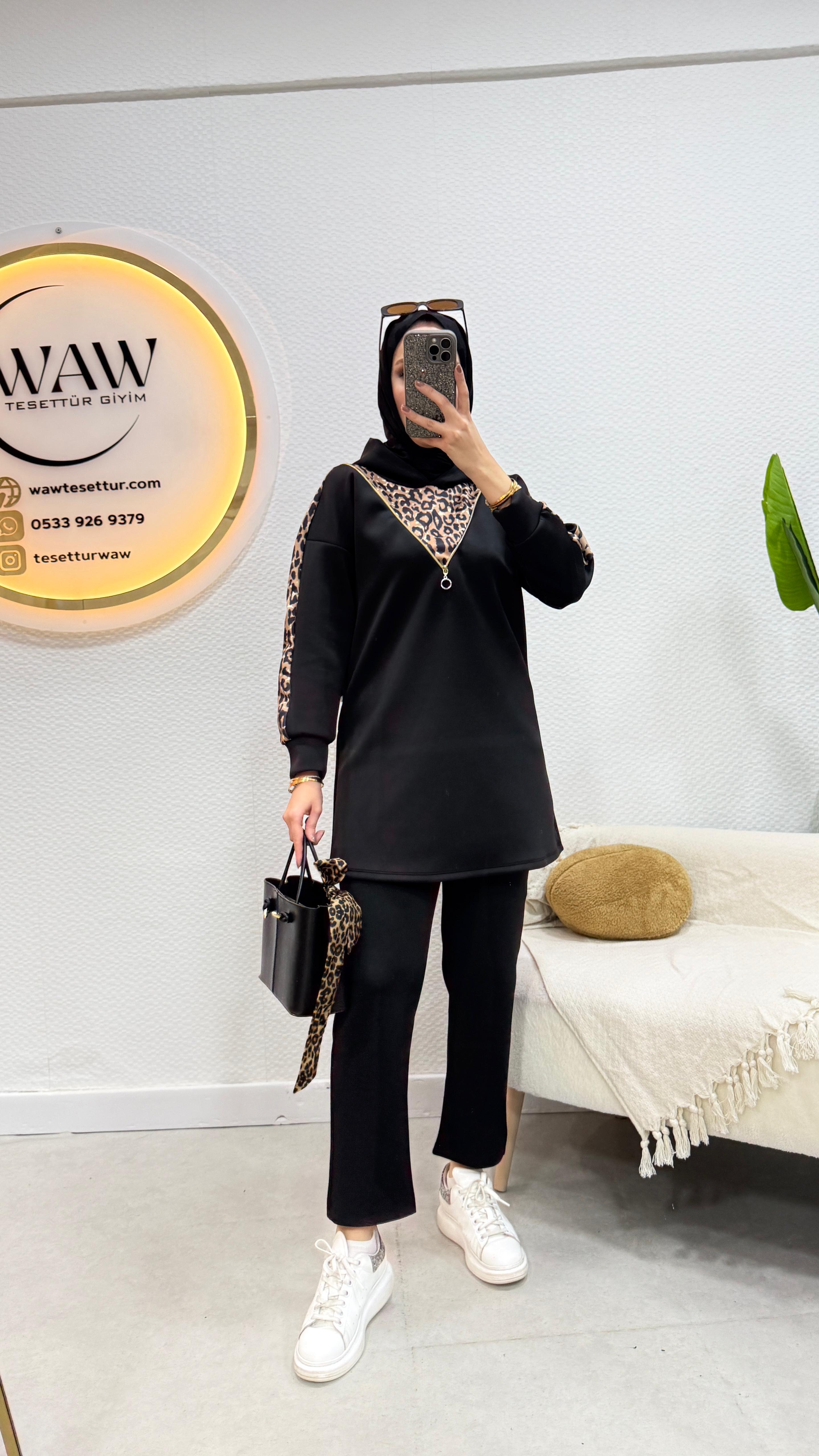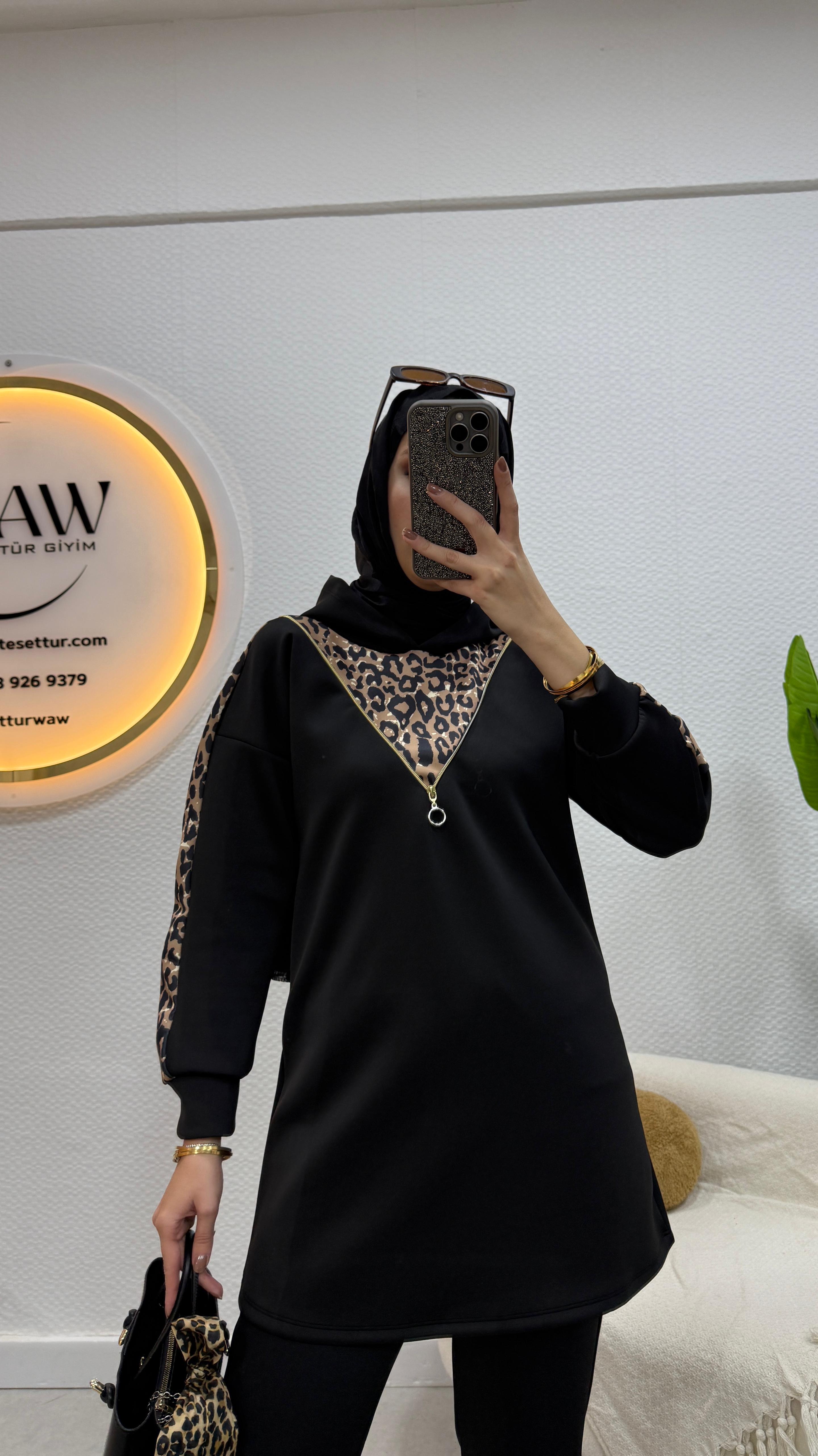 Gelince Haber VerÜrünümüz birinci kalite puf kumaştan üretilmiştir. Tunik/Pantolon şeklinde ikili takımdır. Tuniğimiz kapüşonludur,fermuar detaylıdır,leopar desenlidir. Pantolon bel lastiklidir.Ürünümüz tam kalıptır. üst 80cm alt 90cm'dir. 36/38/40/42/44 bedenler mevcuttur. Manken 170/60kg 38 beden giymektedir.