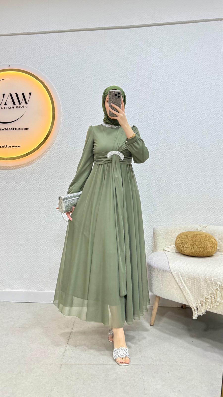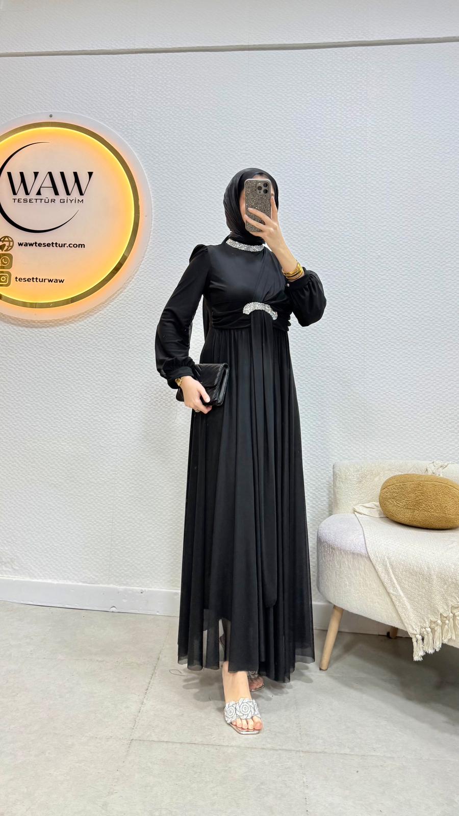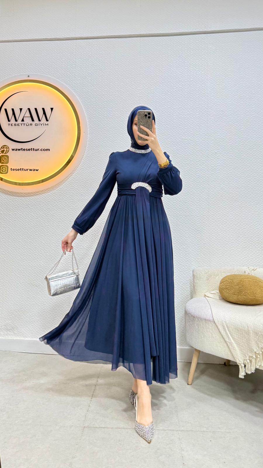 Arka orta gizli fermuarlıdır. Ürünümüz 145cmdir.