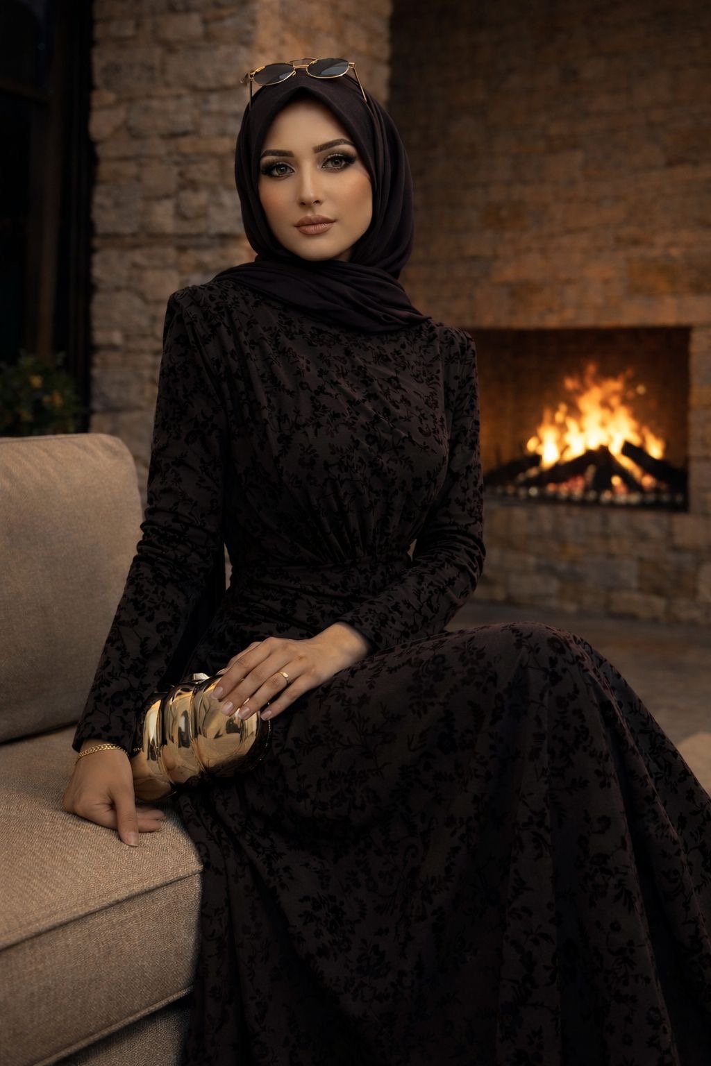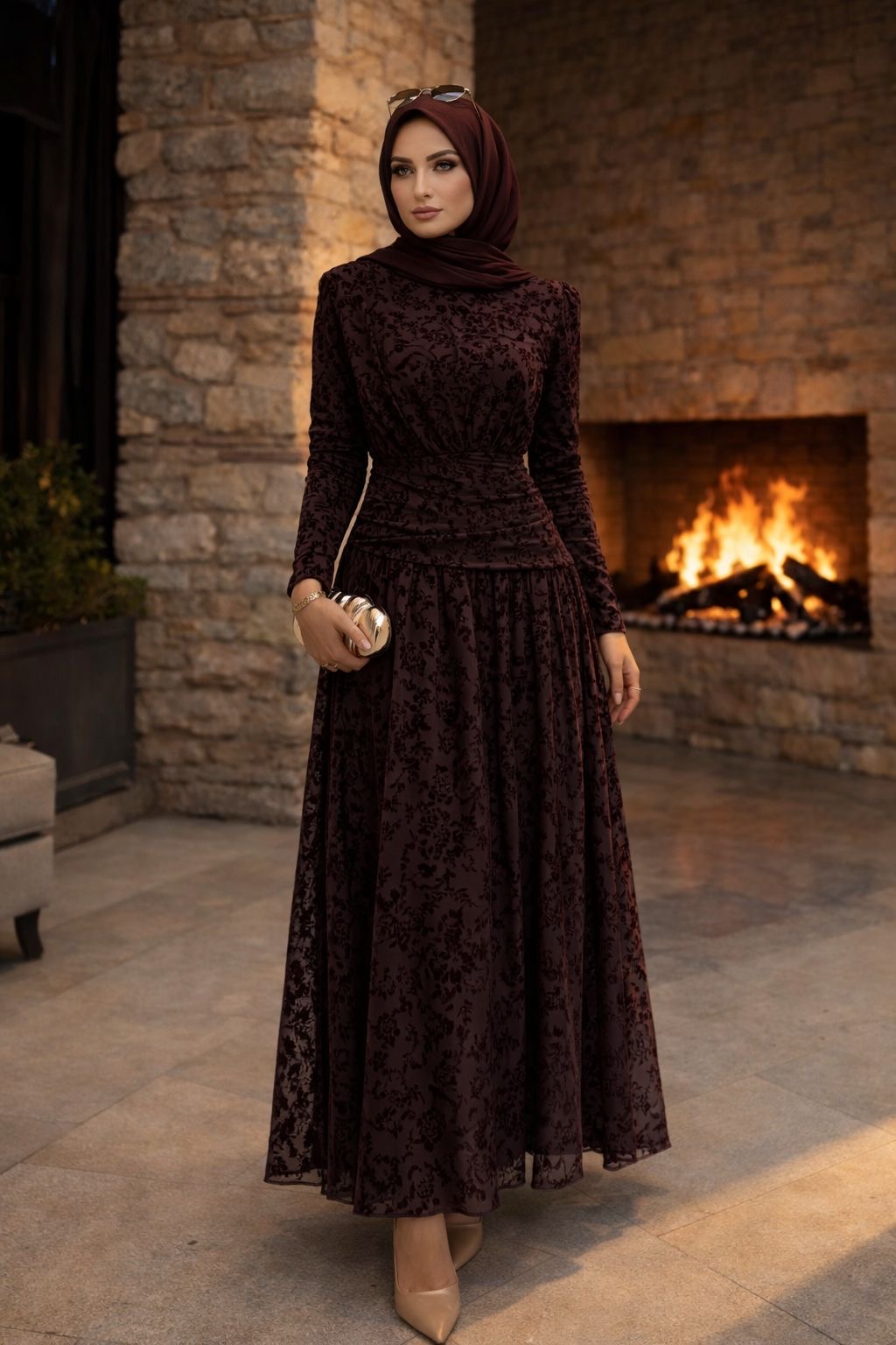 Likra filok baskı tül kumaştır.Yandan fermuarlıdır Boy:140cm Beden: tam kalıp Bedenler 36/38/40/42/44/46 Mankenin tercih ettiği beden 38