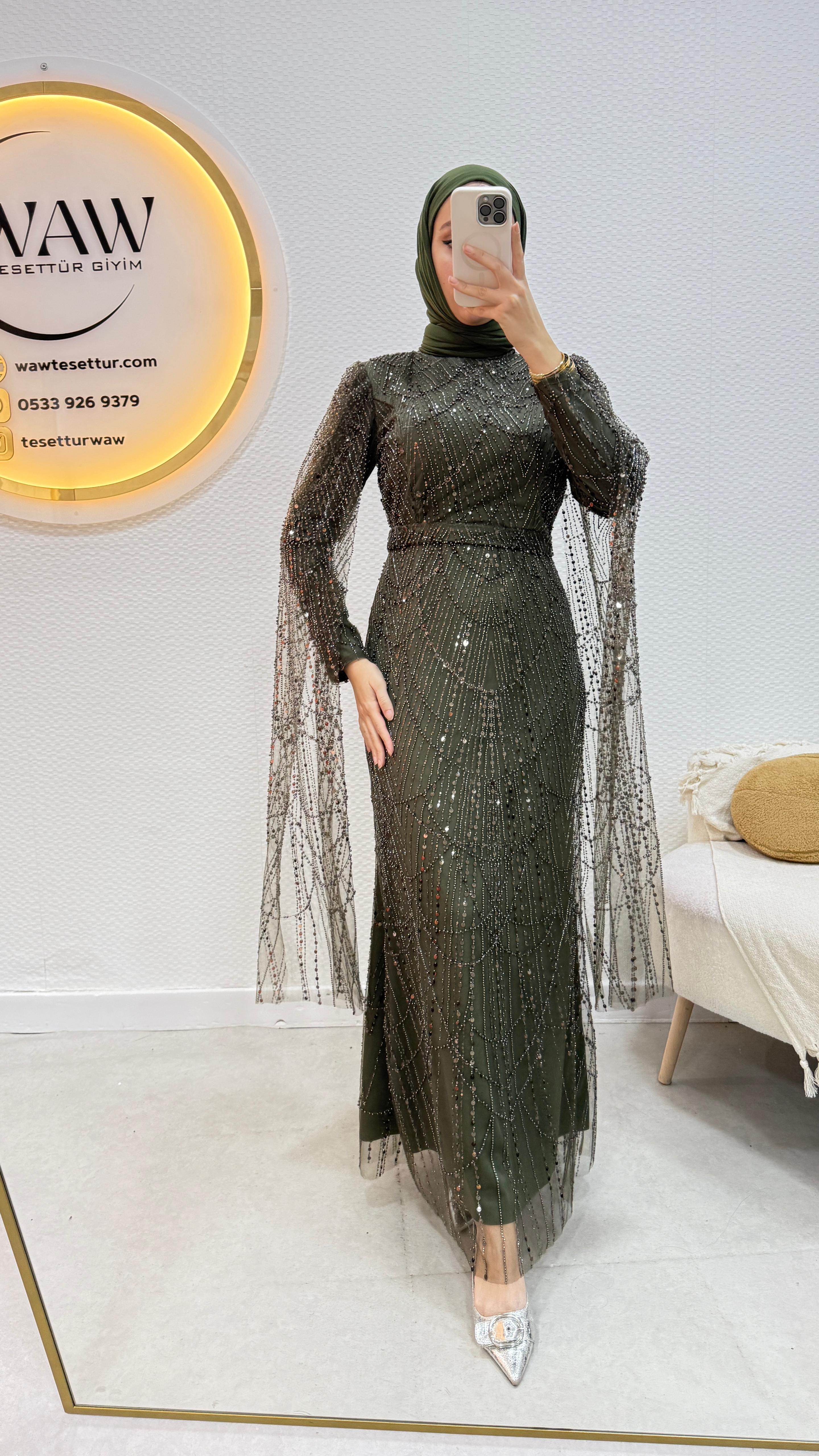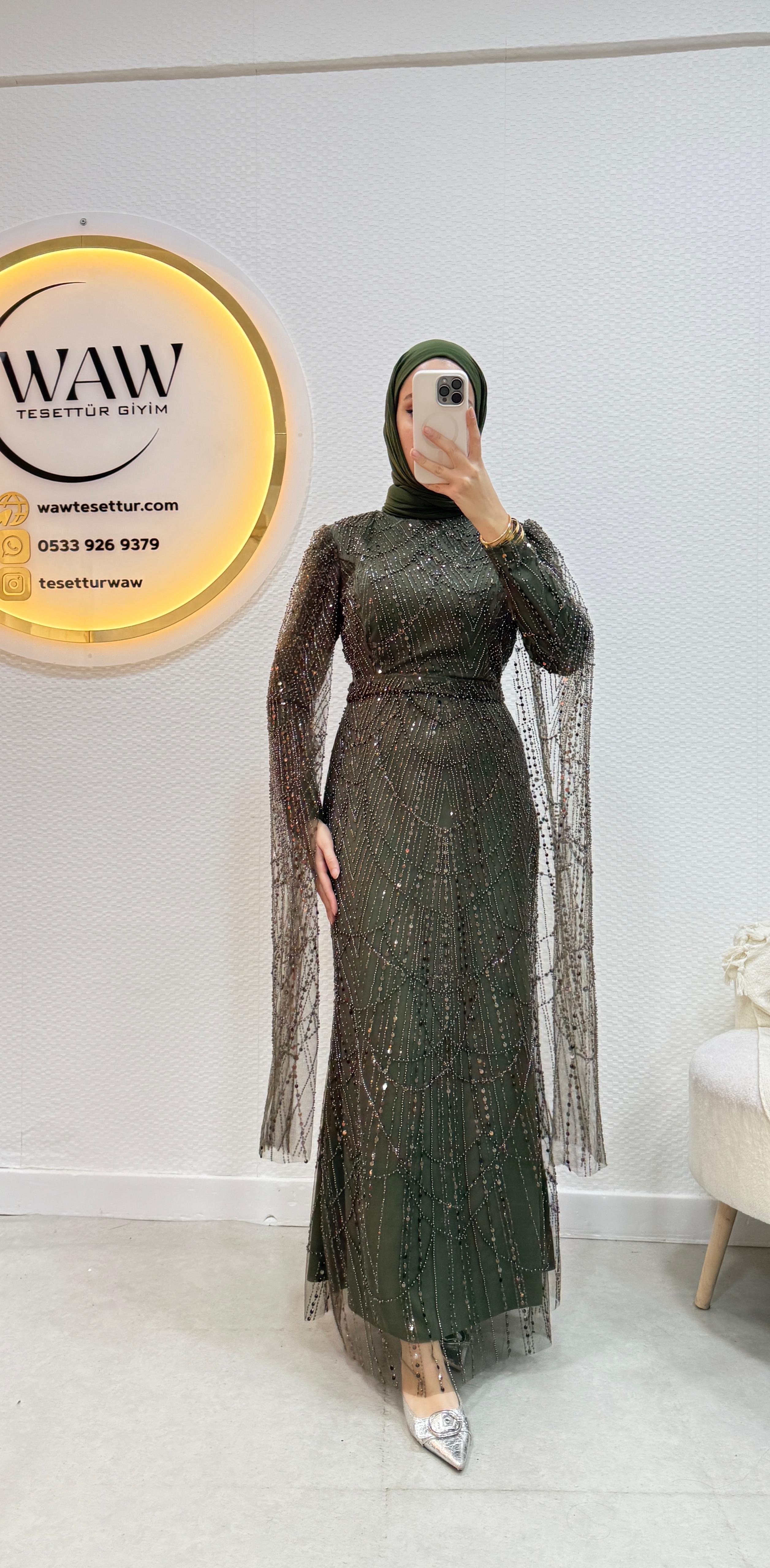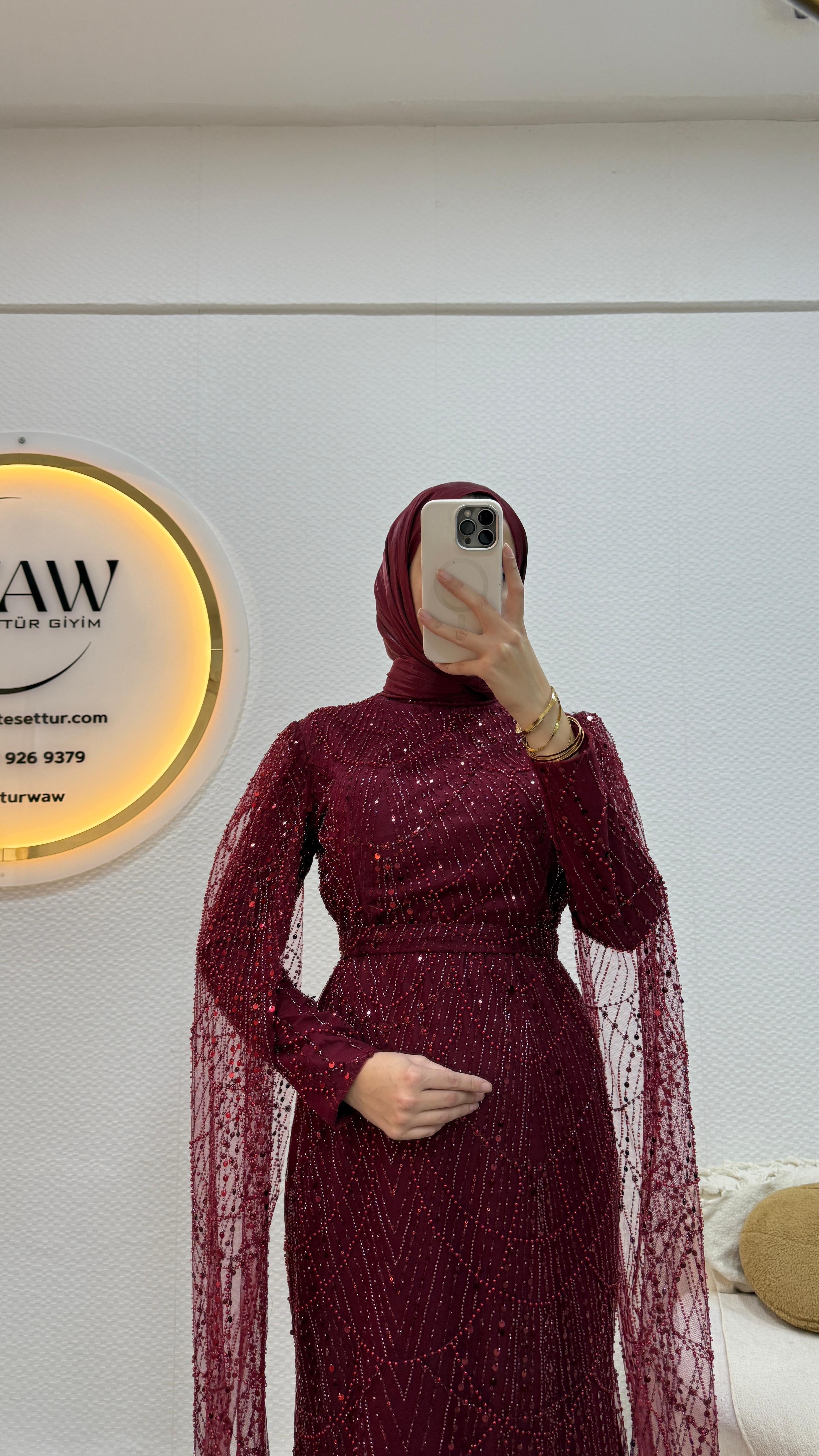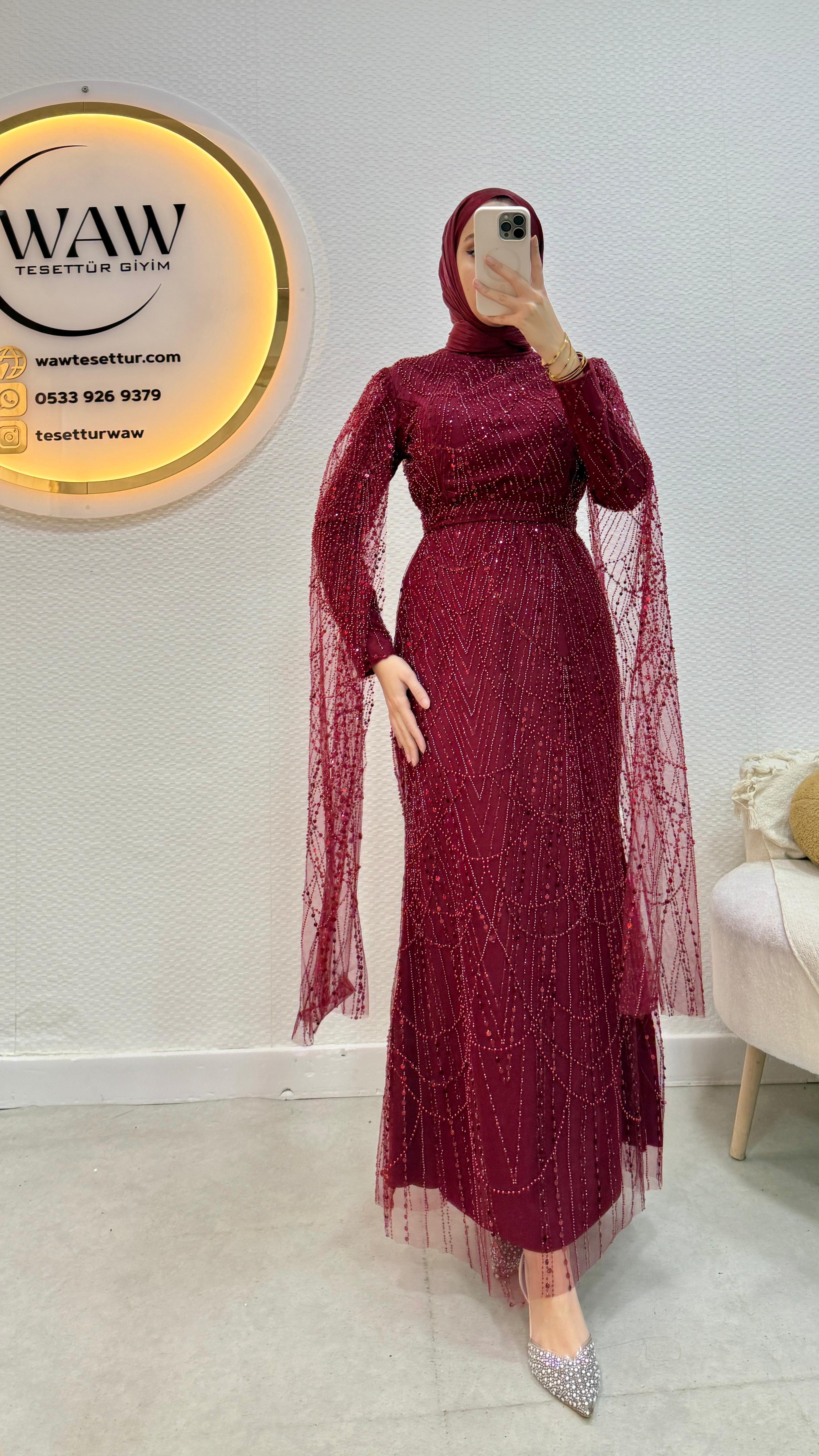 Ürünümüz işlemeli tül kumaştan üretilmiştir.