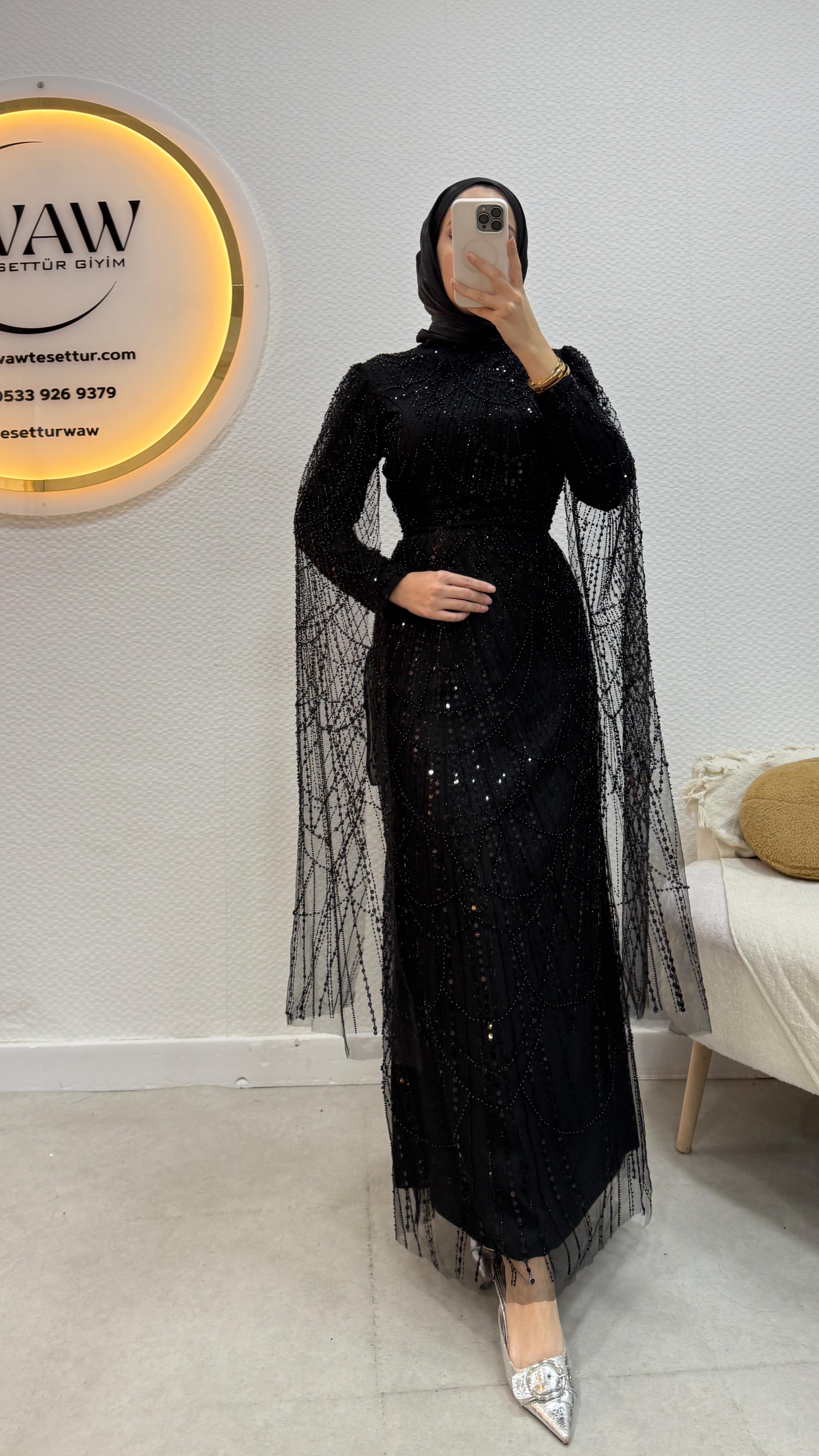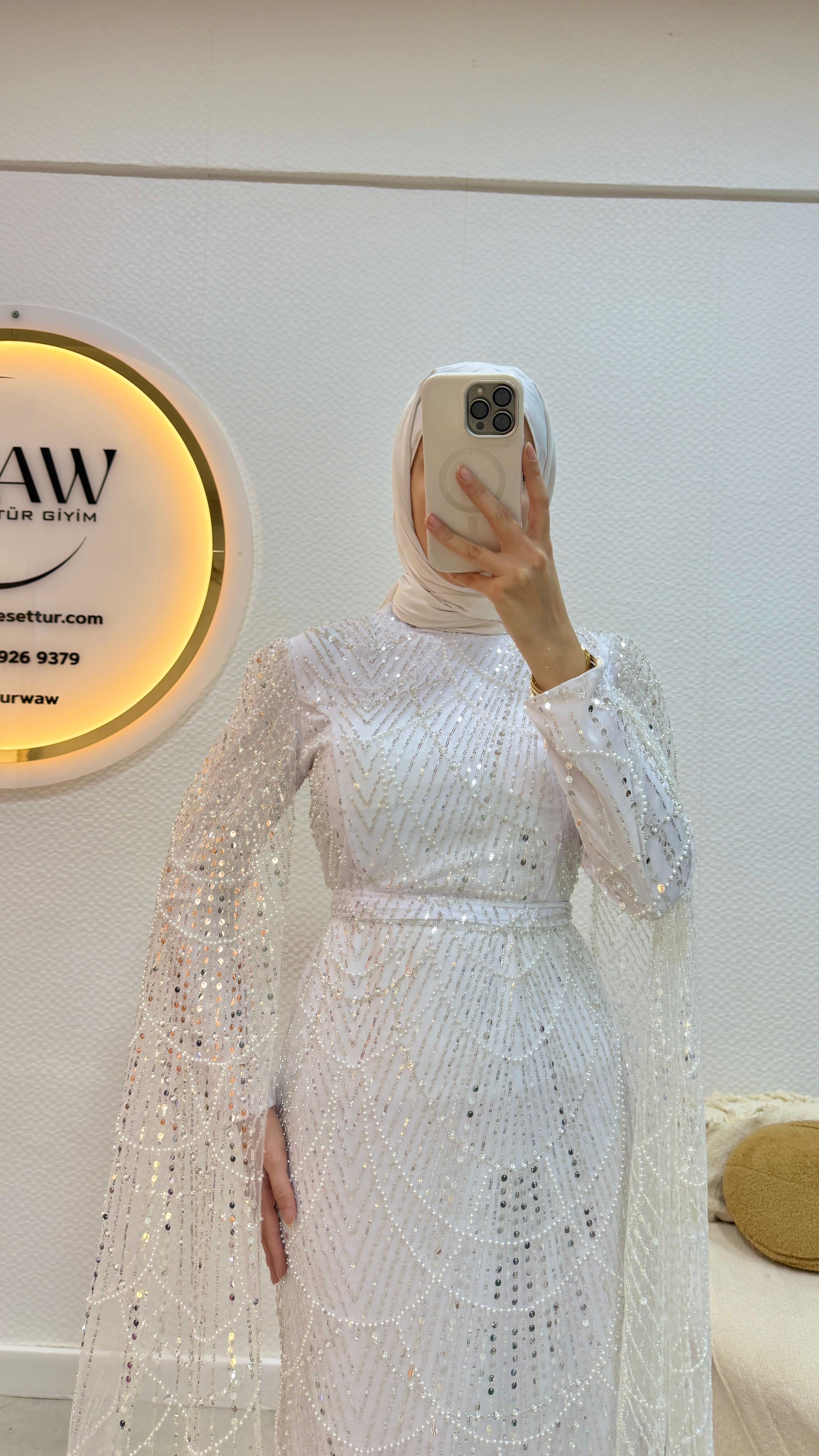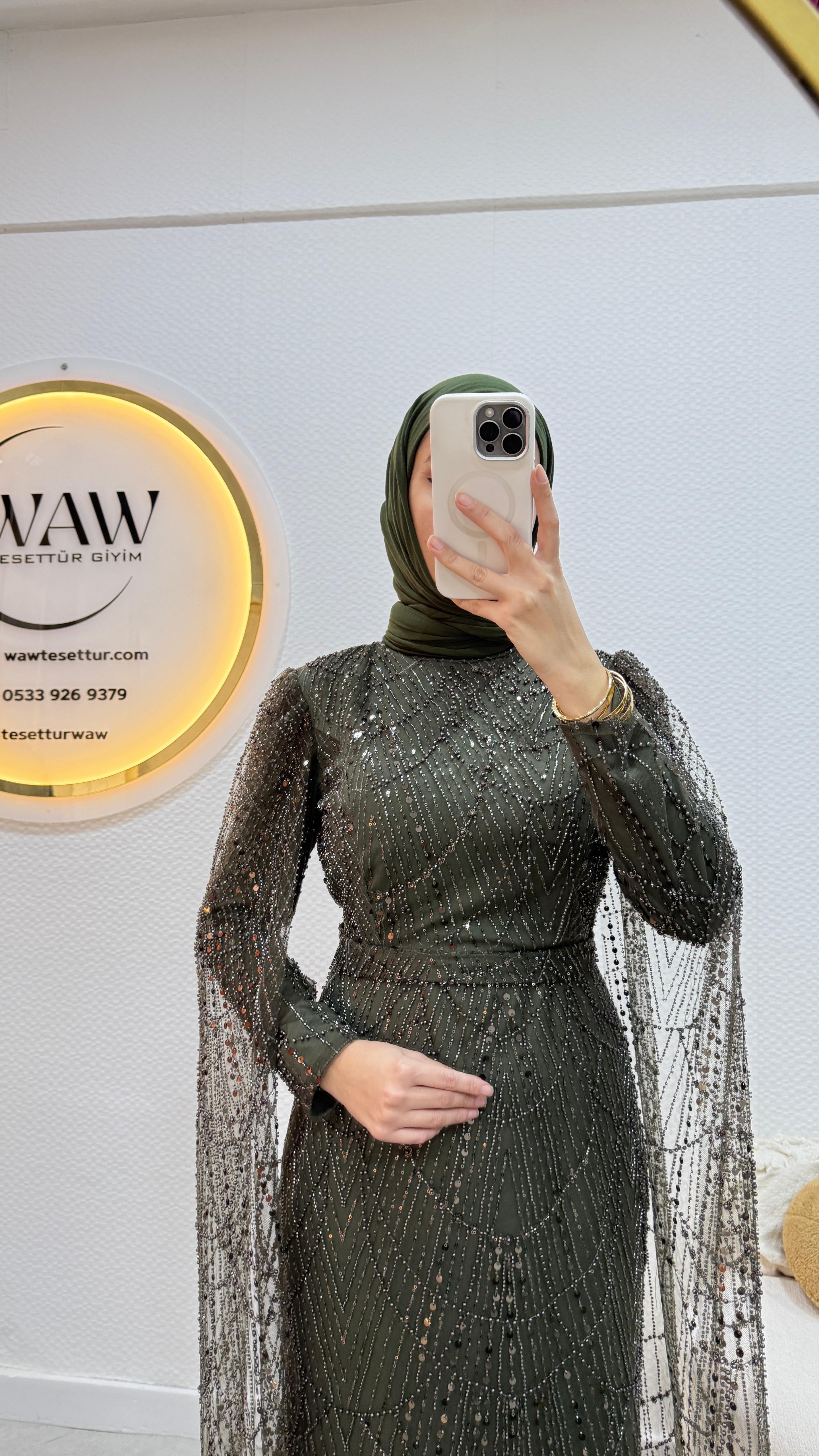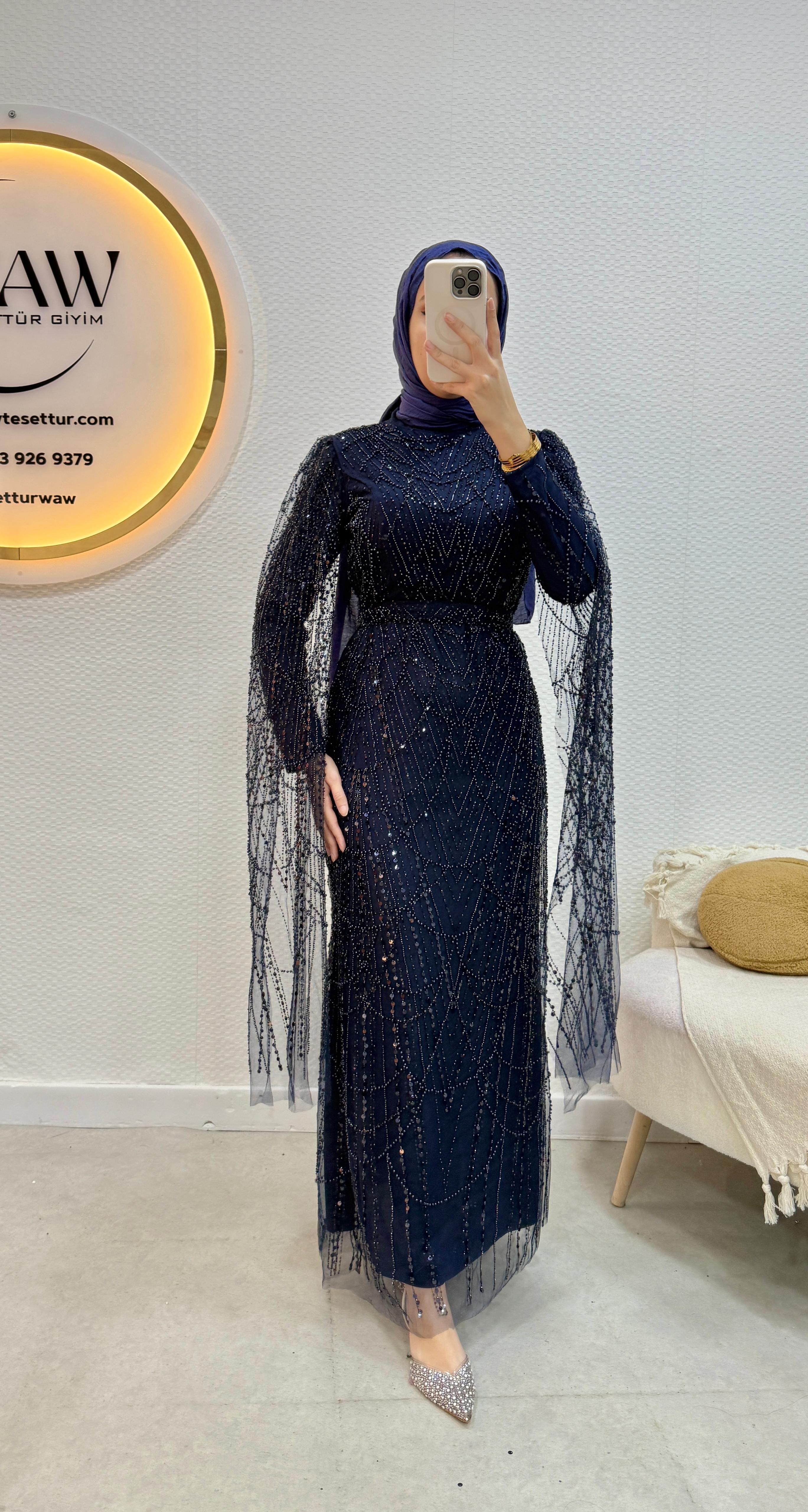 Ürünümüz işlemeli tül kumaştan üretilmiştir.