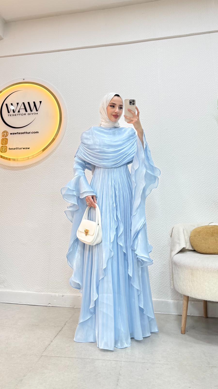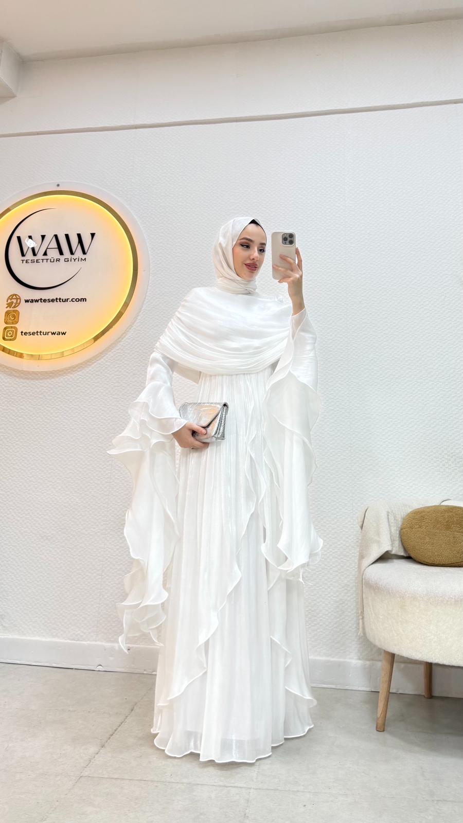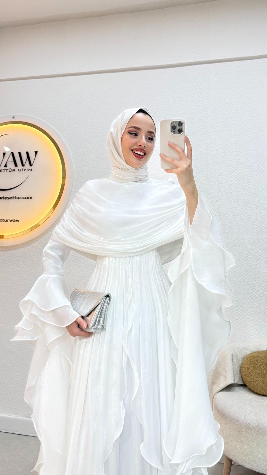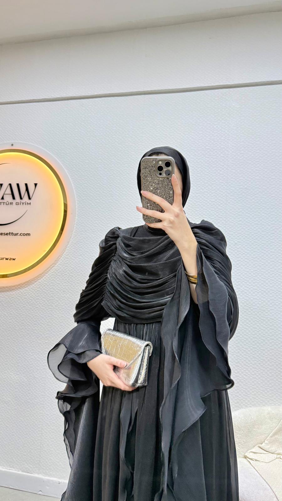 Kolları saçaklı fırfır detaylıdır.