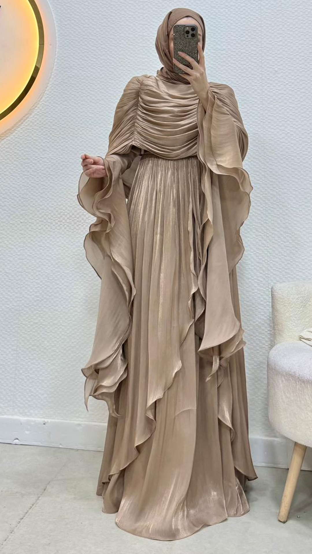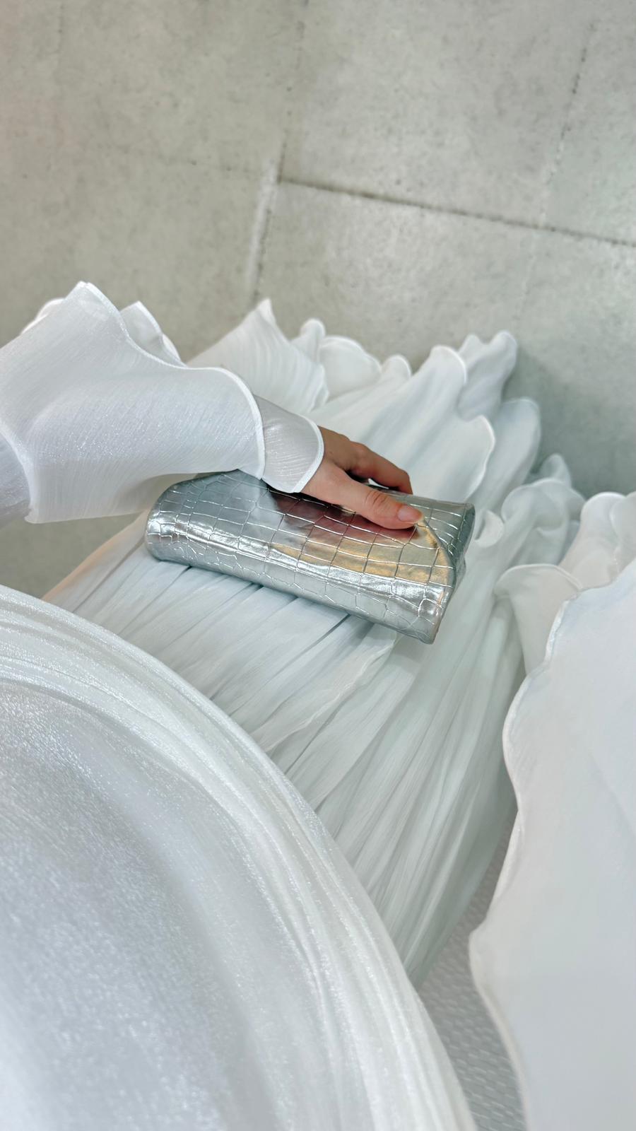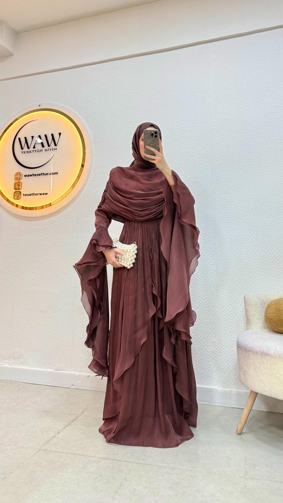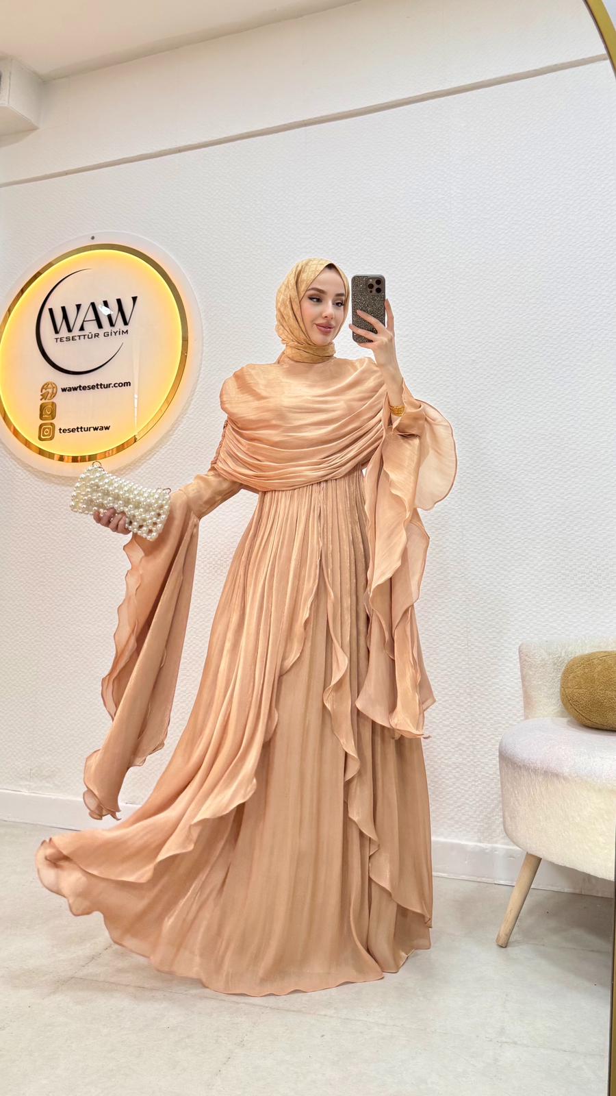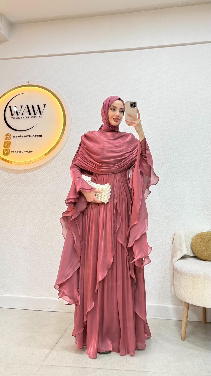 Kolları saçaklı fırfır detaylıdır.