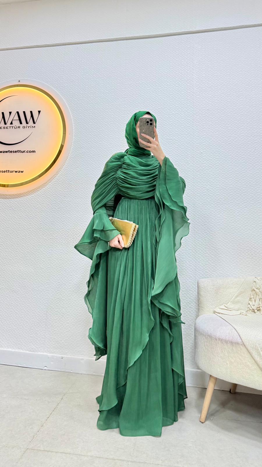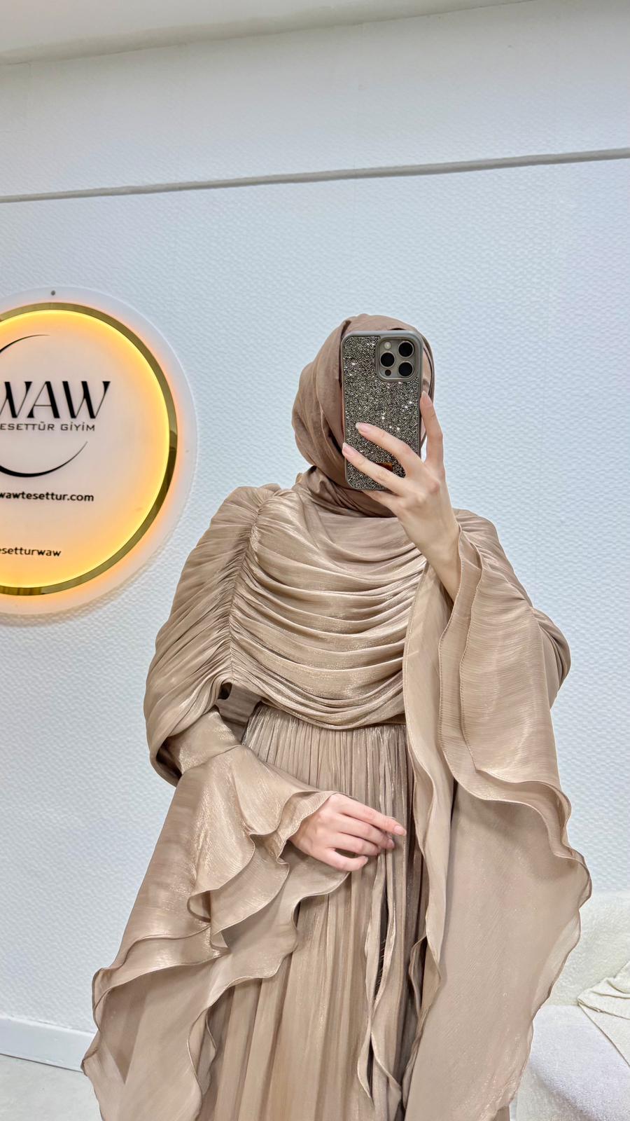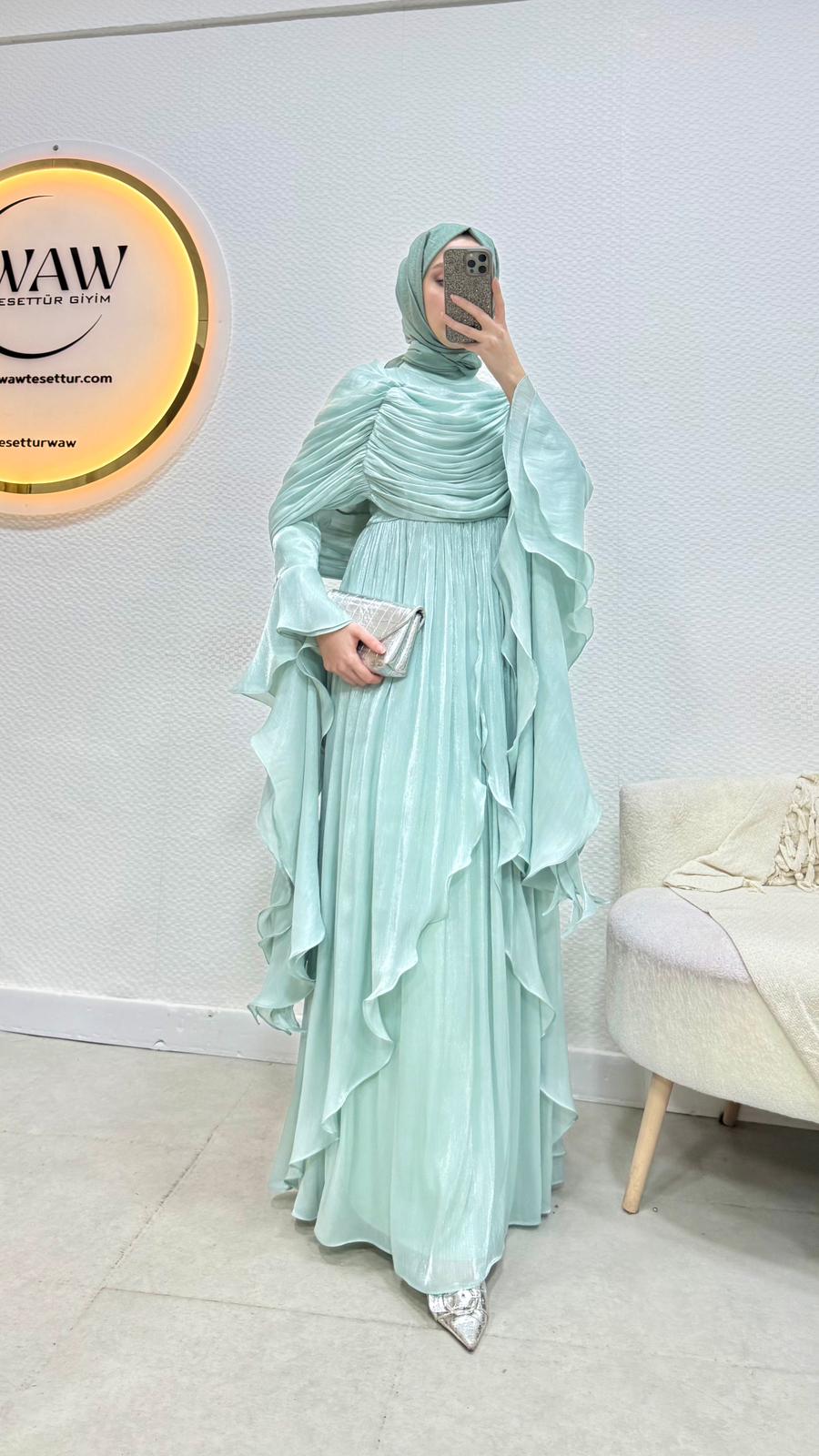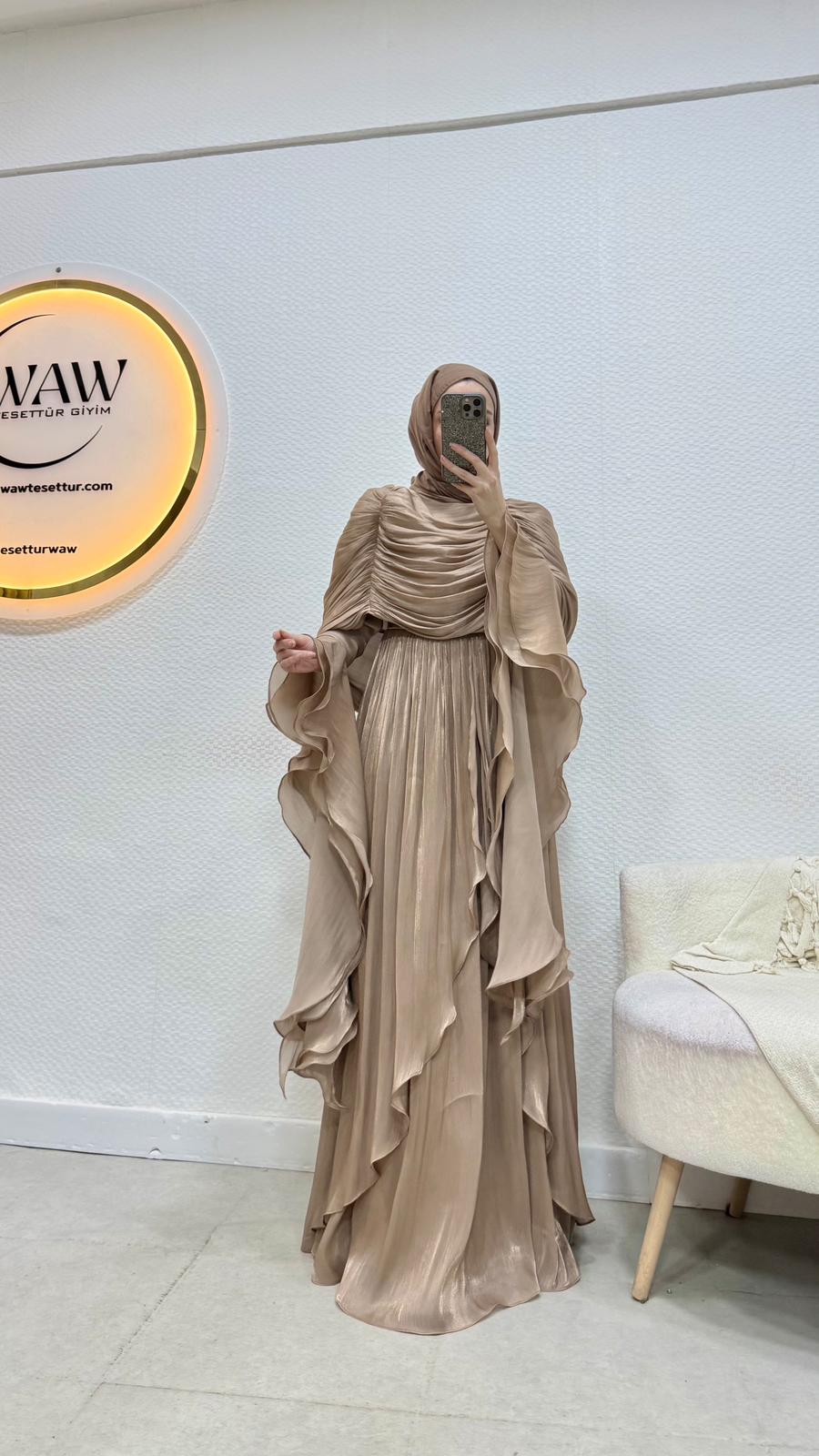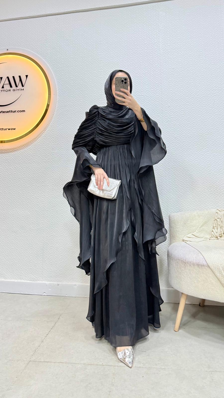 Kolları saçaklı fırfır detaylıdır.