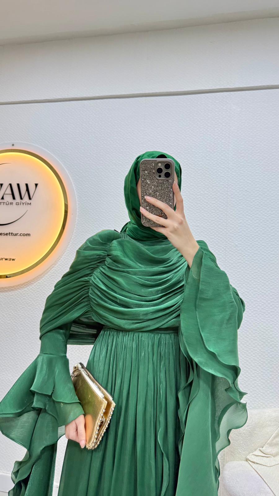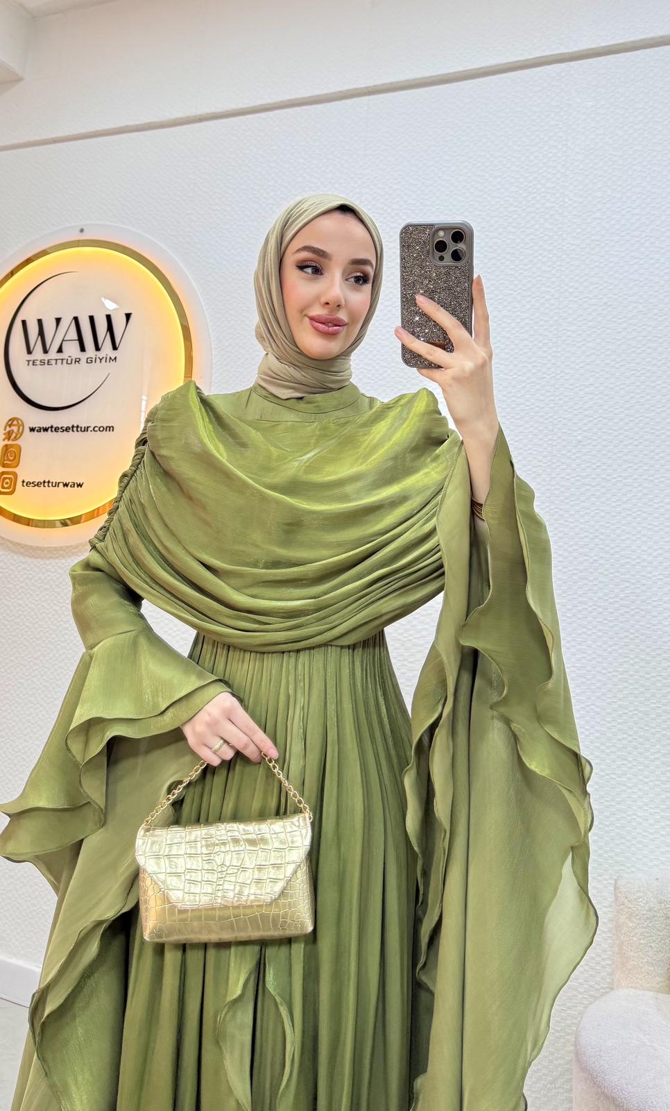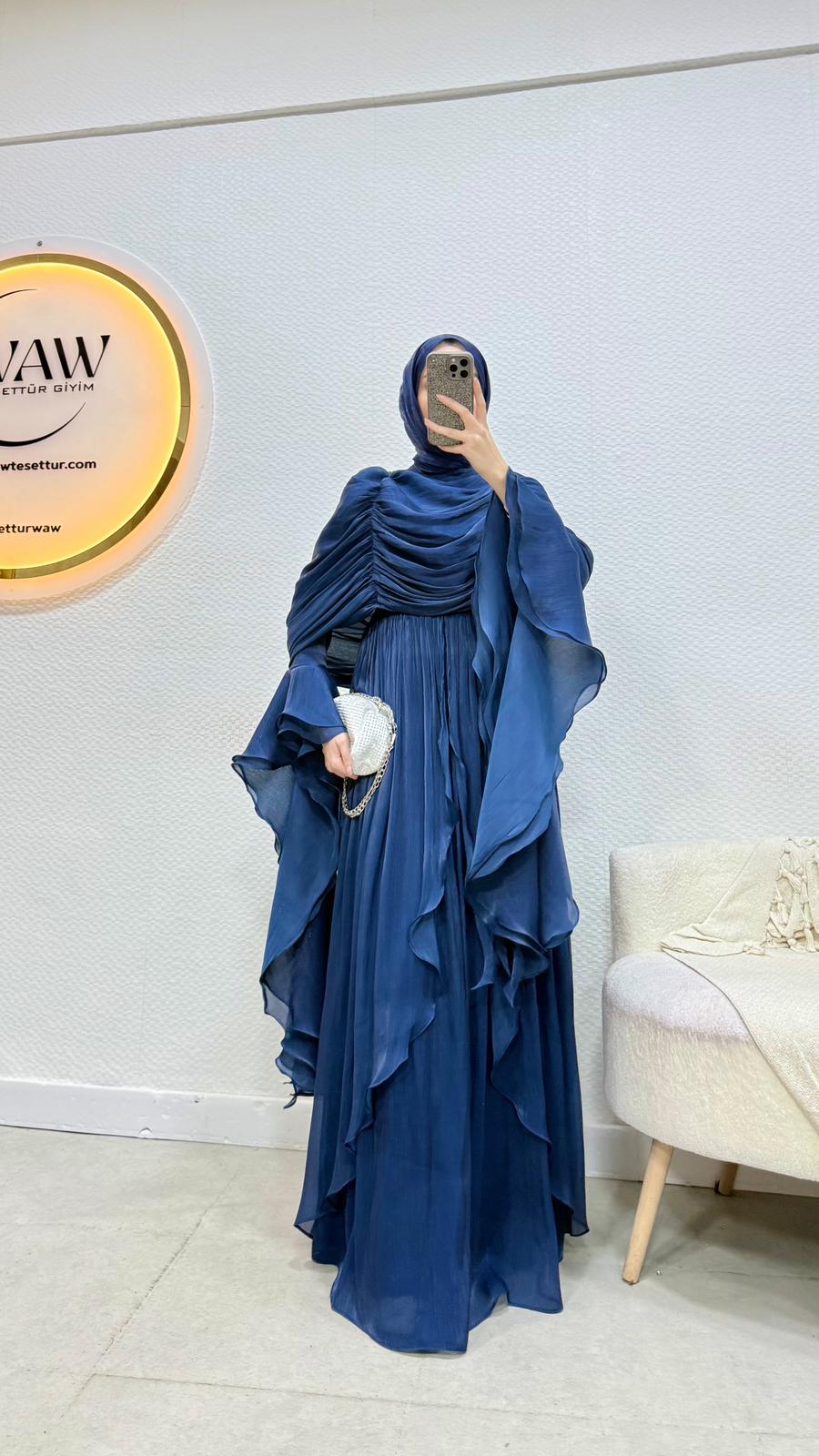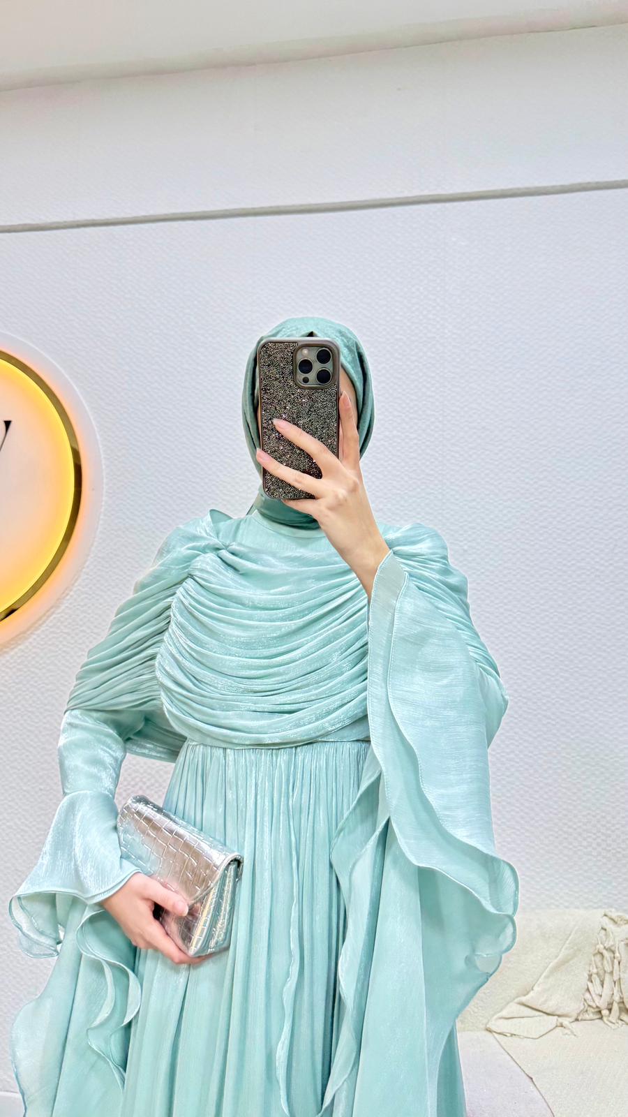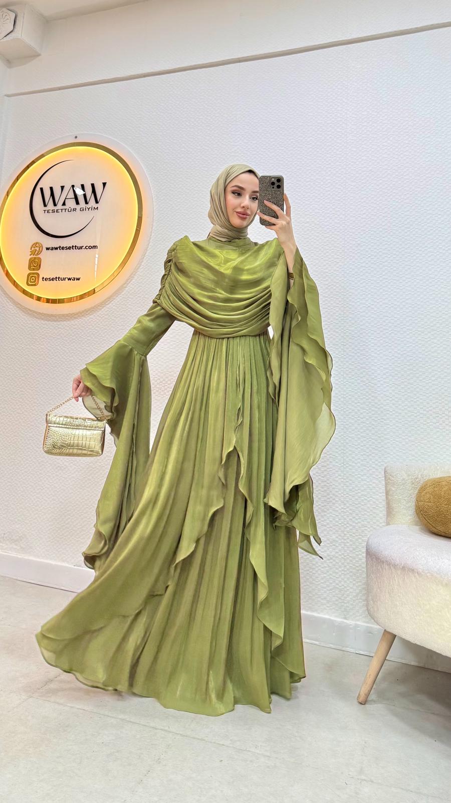 Kolları saçaklı fırfır detaylıdır.
