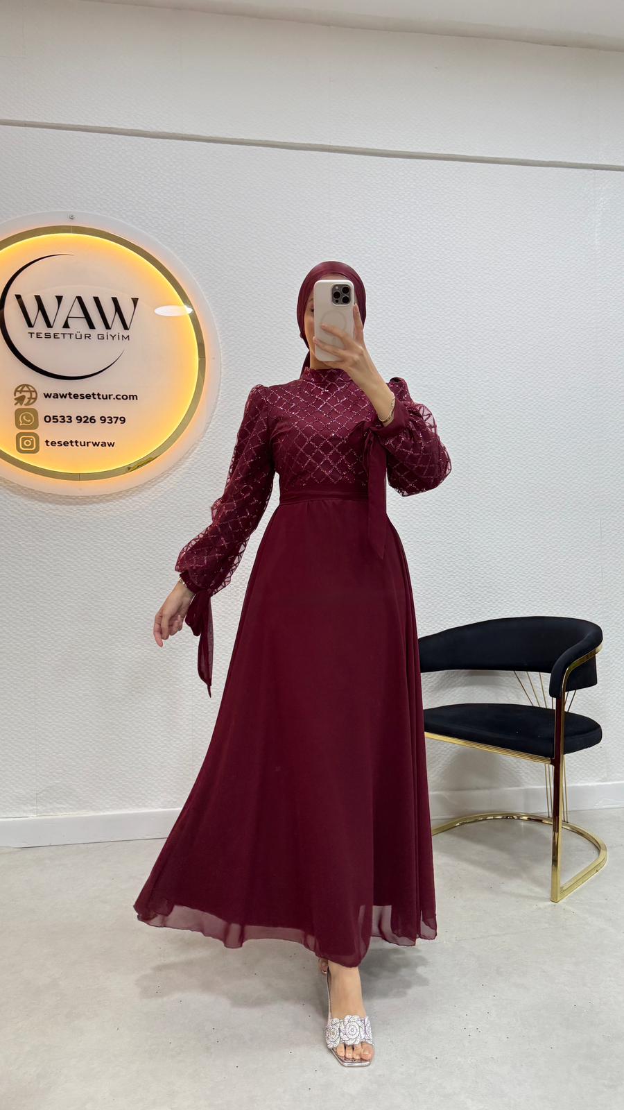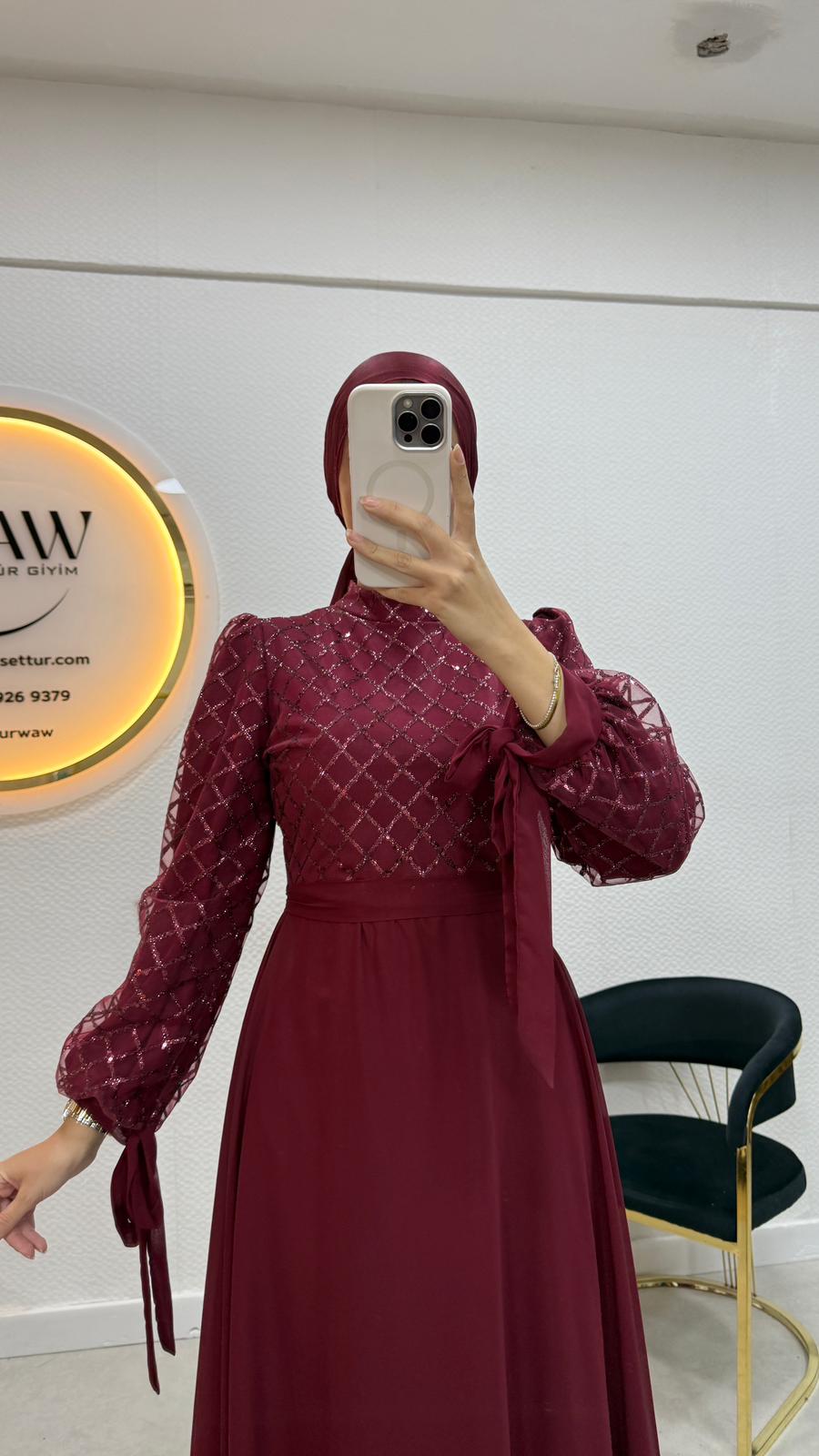 Kollar bağlama detaylıdır. Boyu 140 cm dir. 36/38/40/42/44/46/48/50 beden aralığındadır.