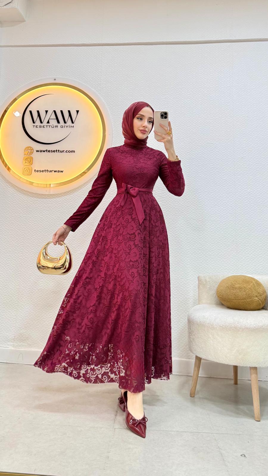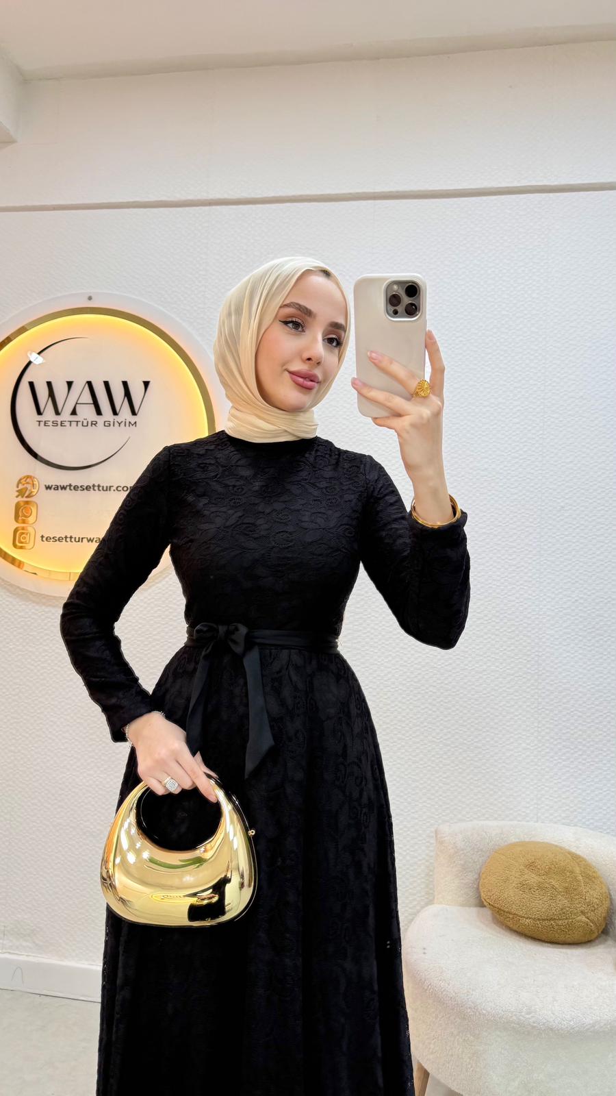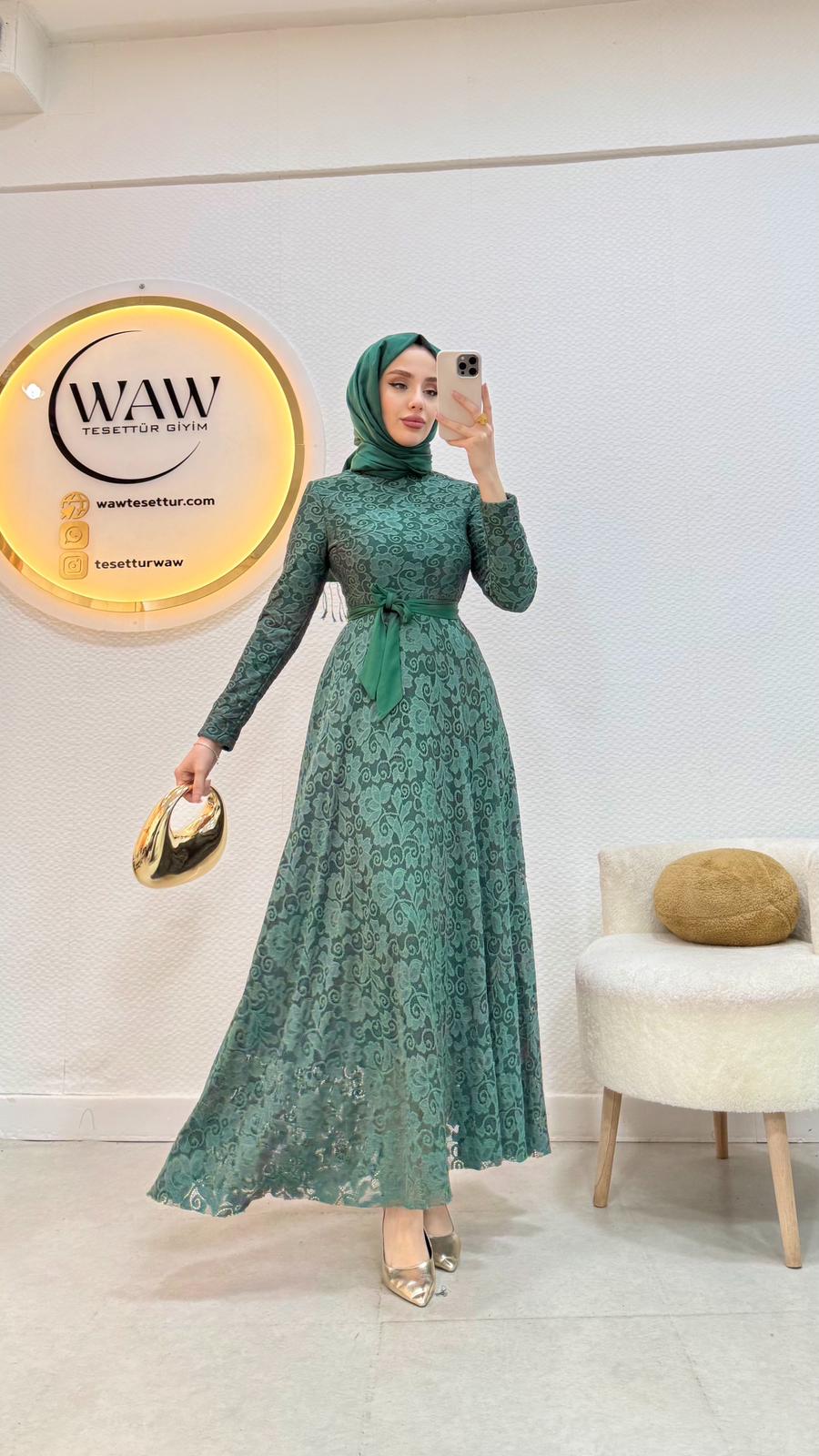 Nihal ElbiseDantel kumaştan üretilmiştir.Hakim yakadır.Astarlıdır.Seyyar kemerlidir.Kalıp:Boy:Bedenler 36/38/40/42/44