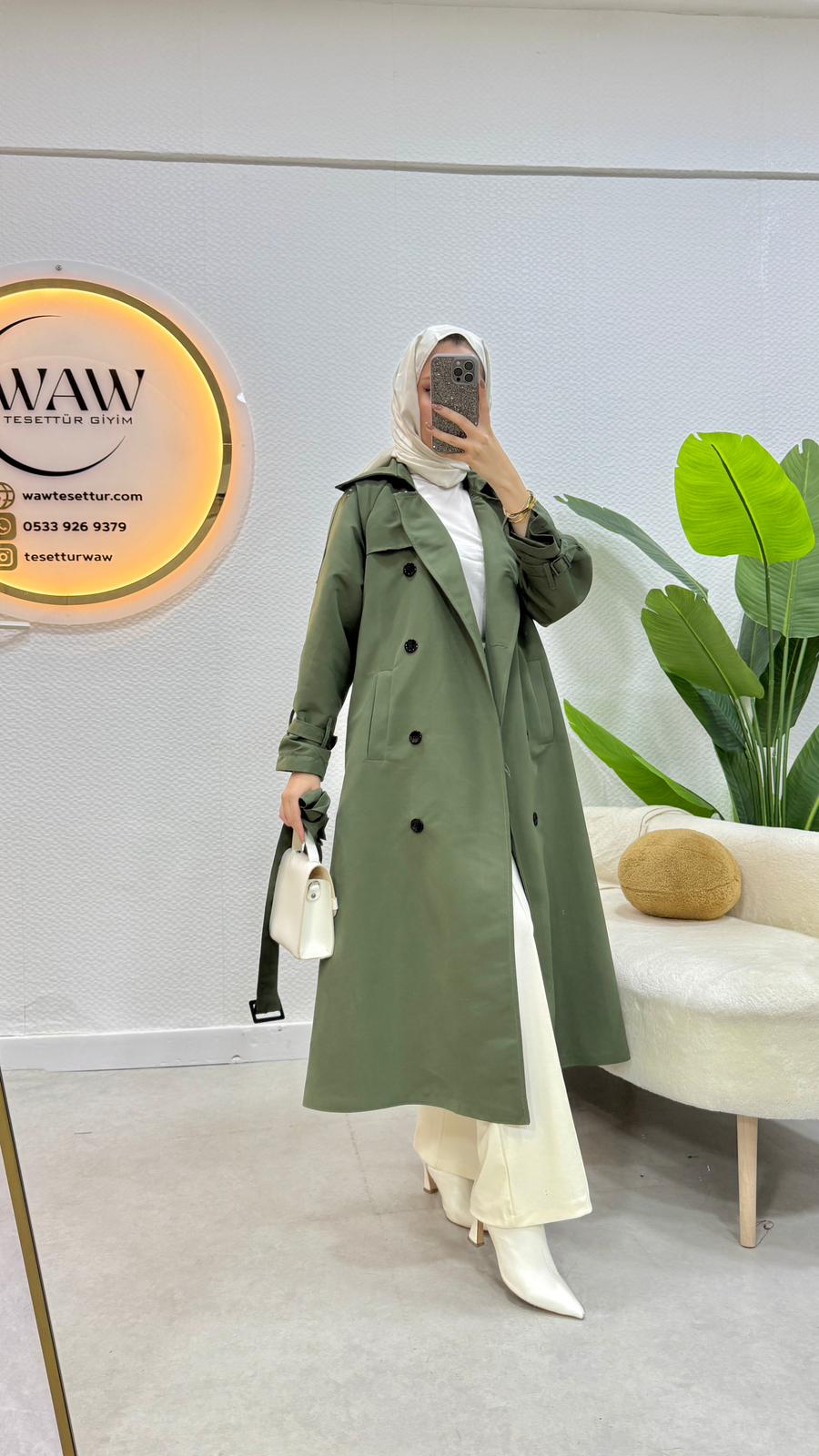 Ürünümüz bondit kumaştır. Mevlana kesimdir.Düğmelidir. 36/38/40/42/44 beden aralığı mevcuttur. Seyyar kemerlidir. Kol detaylıdır. Ürün boyu 120cm’dir. Kruvaze yakadır. Manken 170/60kg 38 beden tercih etmektedir.