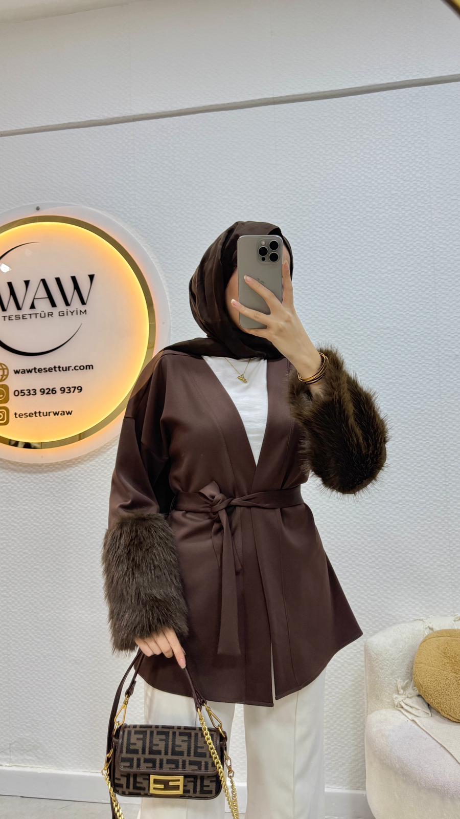 Ürünümüz birinci kalite ithal puf kumaştan üretilmiştir.Kolları kürk detaylıdır.Seyyar kemerlidir.36/38/40/42/44 bedenlerimiz mevcuttur.Çekim mankeni 170cm/60kg 38 beden tercih etmektedir.