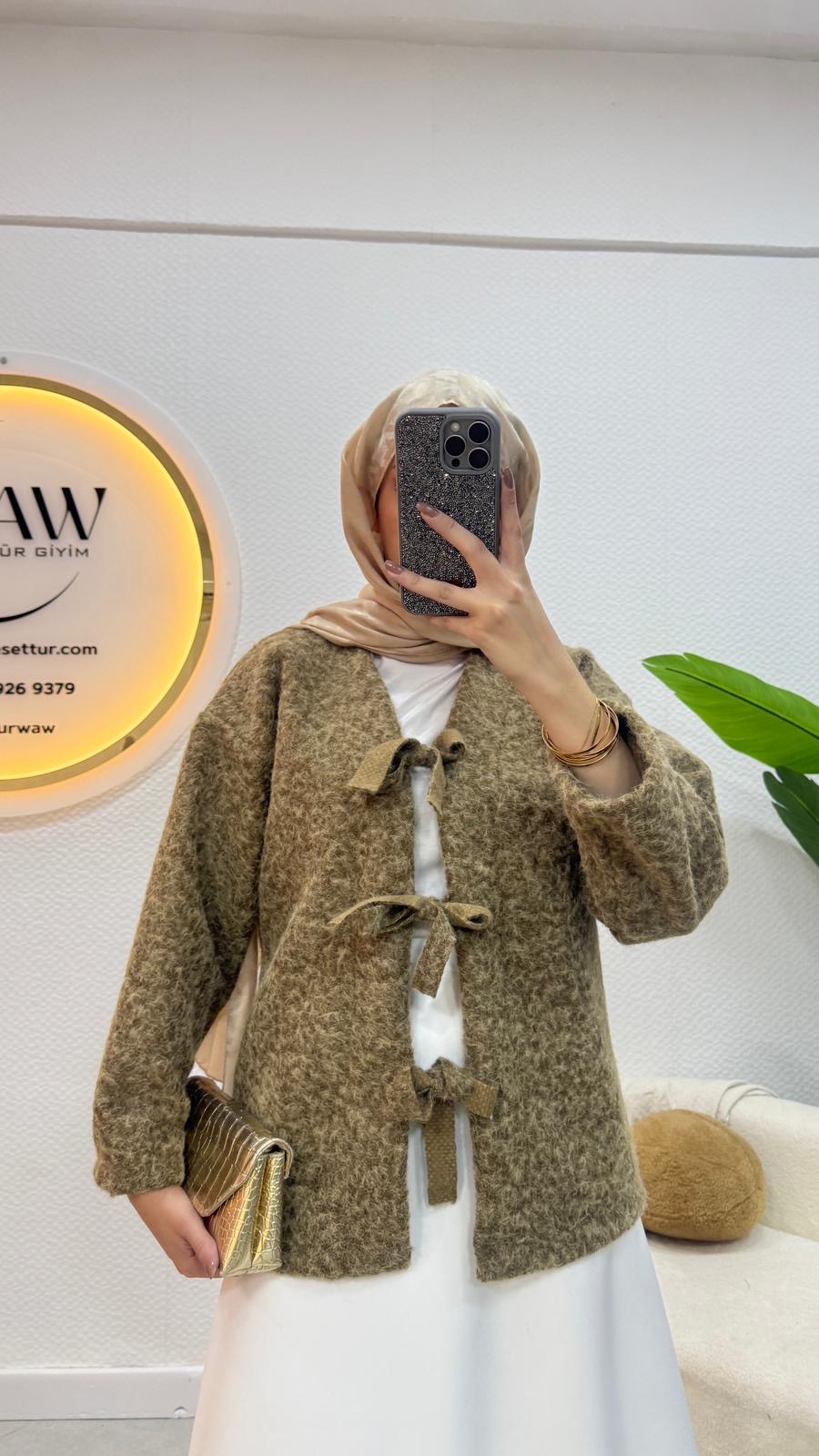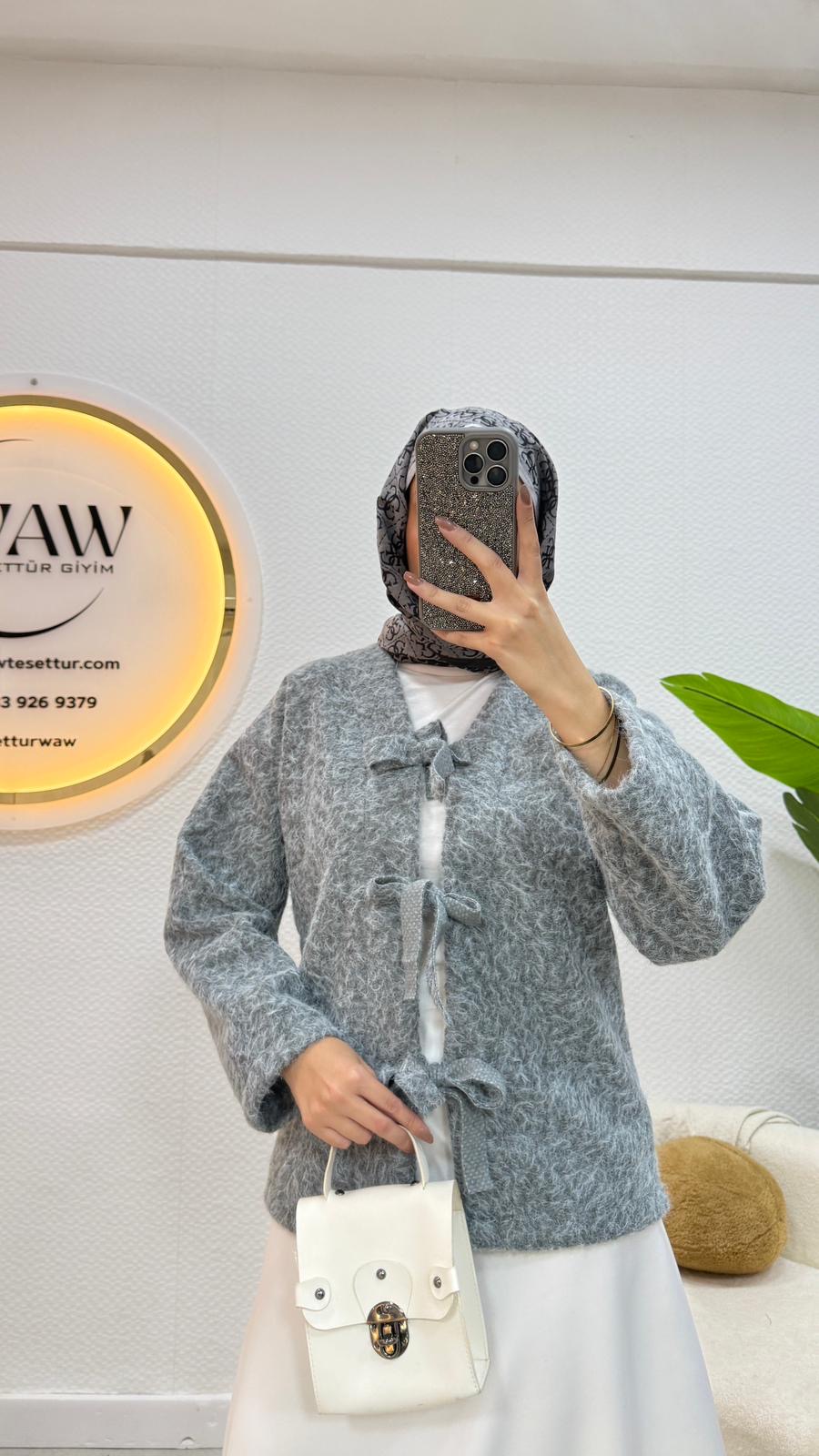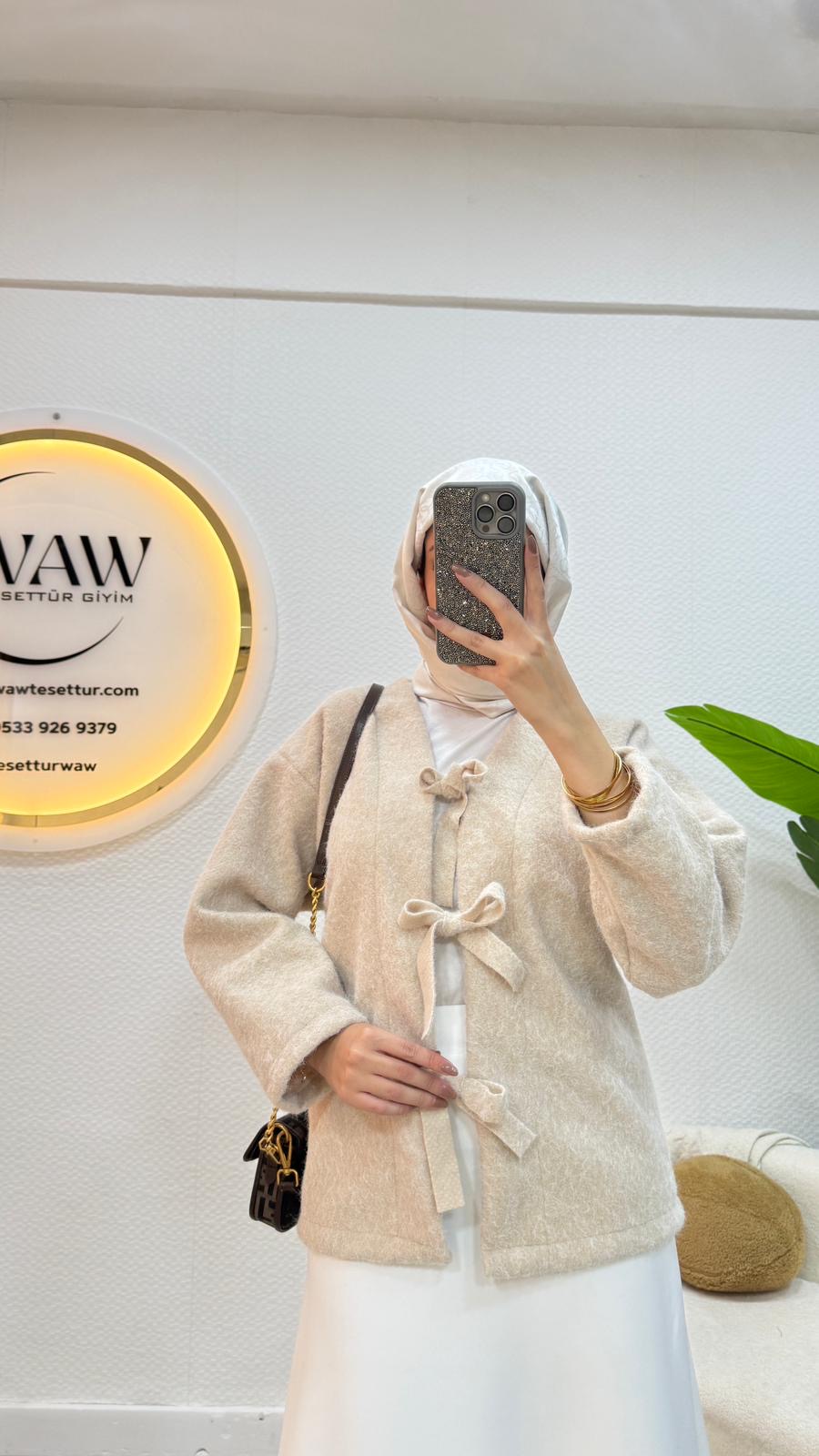 Ürünümüz puff kaşe kumaştan üretilmiştir. Ön bağlama detaylıdır. 36/38/40/42/44 bedenler mevcuttur. Ürün boyu 65cm’dir. Manken 170/52kg , çekimde 36 beden tercih edilmiştir.