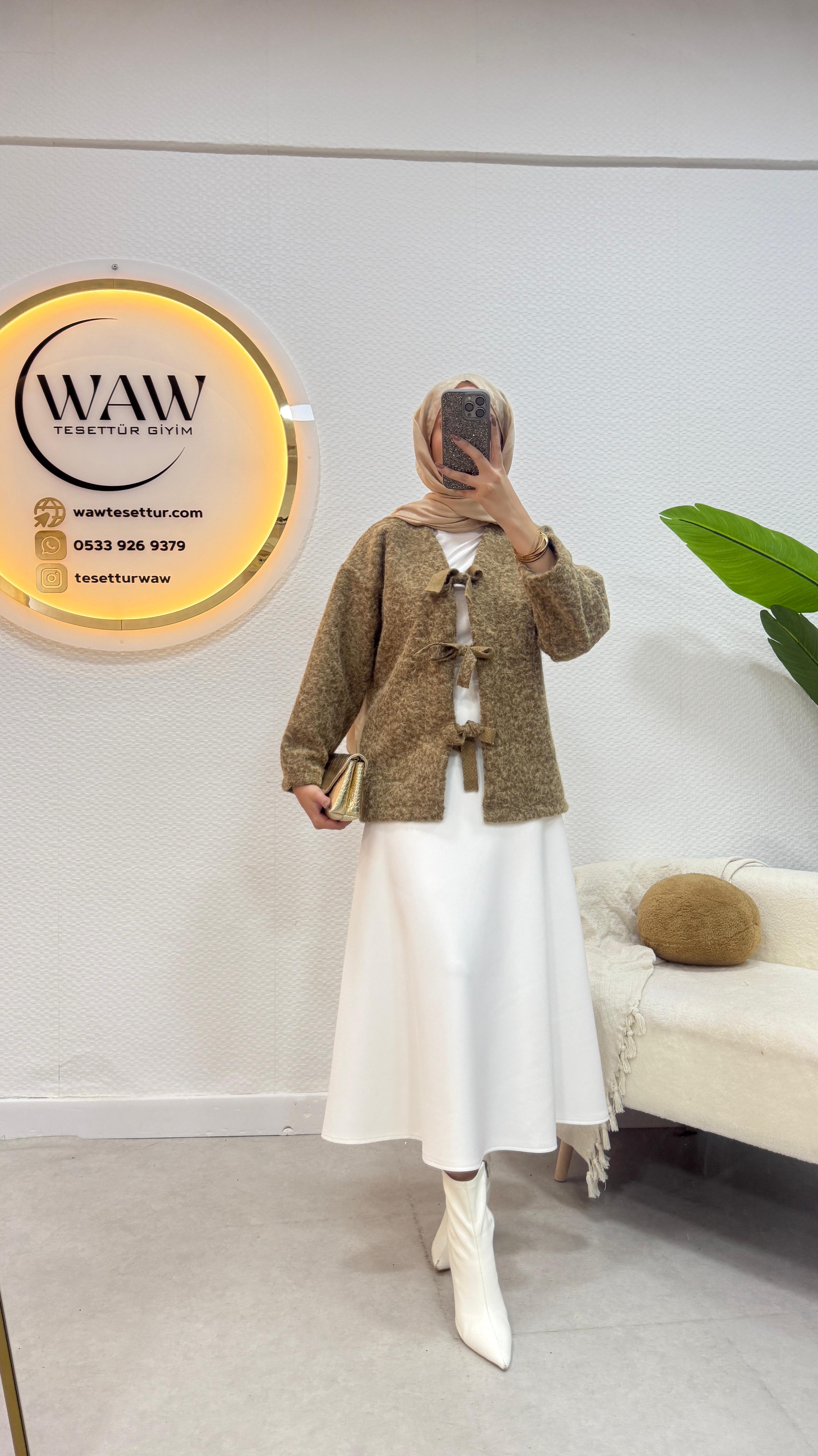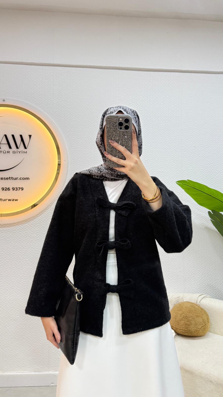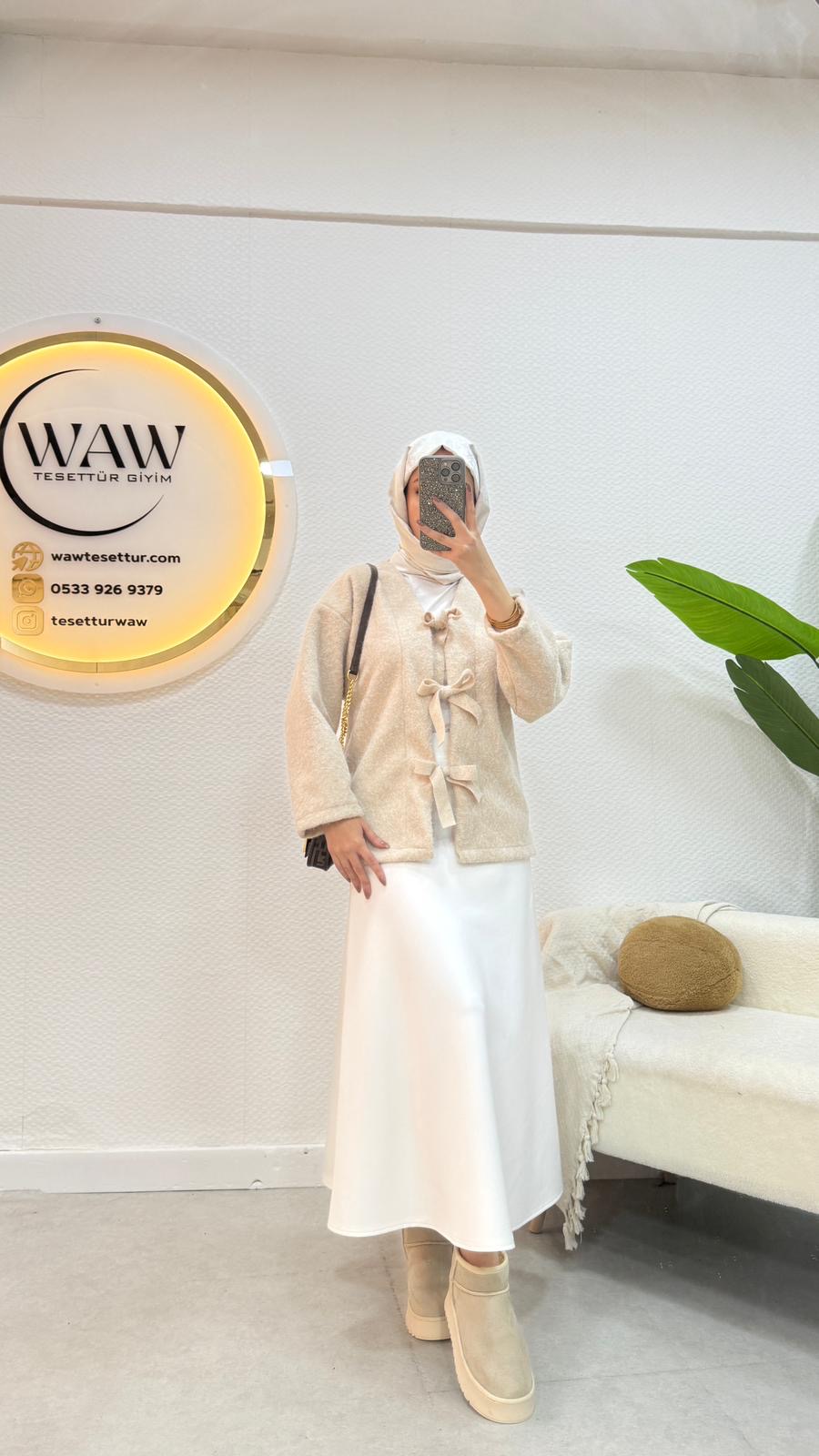 Ürünümüz puff kaşe kumaştan üretilmiştir. Ön bağlama detaylıdır. 36/38/40/42/44 bedenler mevcuttur. Ürün boyu 65cm’dir. Manken 170/52kg , çekimde 36 beden tercih edilmiştir.