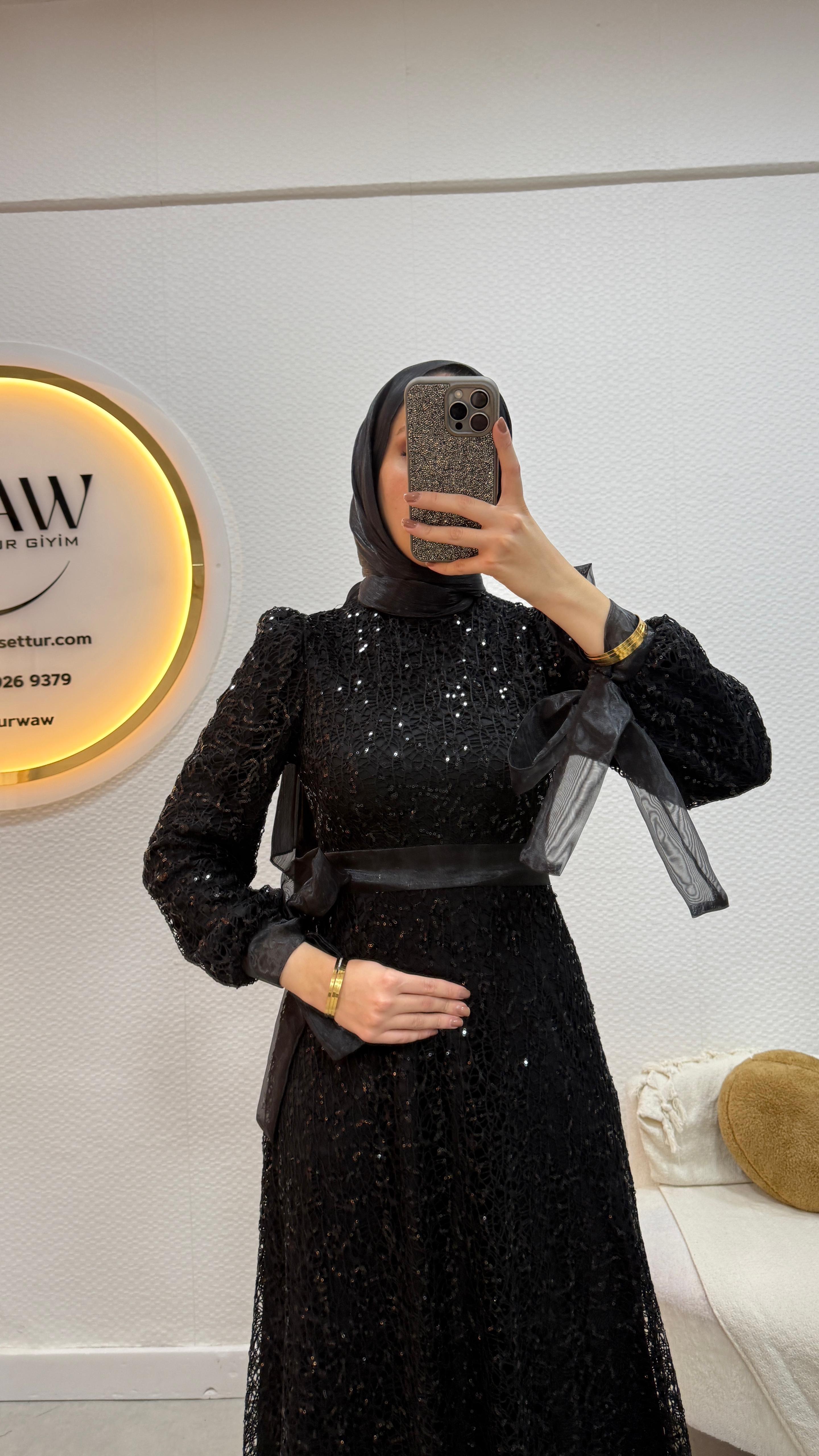 Ürünümüz örümcek payet kumaştan üretilmiştir.