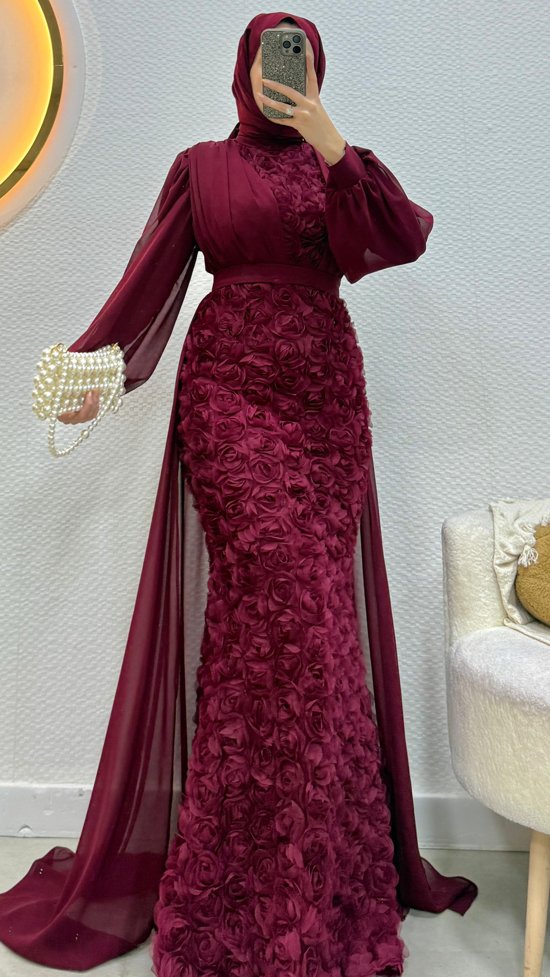 - Ürünümüz birinci kalite gül dantel detaylı şifon kumaştan üretilmiştir.
