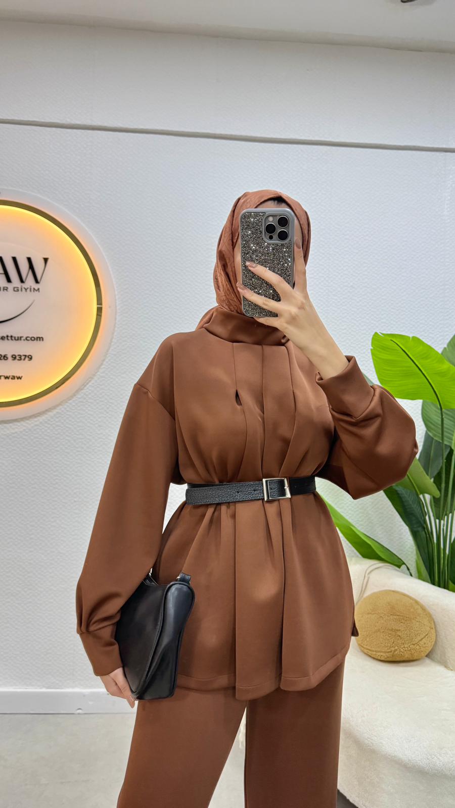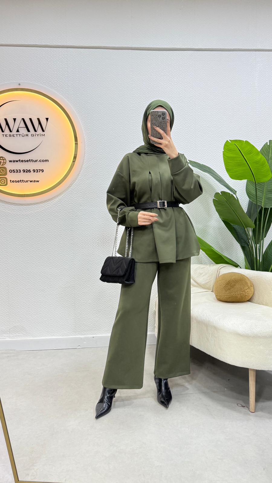 Tunik boy70cm pantolon 100cm’dir, kemer ürüne dahildir.