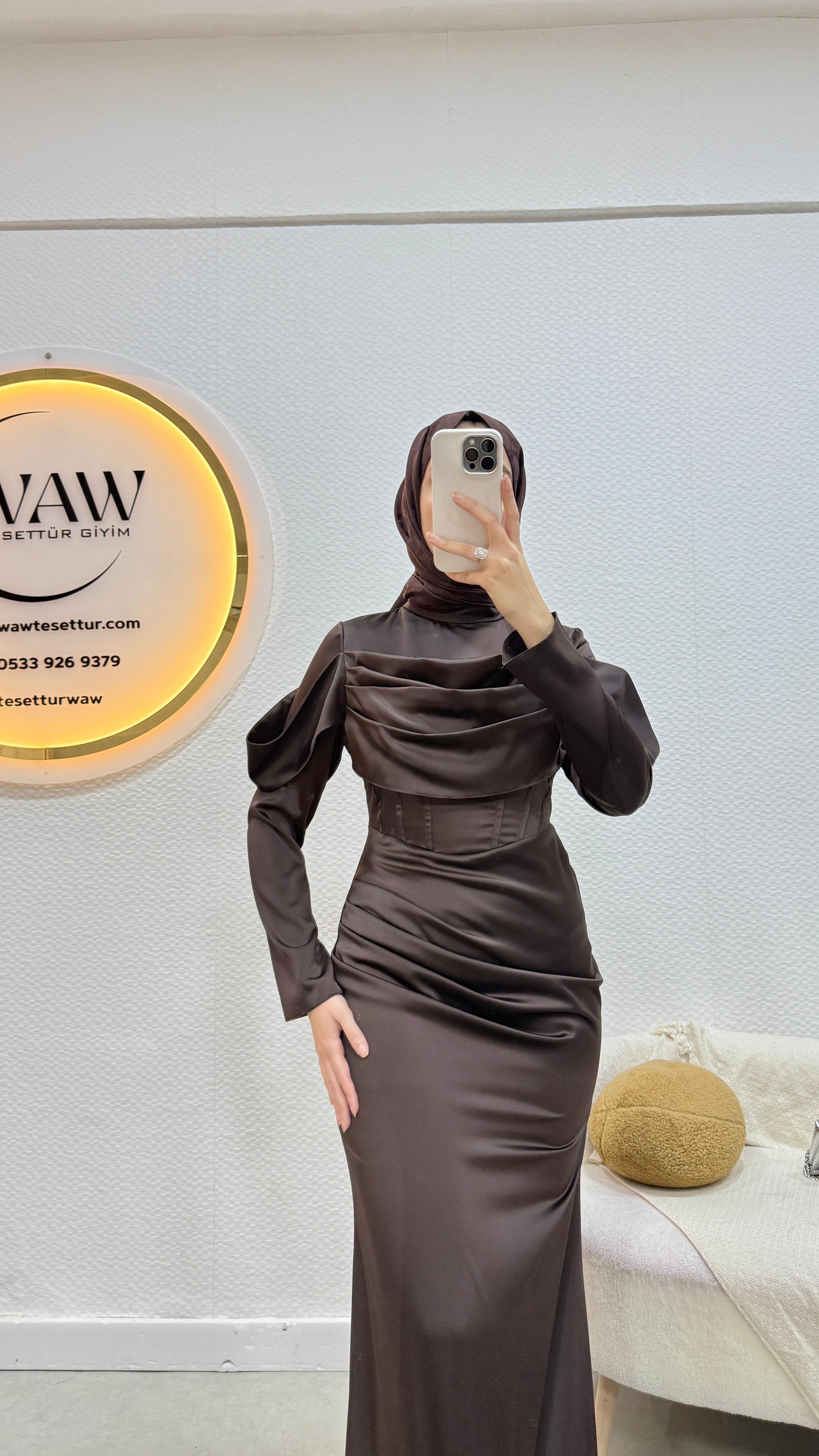 Ürünümüz birinci kalite saten kumaştan üretilmiştir. Korse görünümlüdür. 36/38/40/42/44 bedenler mevcuttur. Arka orta gizli fermuarlıdır. Balık formdur. Hakim yakadır. Ürünümüz 155cm'dir. Ürünümüz dar kalıptır. Manken 170/60kg 38 giymektedir.