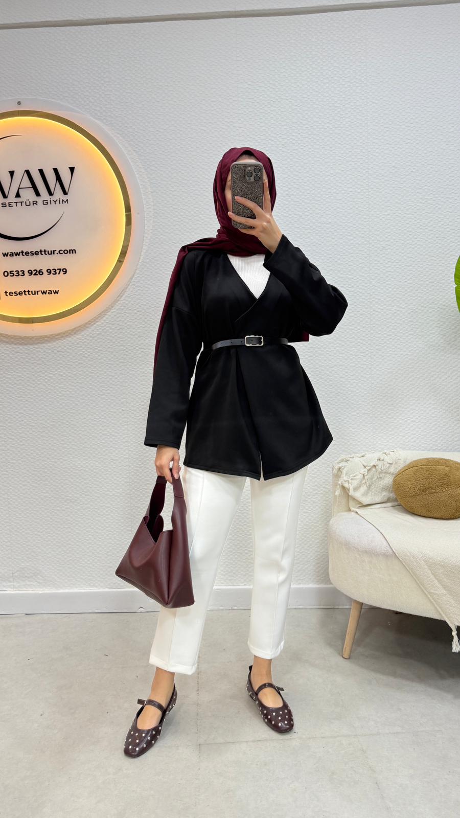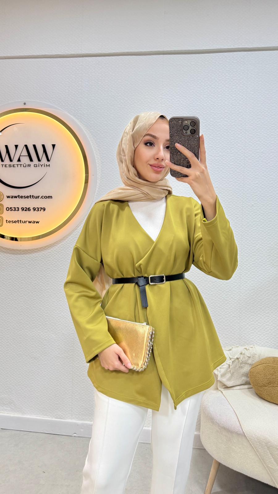 Ürünümüz 1. kalite scuba kumaştan üretilmiştir.Kemer dahildir.Uzunluğu 75cm’dir.36/38/40/42/44 bedenlerimiz mevcuttur.Çekim mankeni 170/60kg 38 bedeni tercih etmektedir