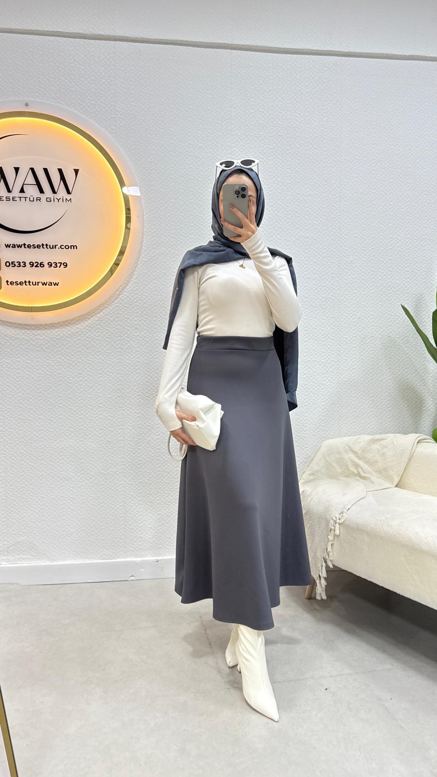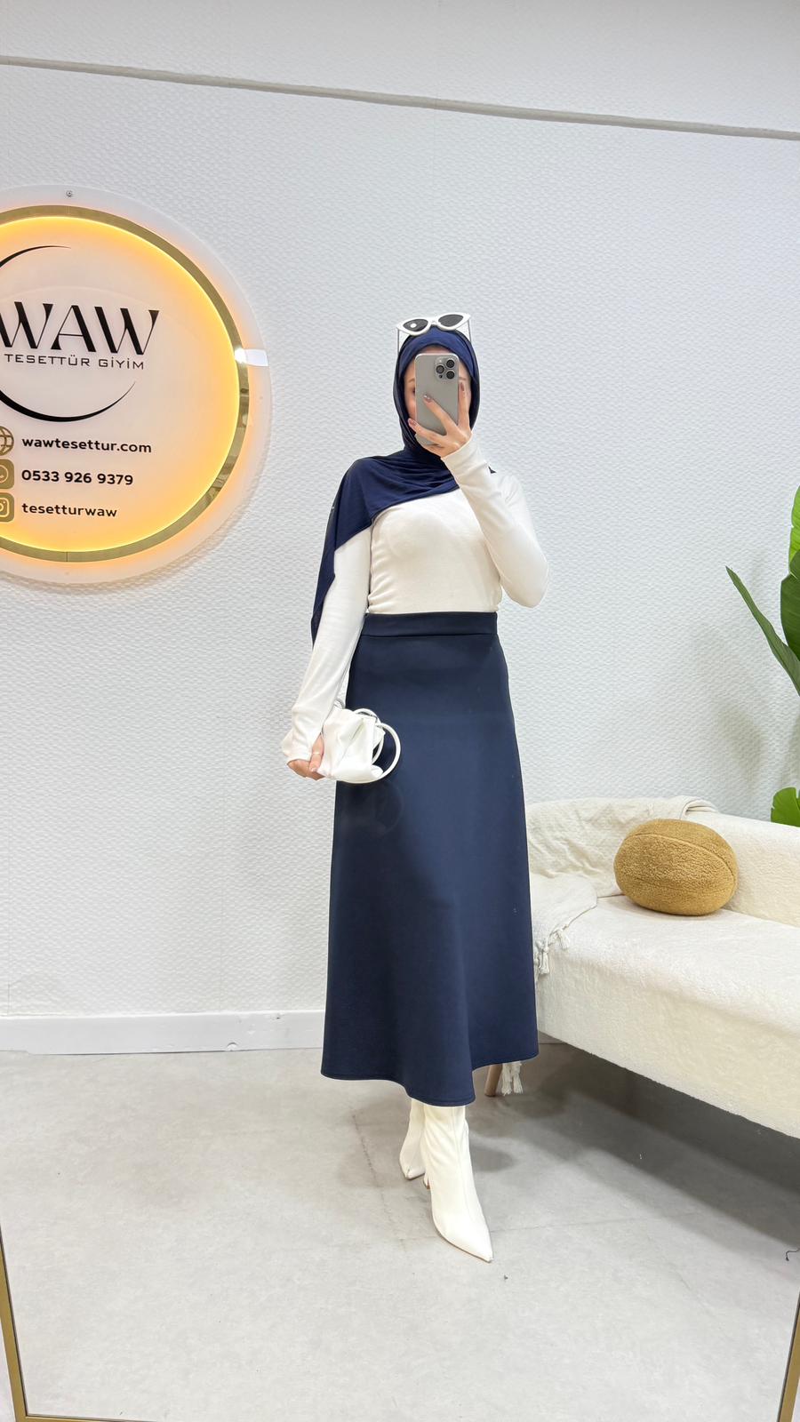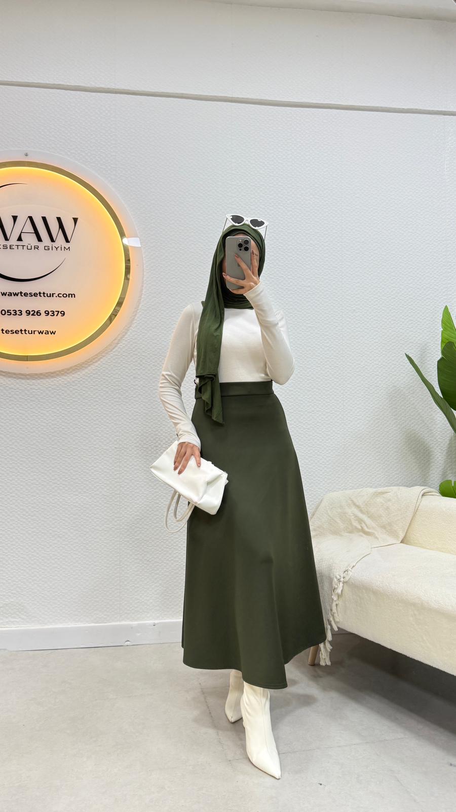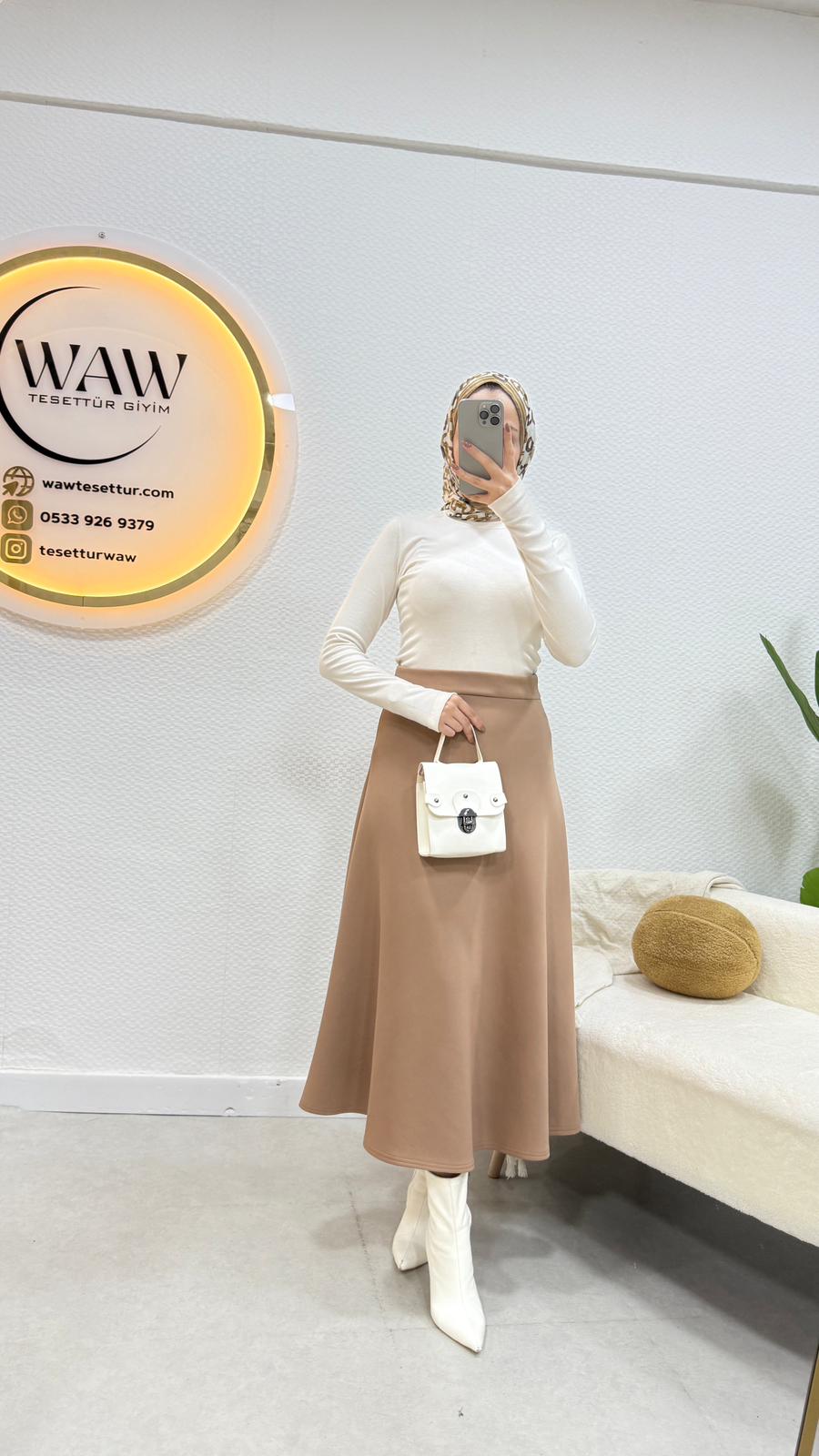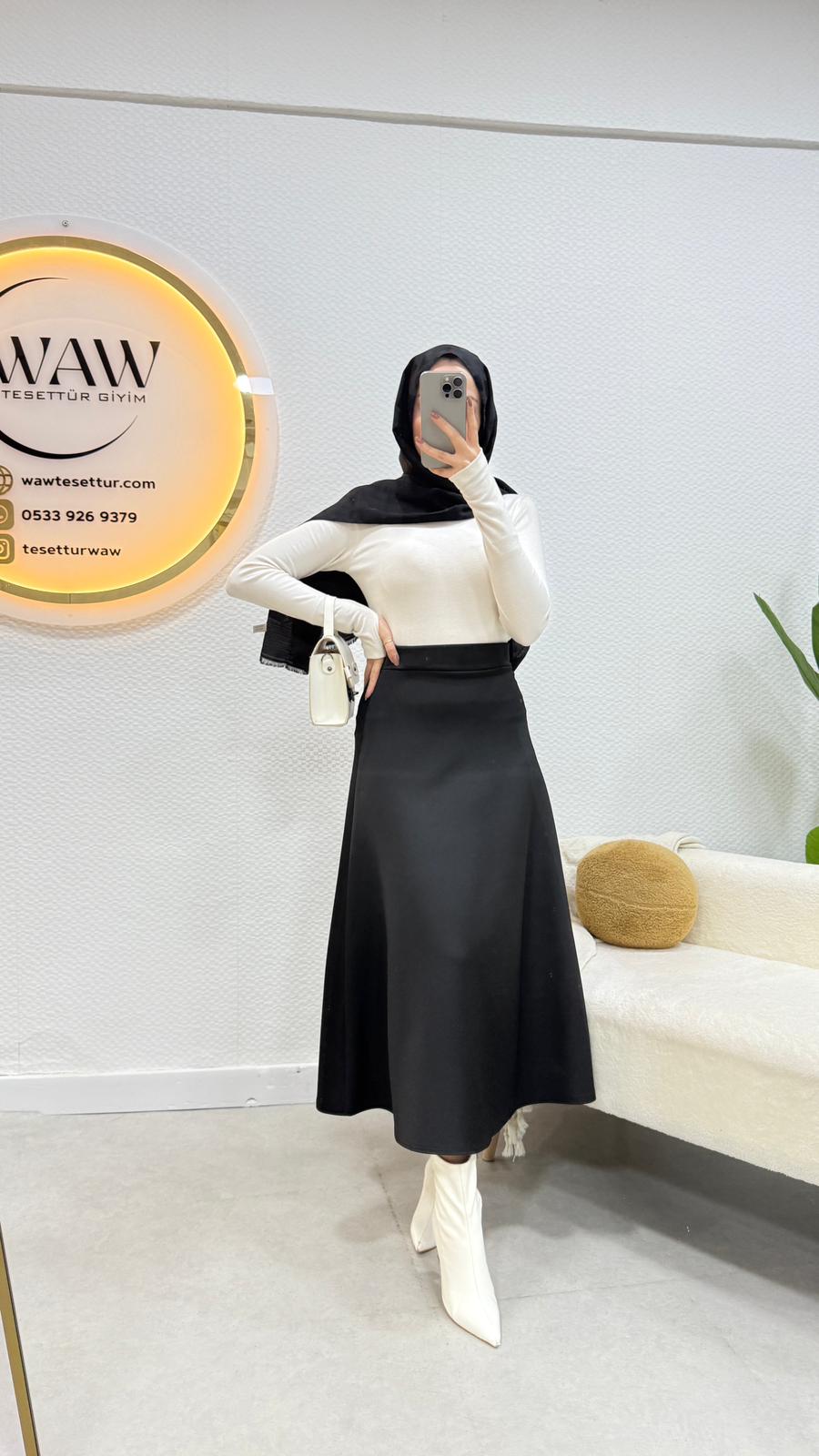 Scuba krep kumaştan üretilmiştir. Beli lastiklidir.Boyu 95cm’dir.36/38/40/42/44 bedenleri mevcuttur.Çekim mankeni 170/60kg 38 beden tercih etmektedir.