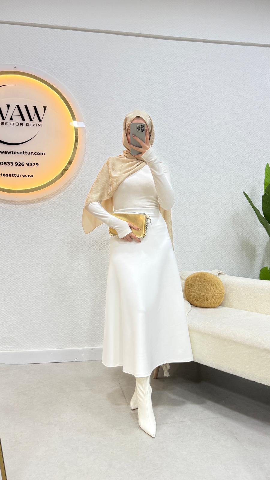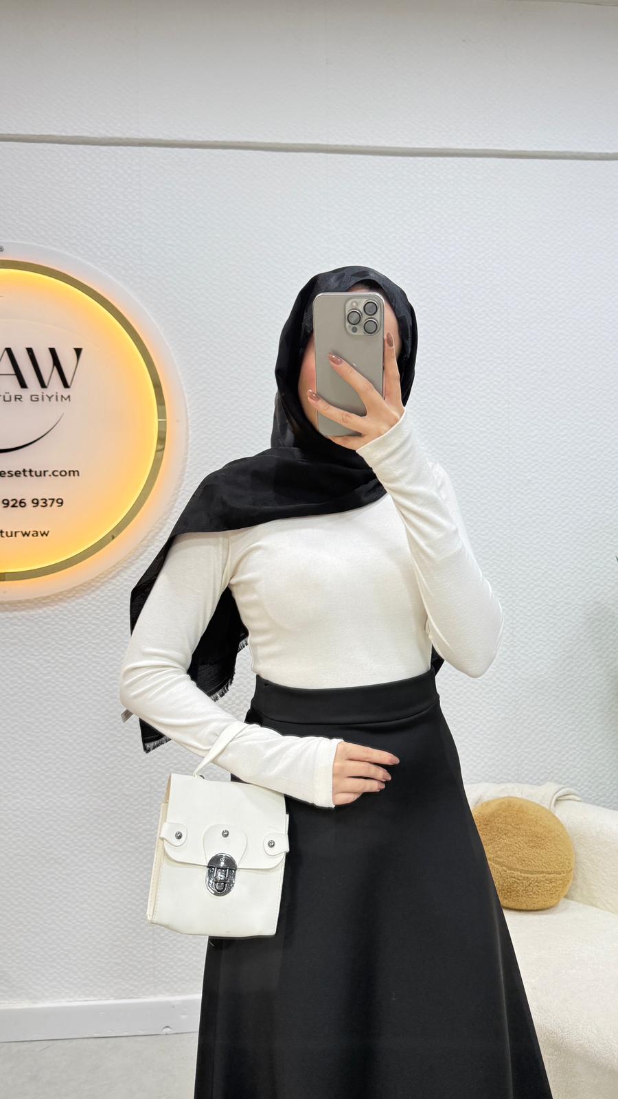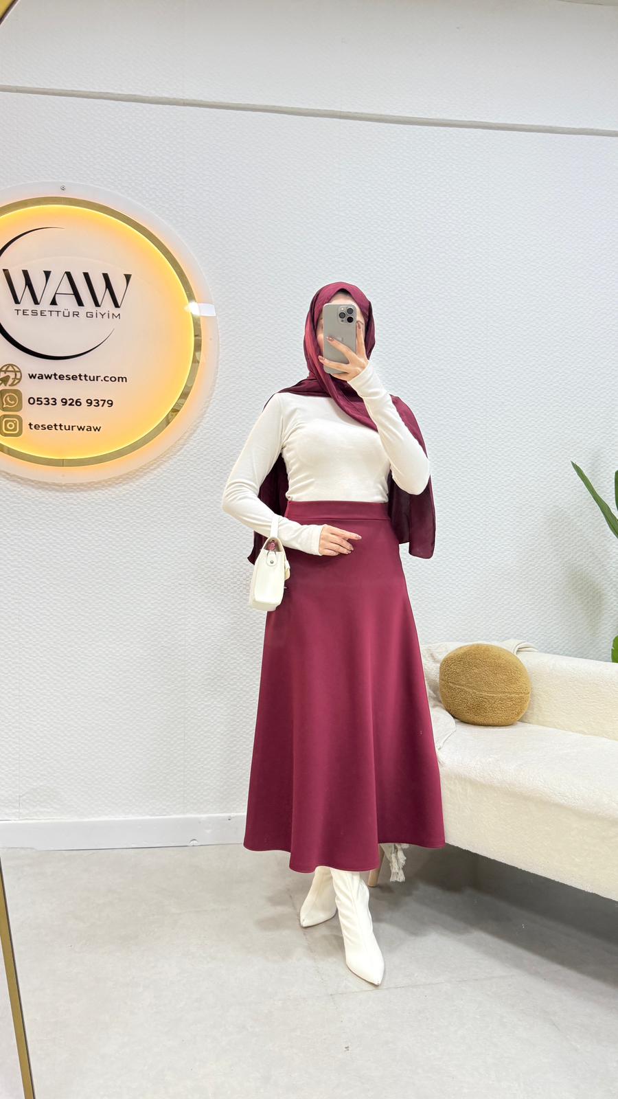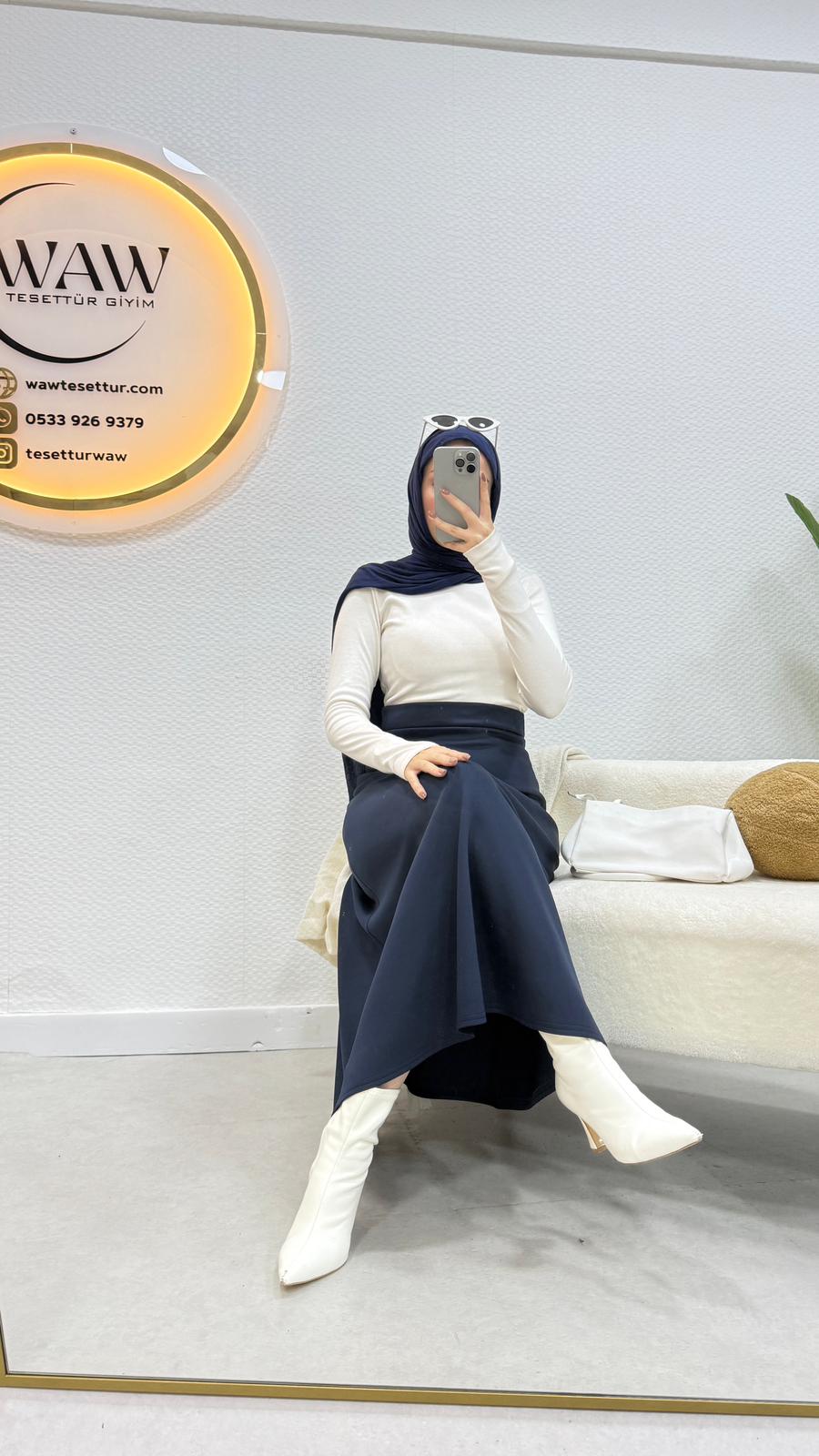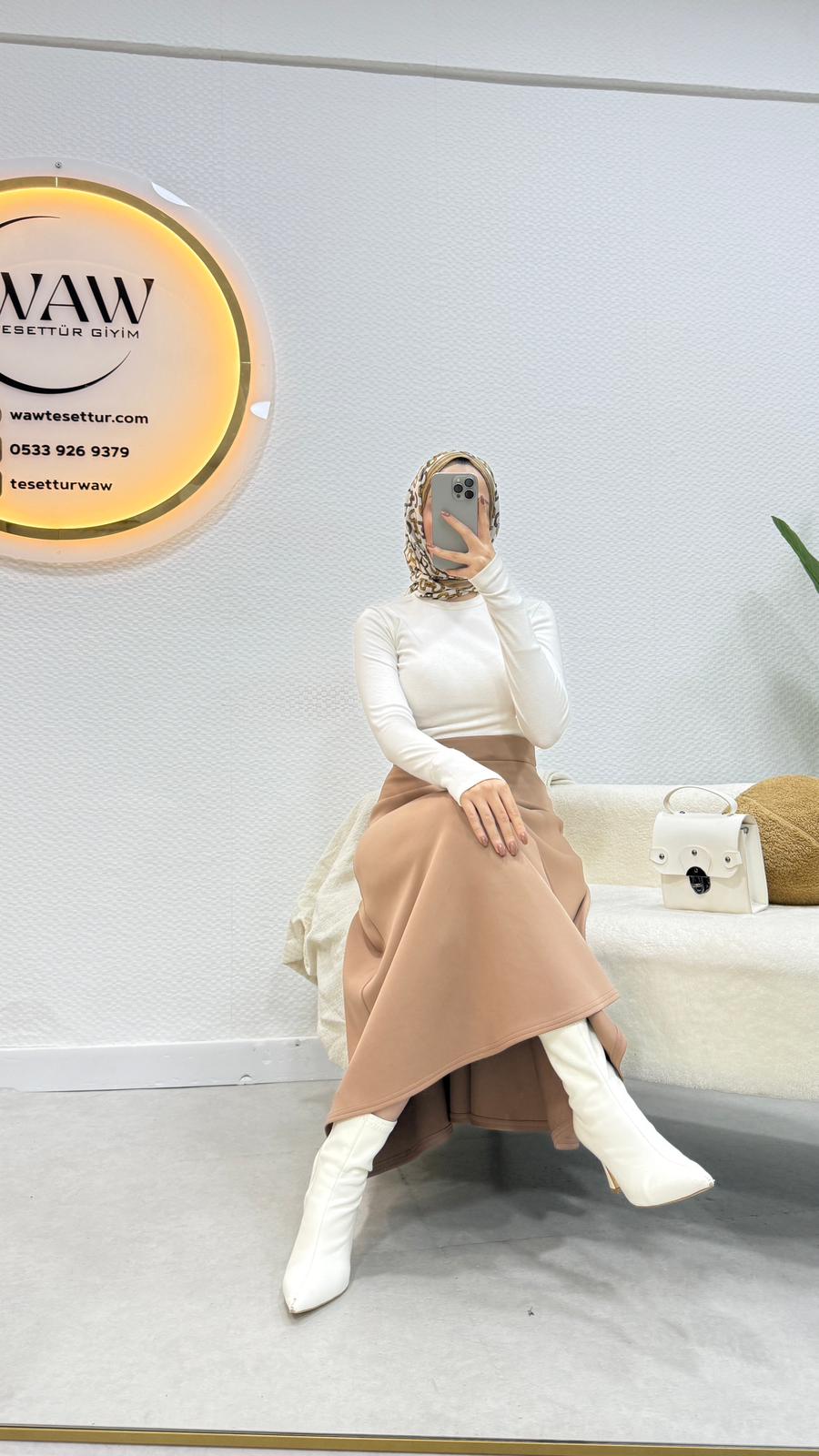 Scuba krep kumaştan üretilmiştir. Beli lastiklidir.Boyu 95cm’dir.36/38/40/42/44 bedenleri mevcuttur.Çekim mankeni 170/60kg 38 beden tercih etmektedir.