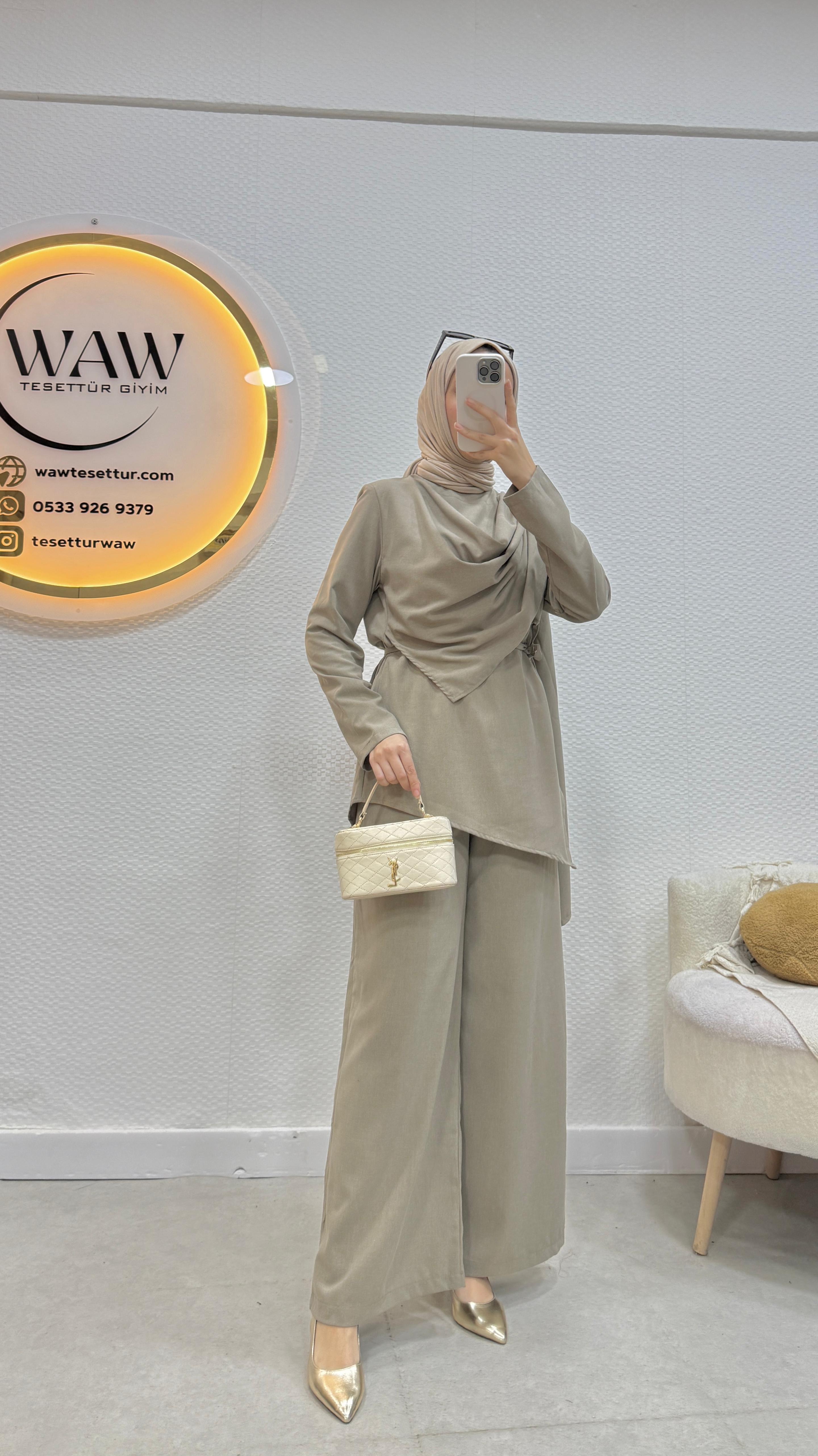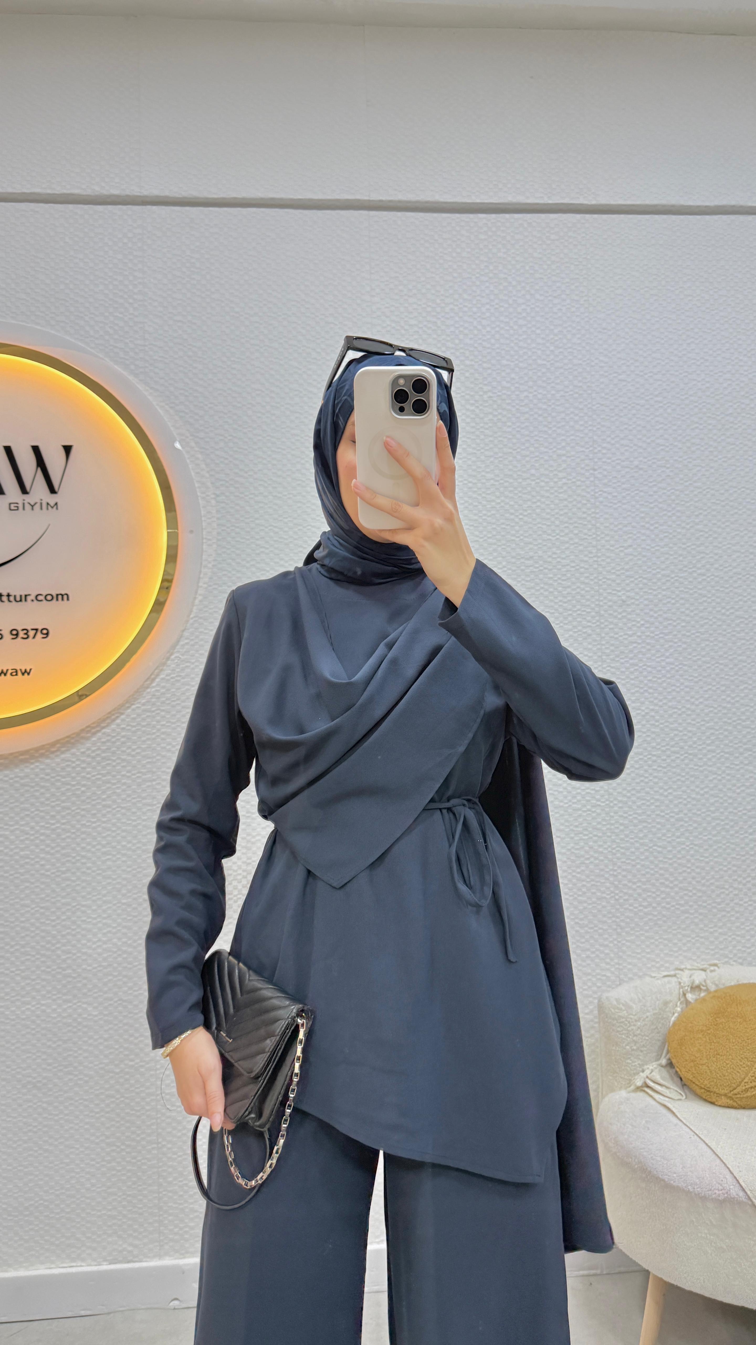 Sezen Takım Ürünümüz poliviskon kumaştan üretilmiştir. Tunik/Pantolon şeklinde ikili takımdır. Pantolon bel lastiklidir. Tuniğimiz seyyar kemerlidir. Tuniğimizin omuz kısmı şal detaylıdır. Tuniğimiz asimetrik kesimdir. Ürün boyu üst 75cm alt 100cm'dir.Ürünümüz tam kalıptır.36/38/40/42/44 bedenler mevcuttur. Manken 170/60kg 38 giymektedir.