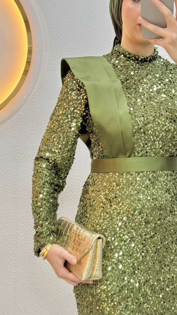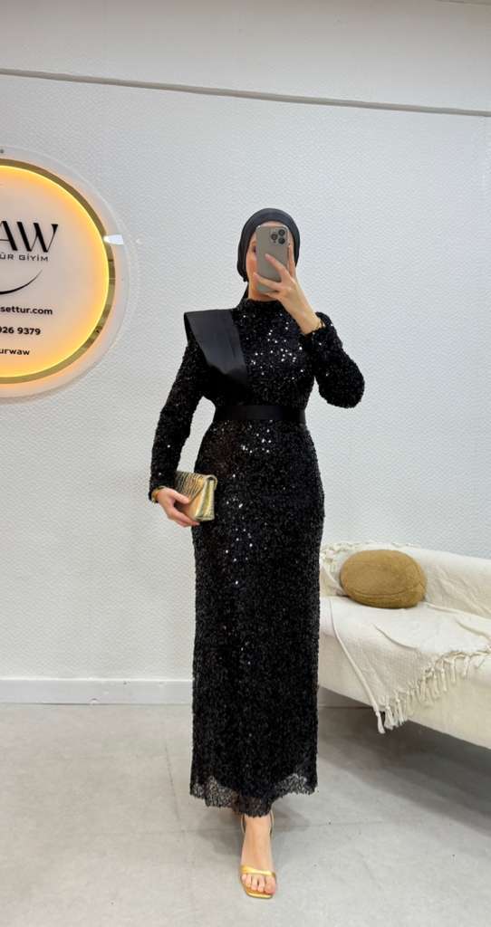 Ürünümüz pul payet kumaştan üretilmiştir. Hakim yakadır. Arka orta gizli fermuarlıdır. 36/38/40/42/44 bedenler mevcuttur.Kalem formdadır. Seyyar kemerlidir. Astarlıdır, iç göstermez. Manken 170/60kg 38 giymektedir.