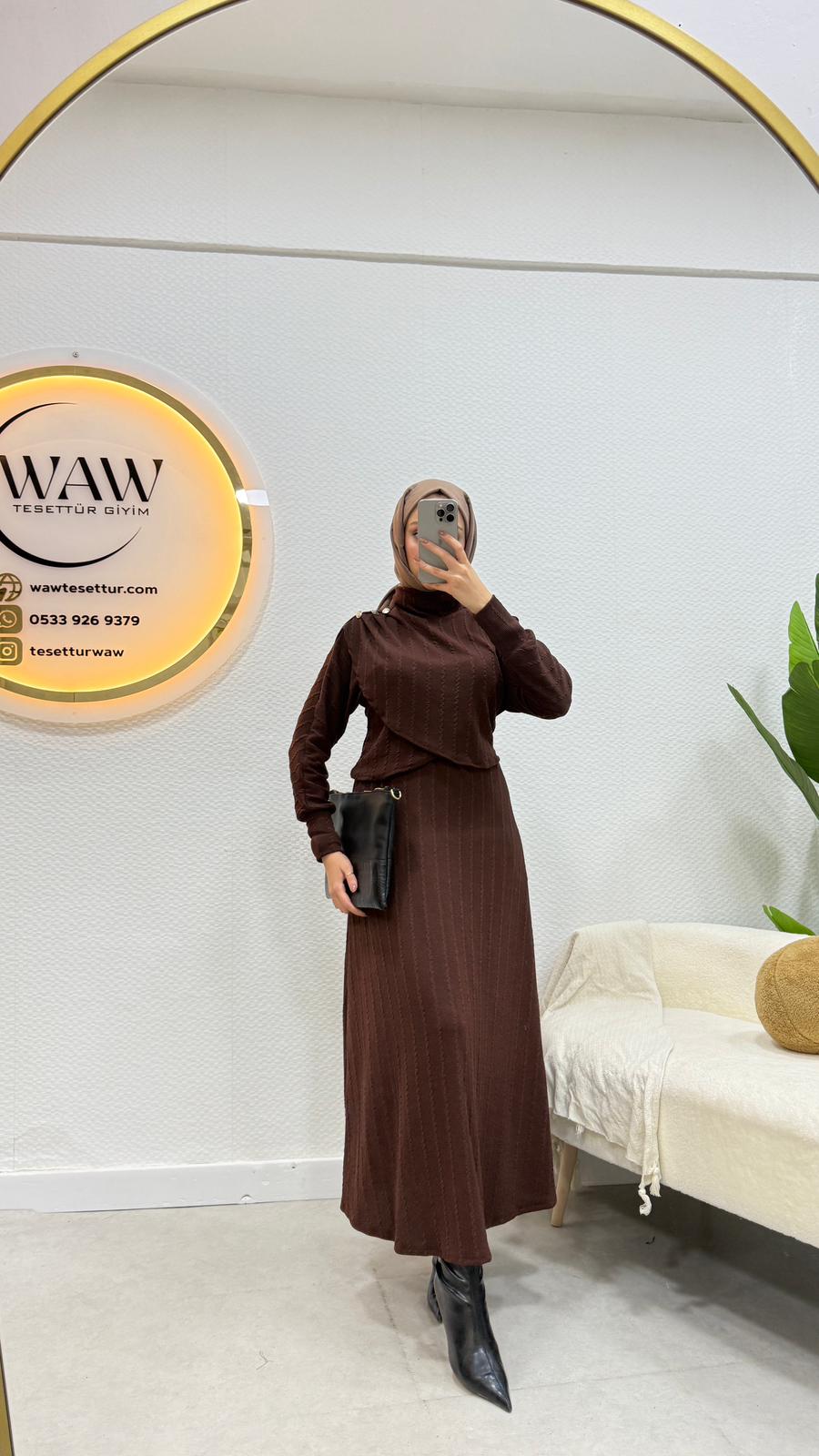 Burgu kumaştan üretilmiştir Üst kısmı 55cm, etek boyu 93cm’dirBeli lastiklidir 36/38/40/42/44 bedenleri mevcutturÇekim mankeni 170/60kg 38 bedeni tercih etmektedir