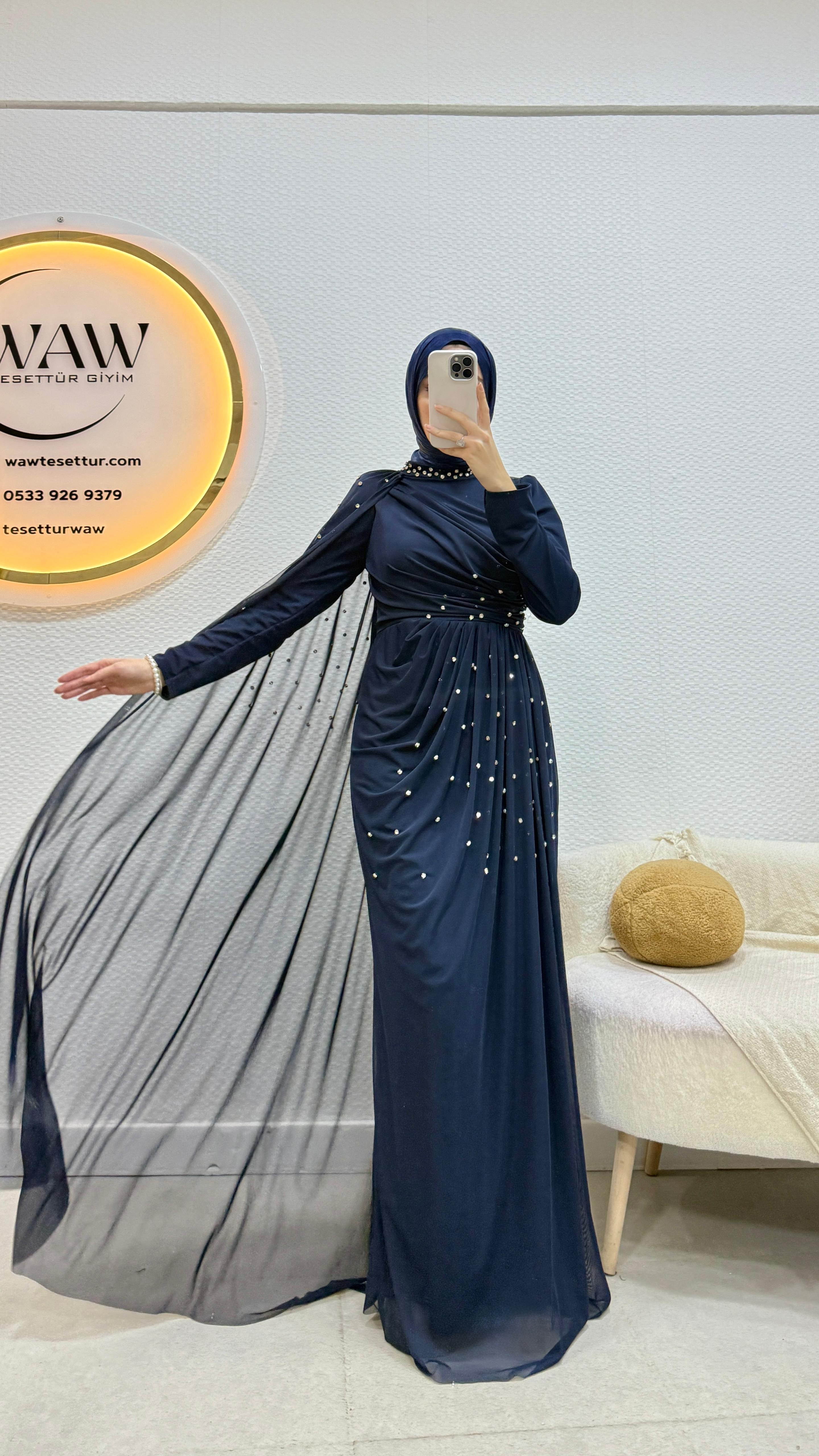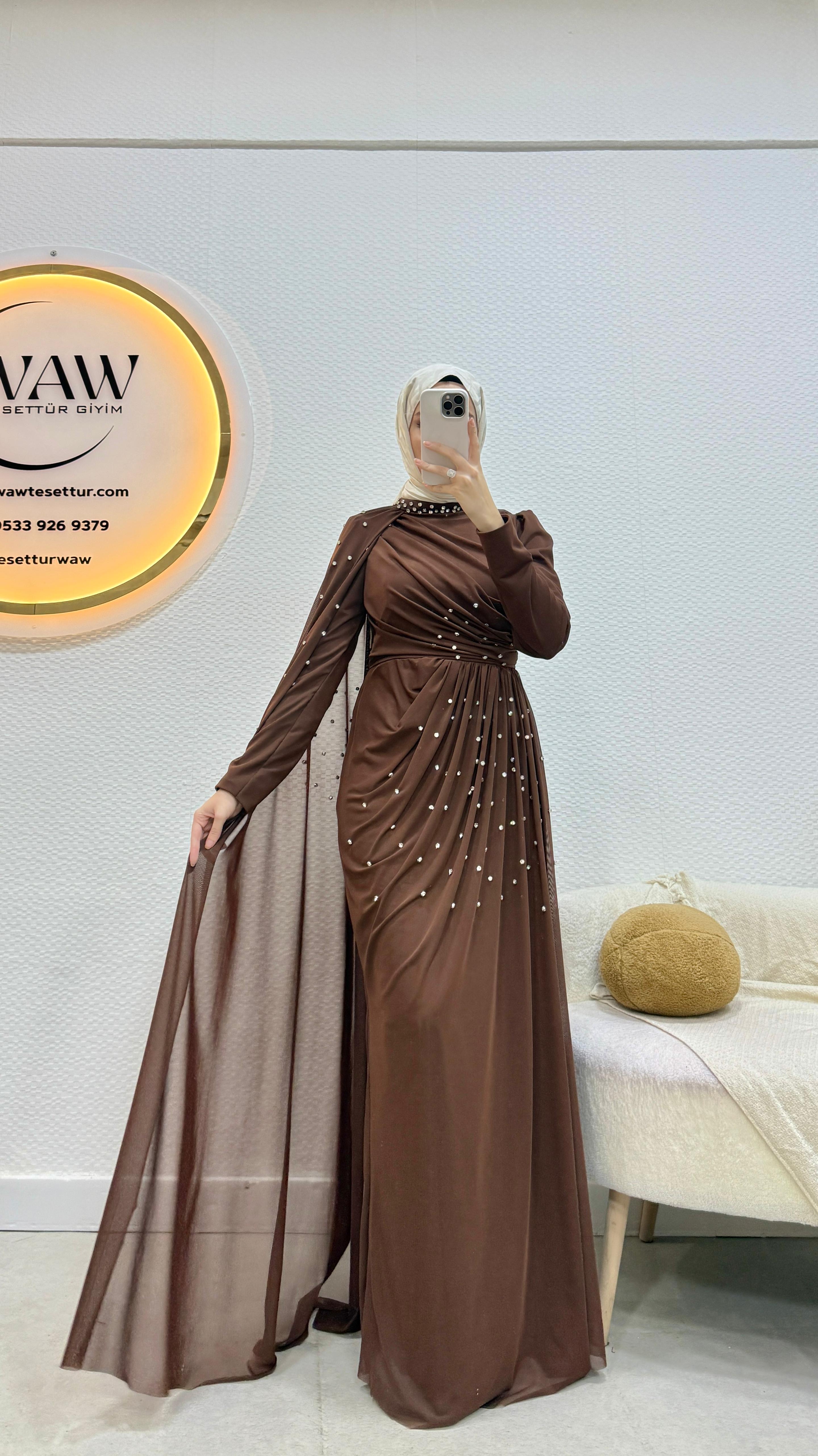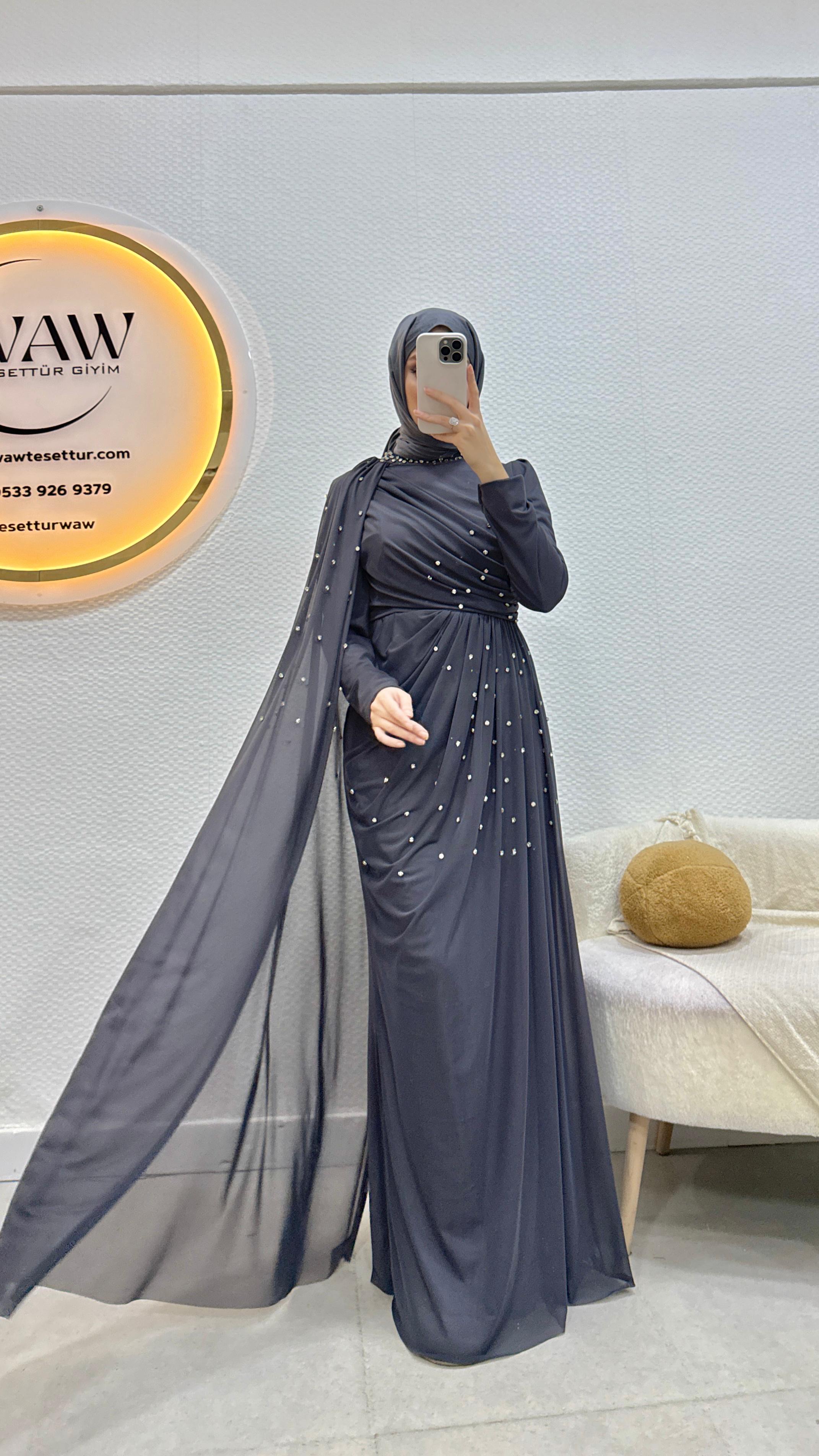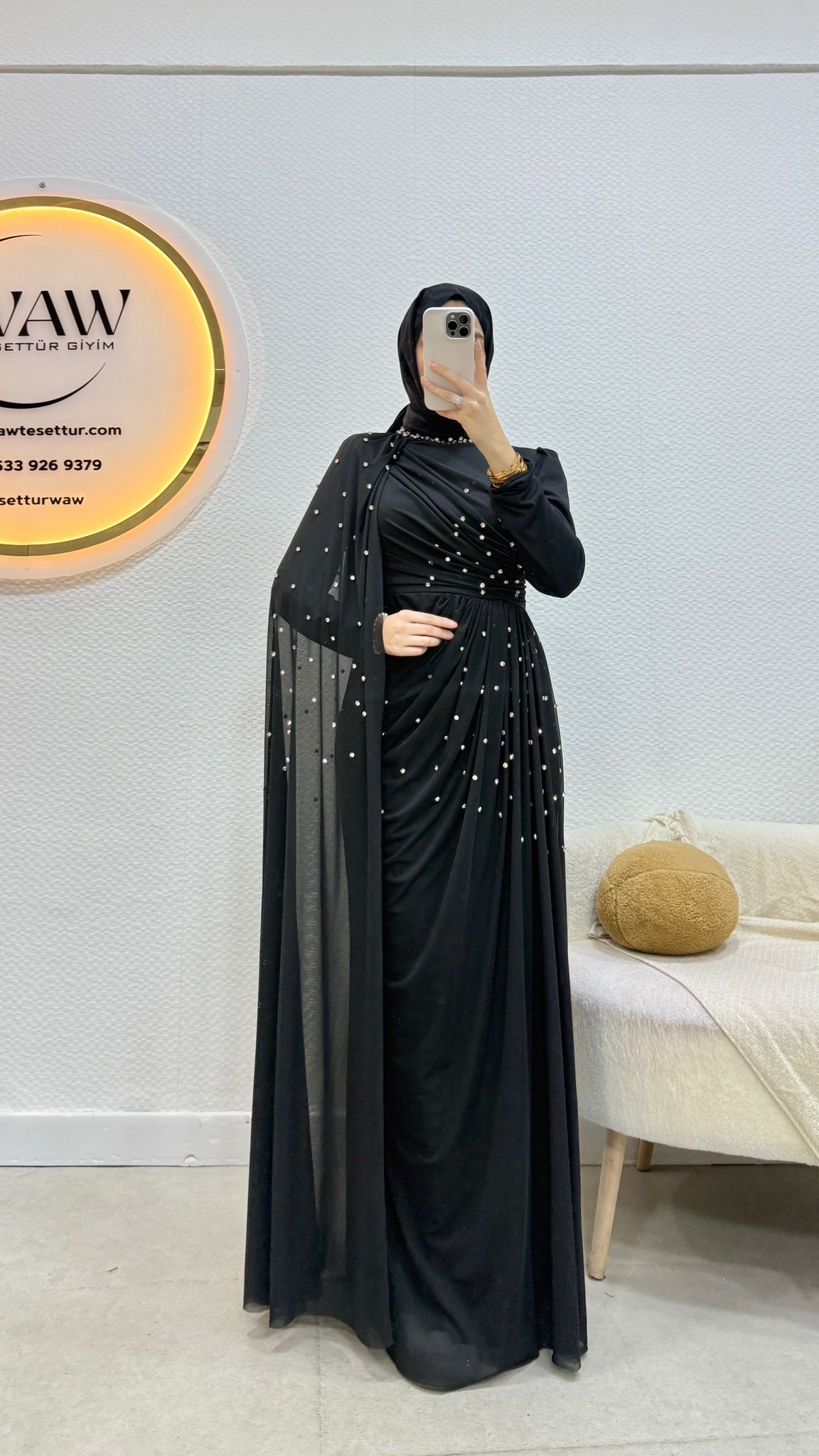 Gelince Haber VerÜrünümüz birinci kalite tül kumaştan üretilmiştir. Hakim yakadır. 36/38/40/42/44/46/48 bedenler mevcuttur. taş detaylıdır, astarlıdır iç göstermez. Pelerinlidir. Arka orta gizli fermuarlıdır. Manken 170/60kg 38 beden giymektedir.