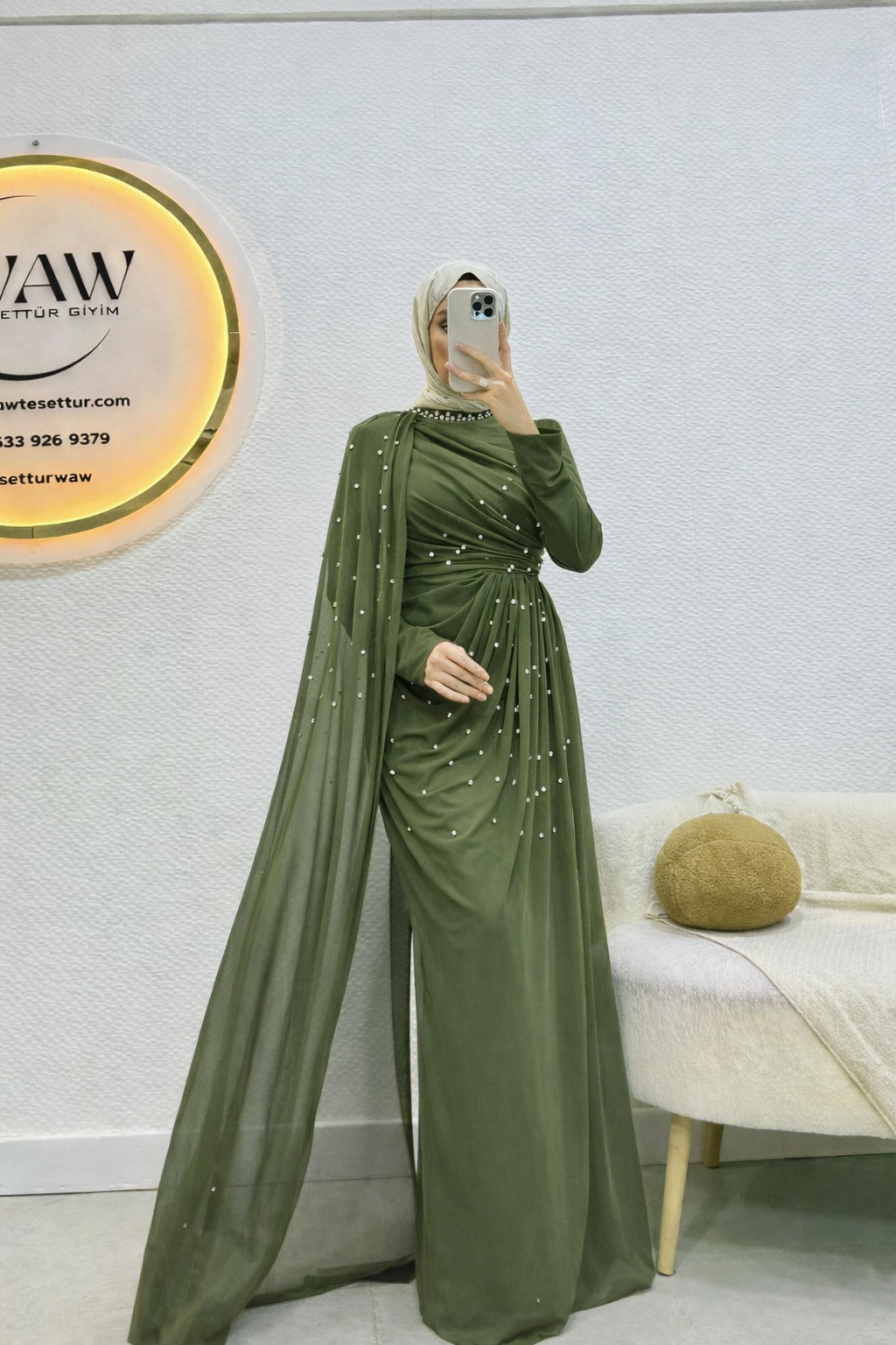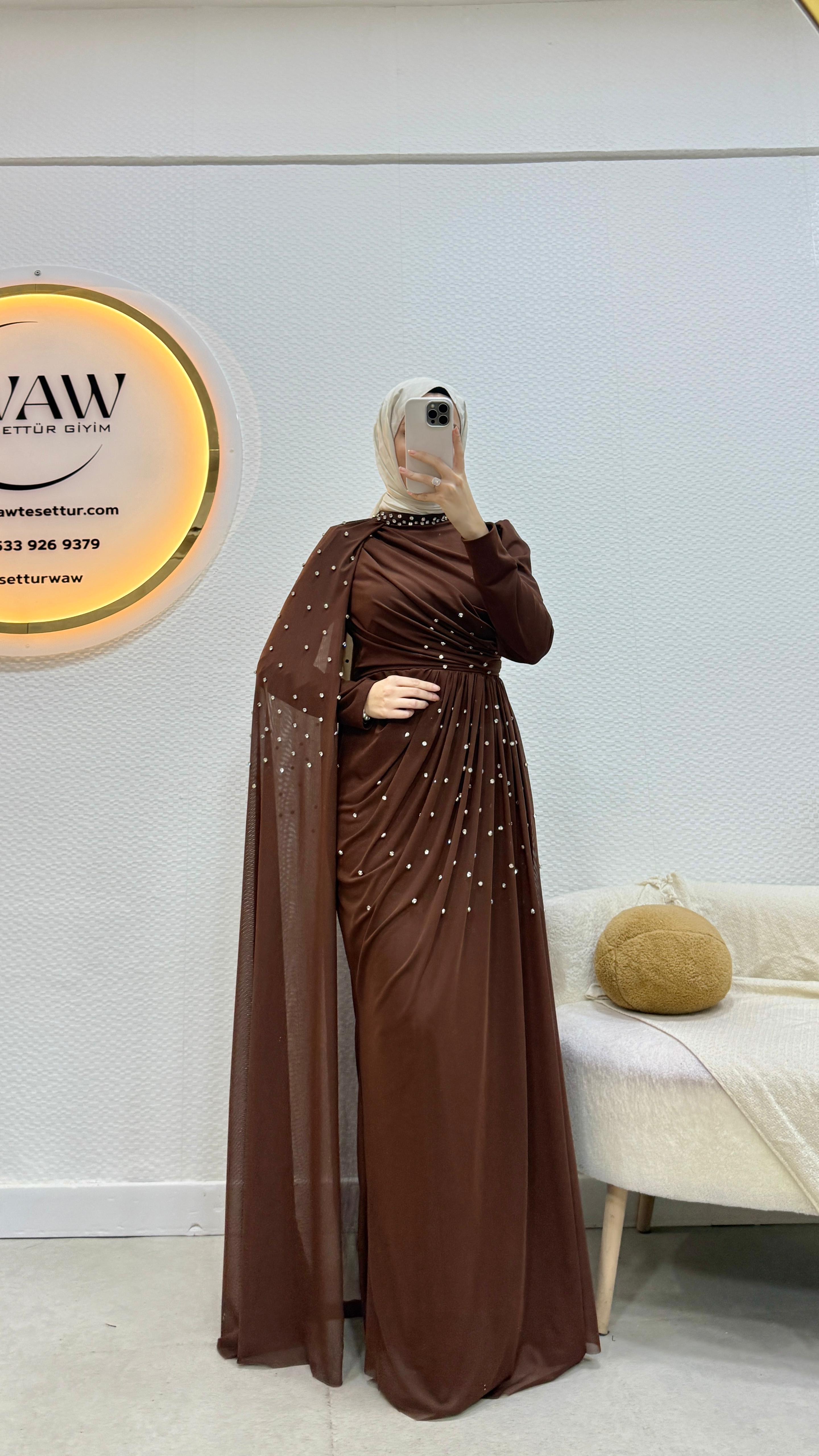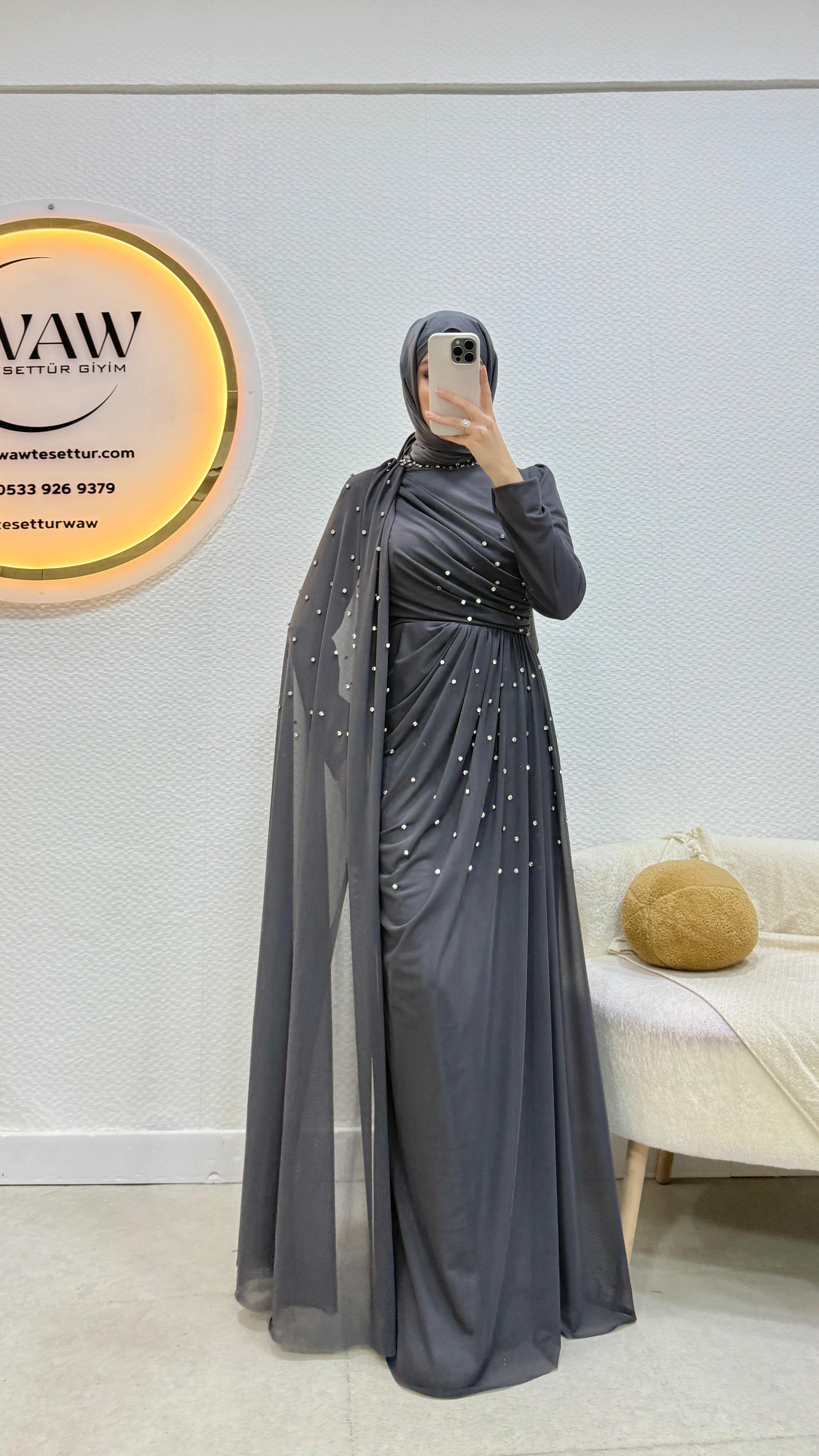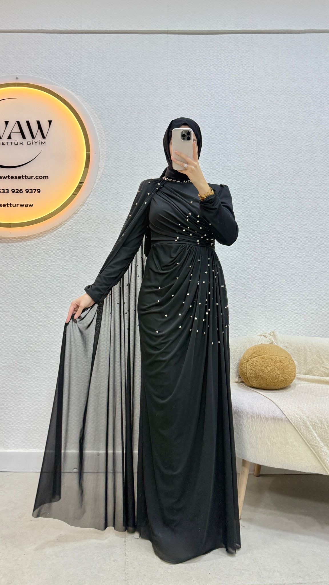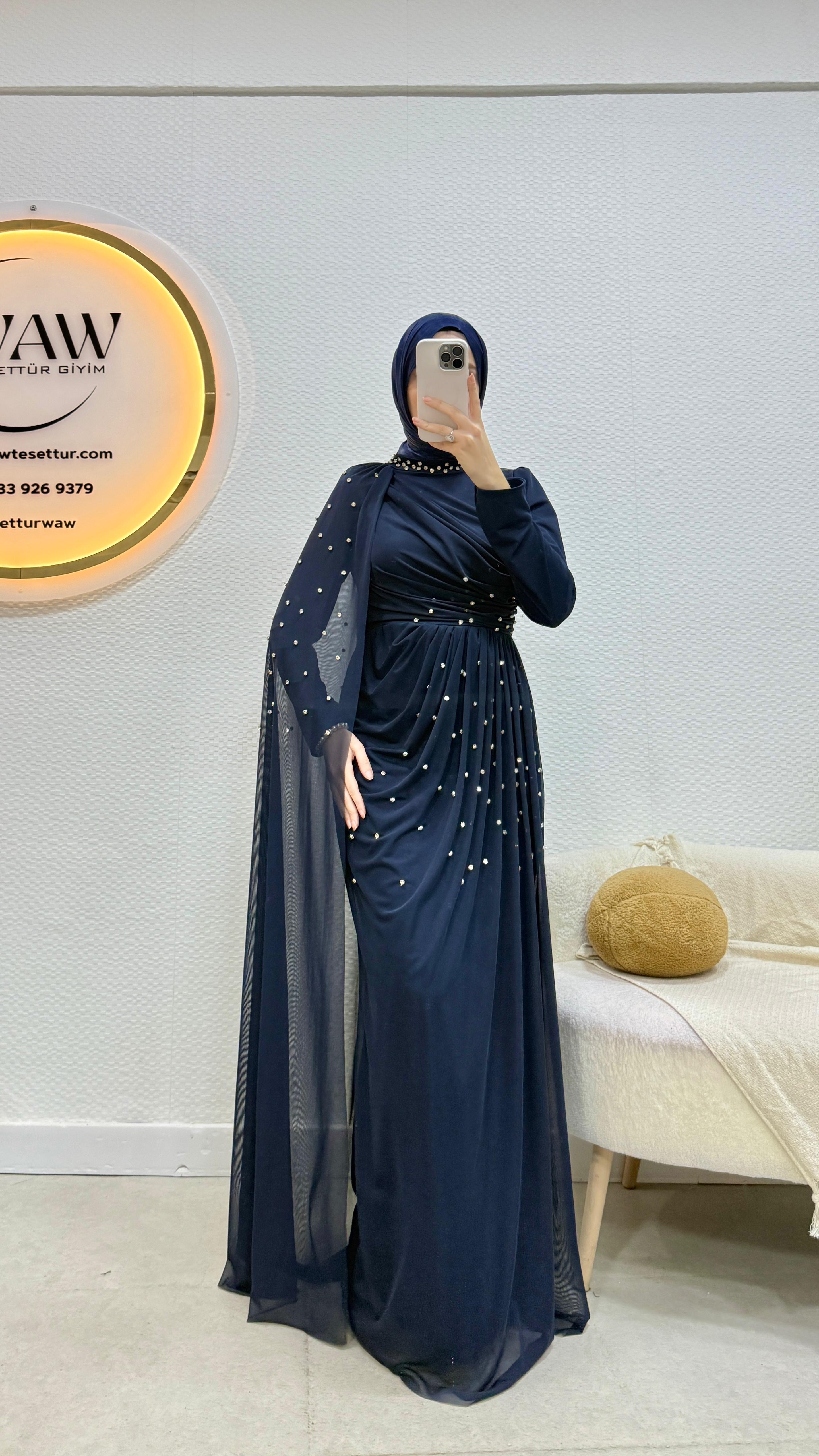 Gelince Haber VerÜrünümüz birinci kalite tül kumaştan üretilmiştir. Hakim yakadır. 36/38/40/42/44/46/48 bedenler mevcuttur. taş detaylıdır, astarlıdır iç göstermez. Pelerinlidir. Arka orta gizli fermuarlıdır. Manken 170/60kg 38 beden giymektedir.