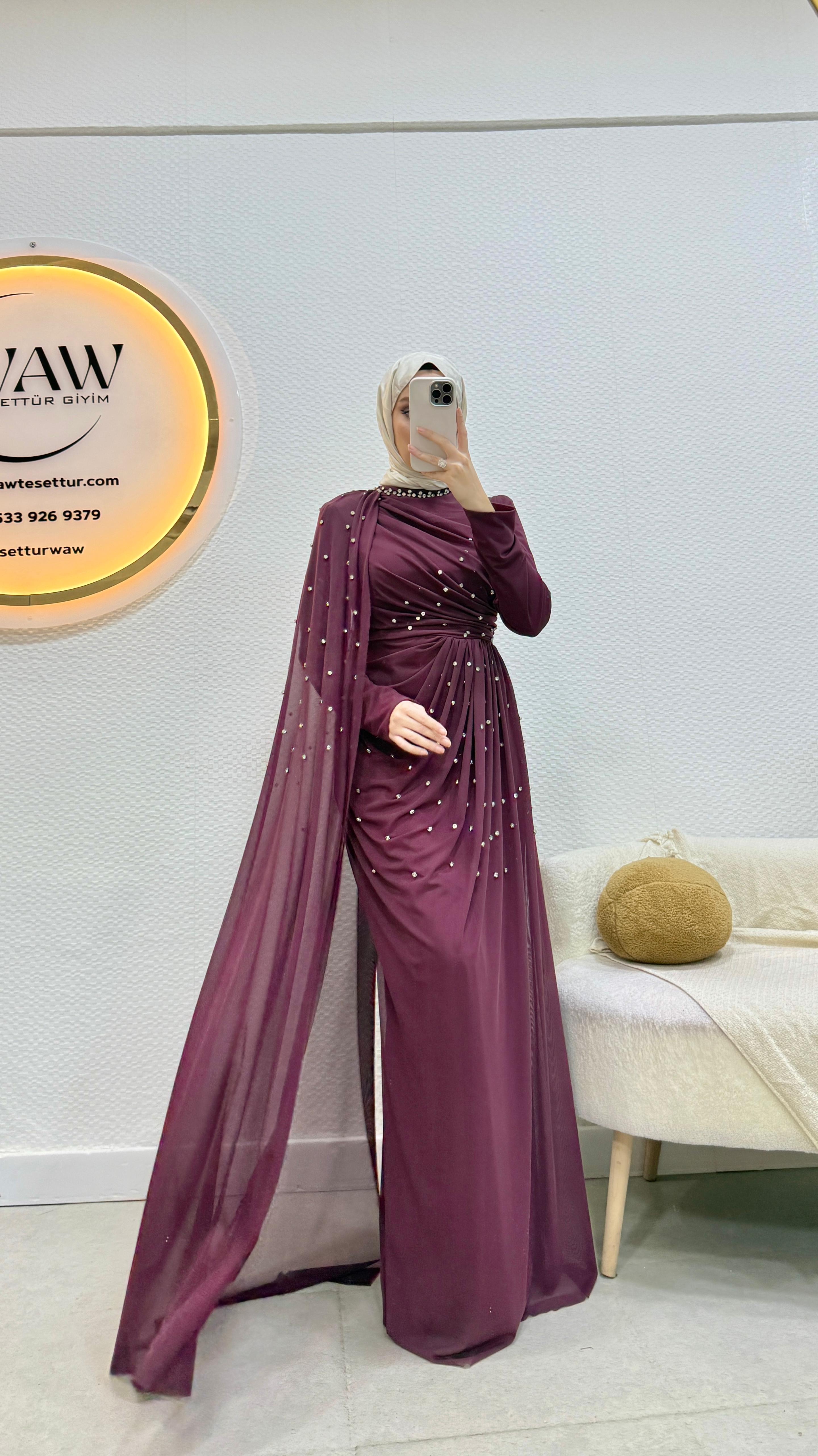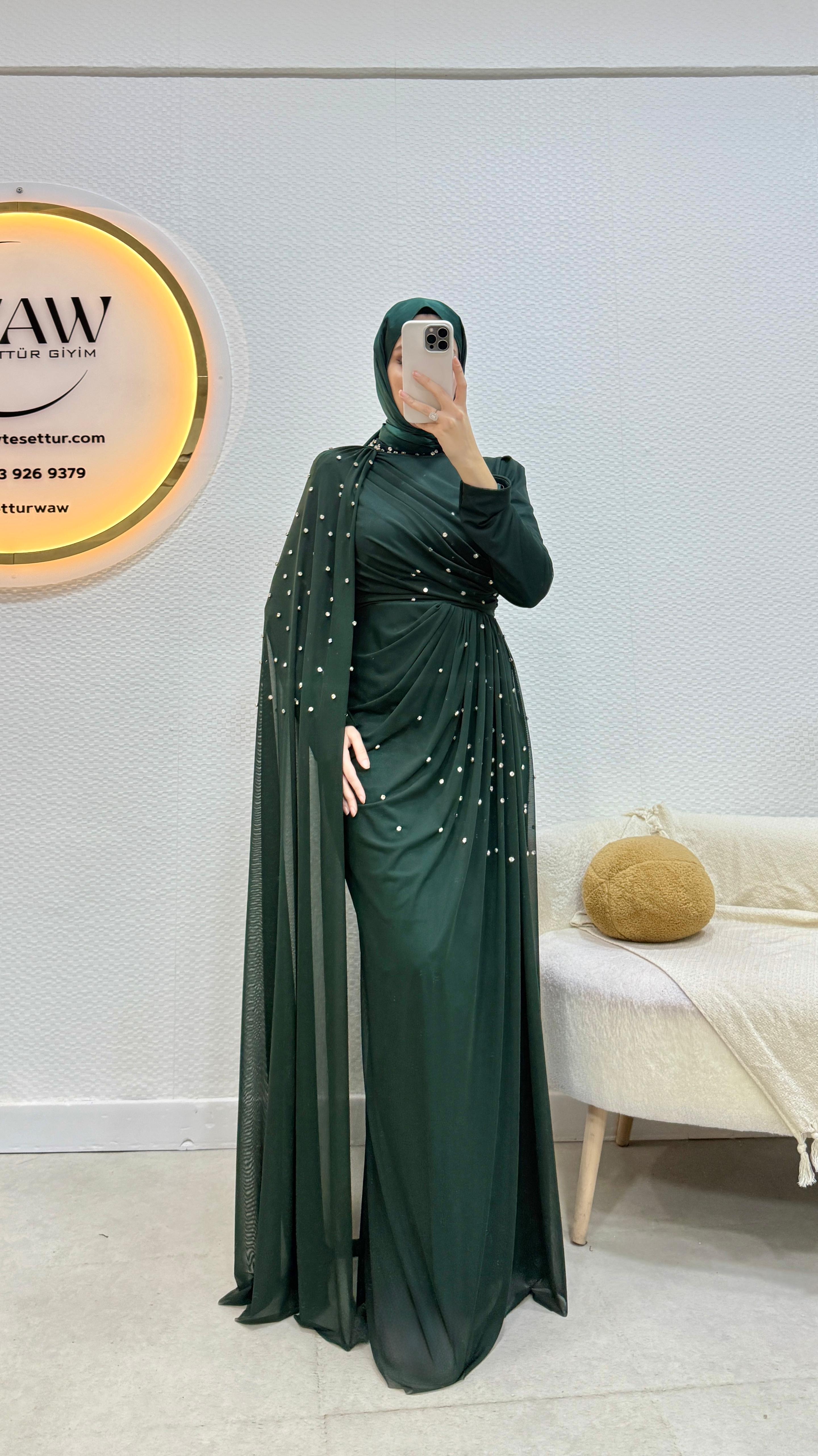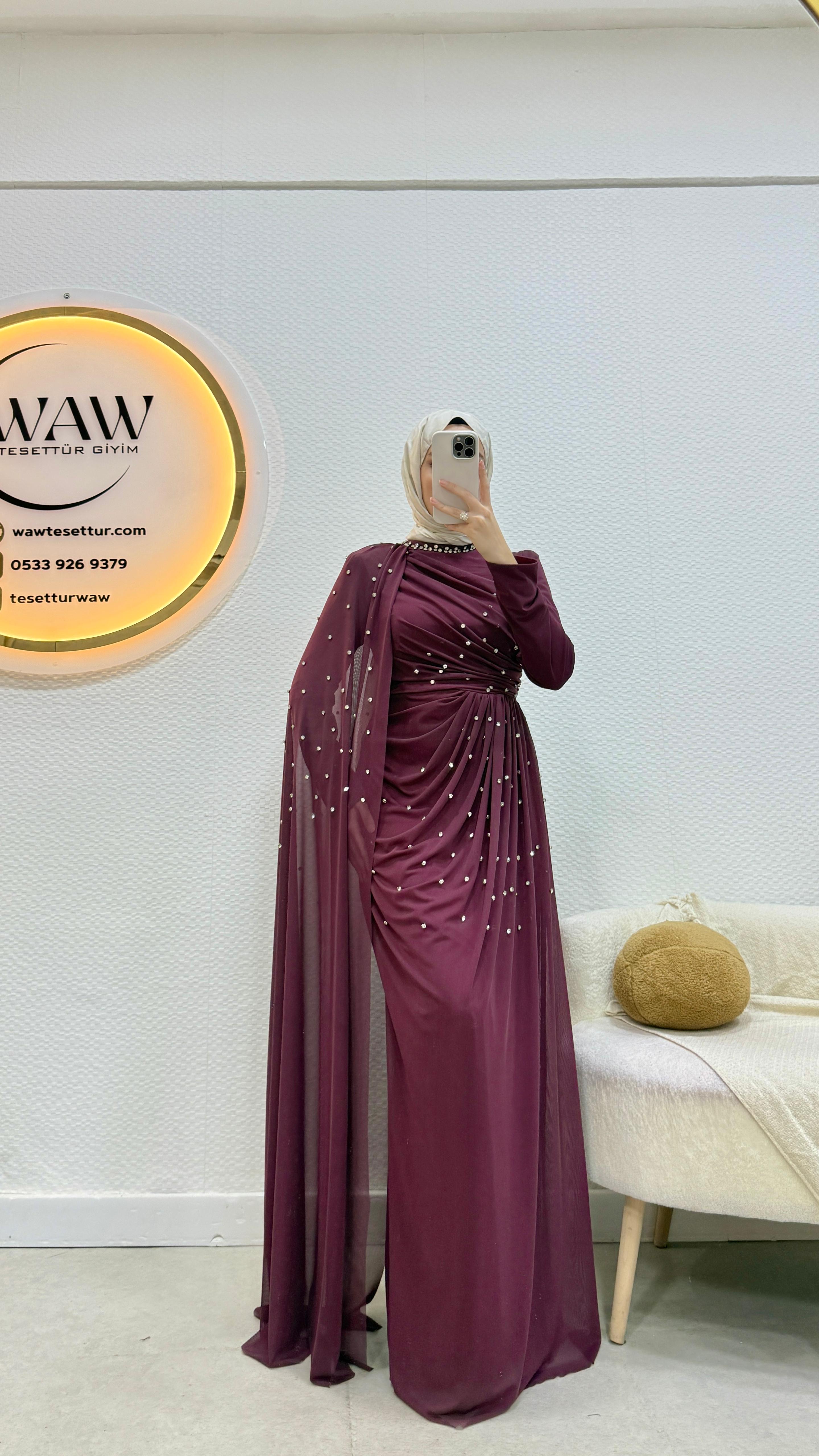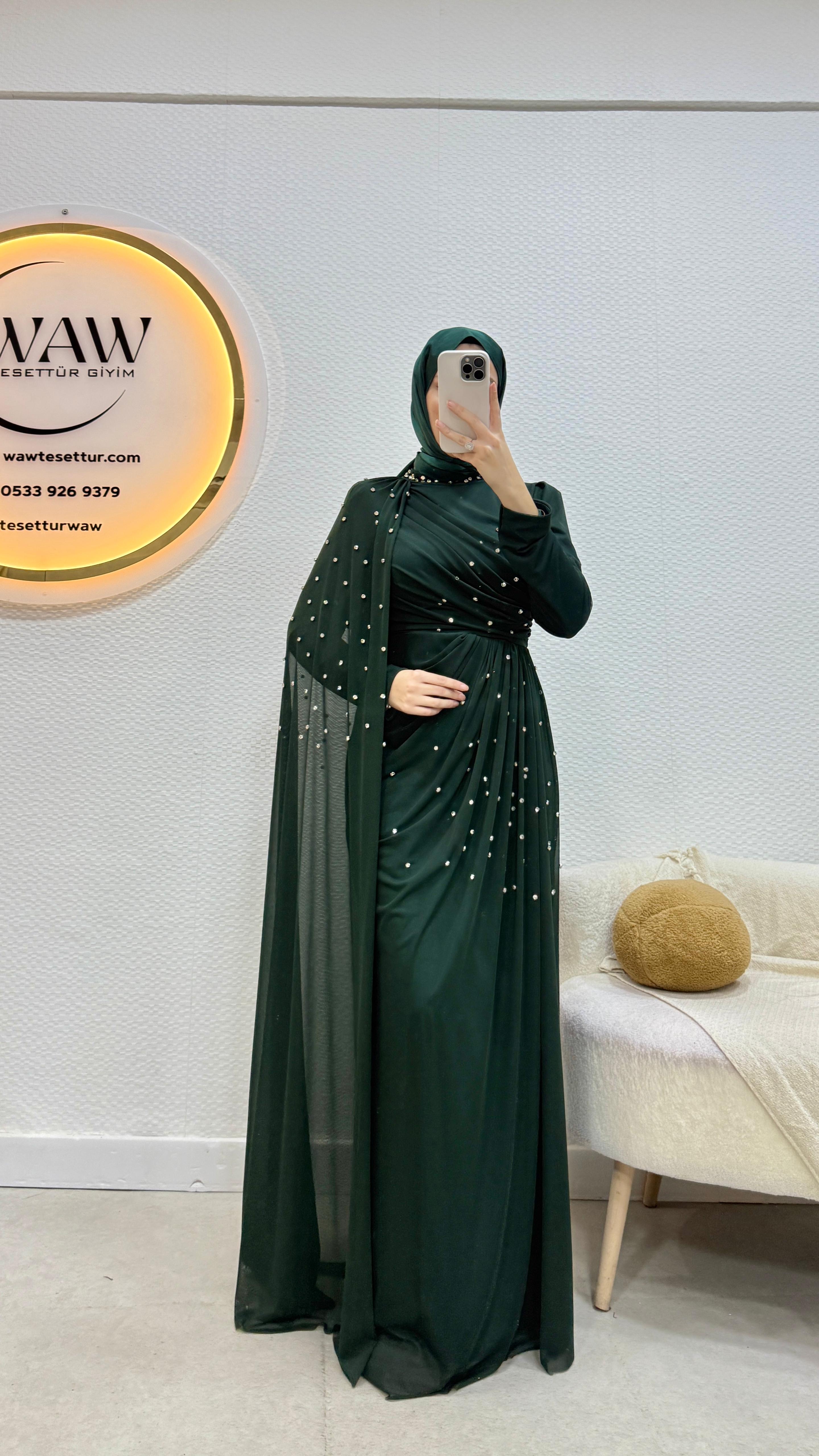 Gelince Haber VerÜrünümüz birinci kalite tül kumaştan üretilmiştir. Hakim yakadır. 36/38/40/42/44/46/48 bedenler mevcuttur. taş detaylıdır, astarlıdır iç göstermez. Pelerinlidir. Arka orta gizli fermuarlıdır. Manken 170/60kg 38 beden giymektedir.