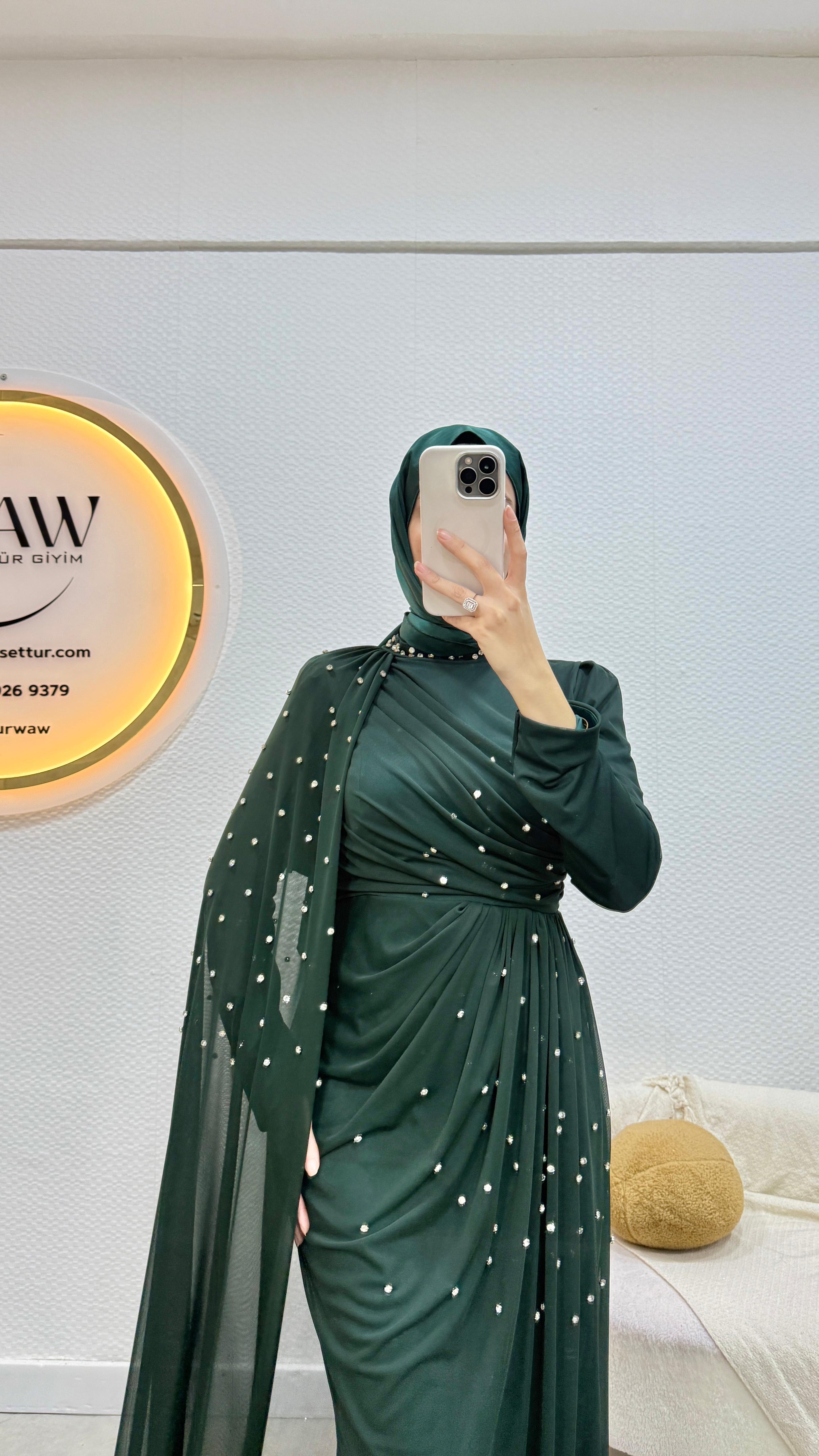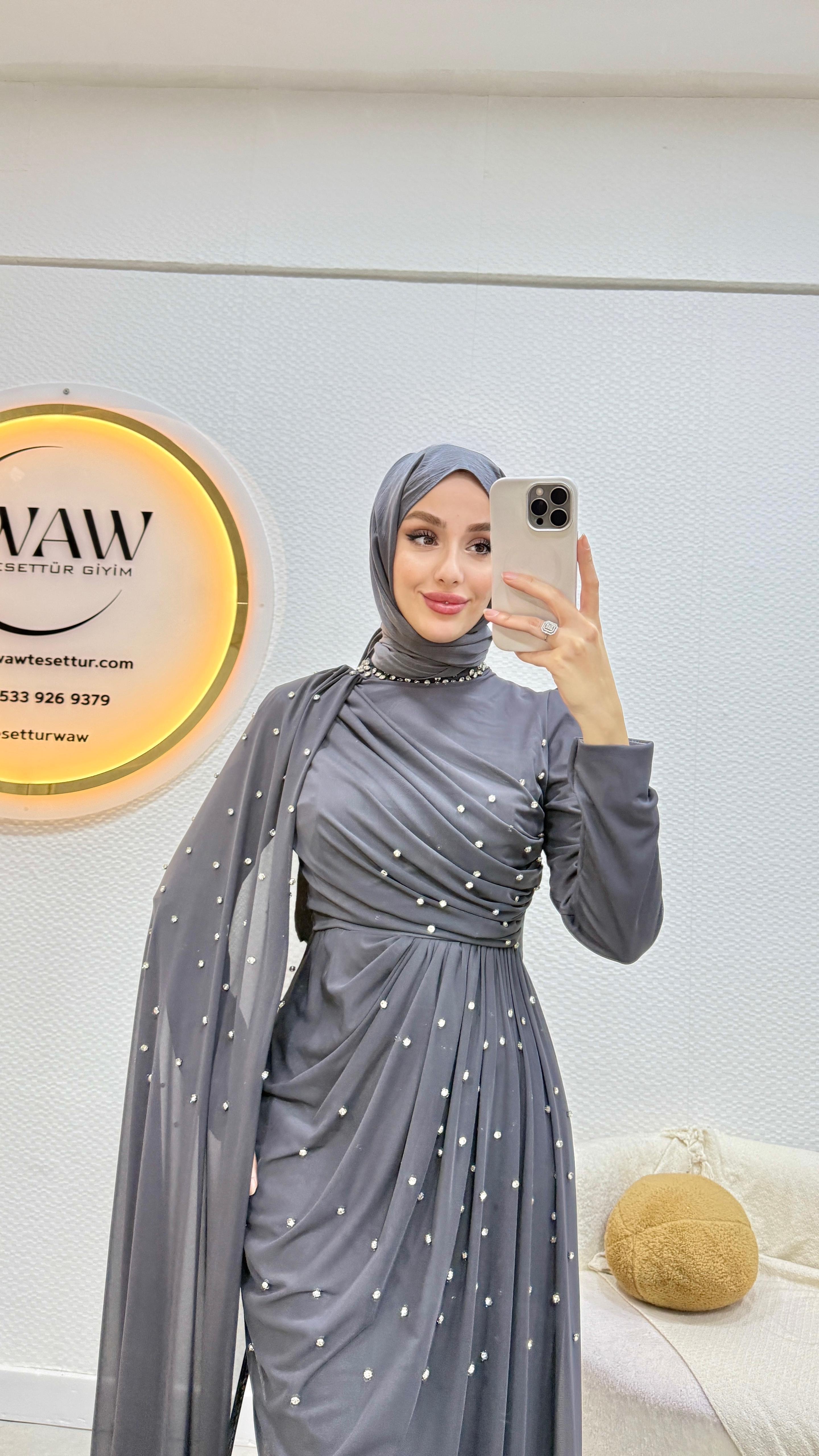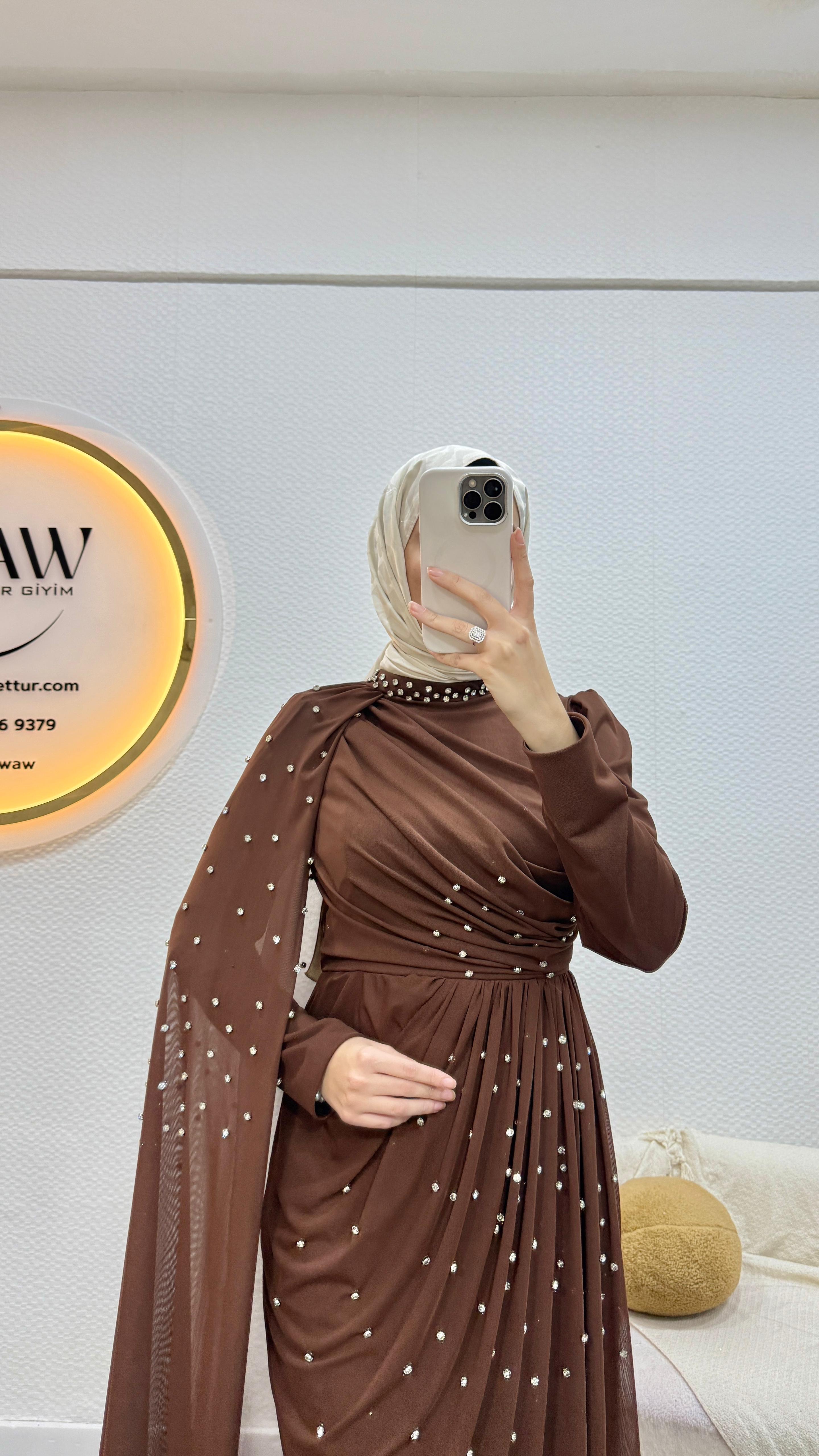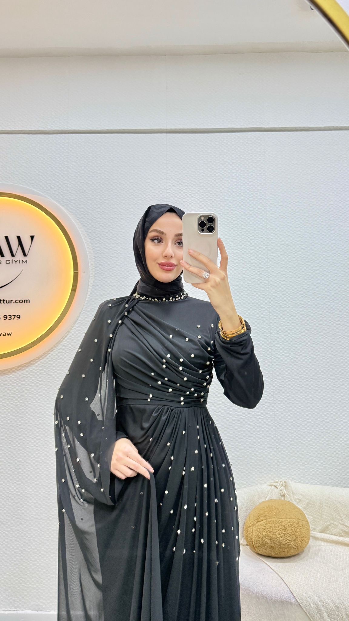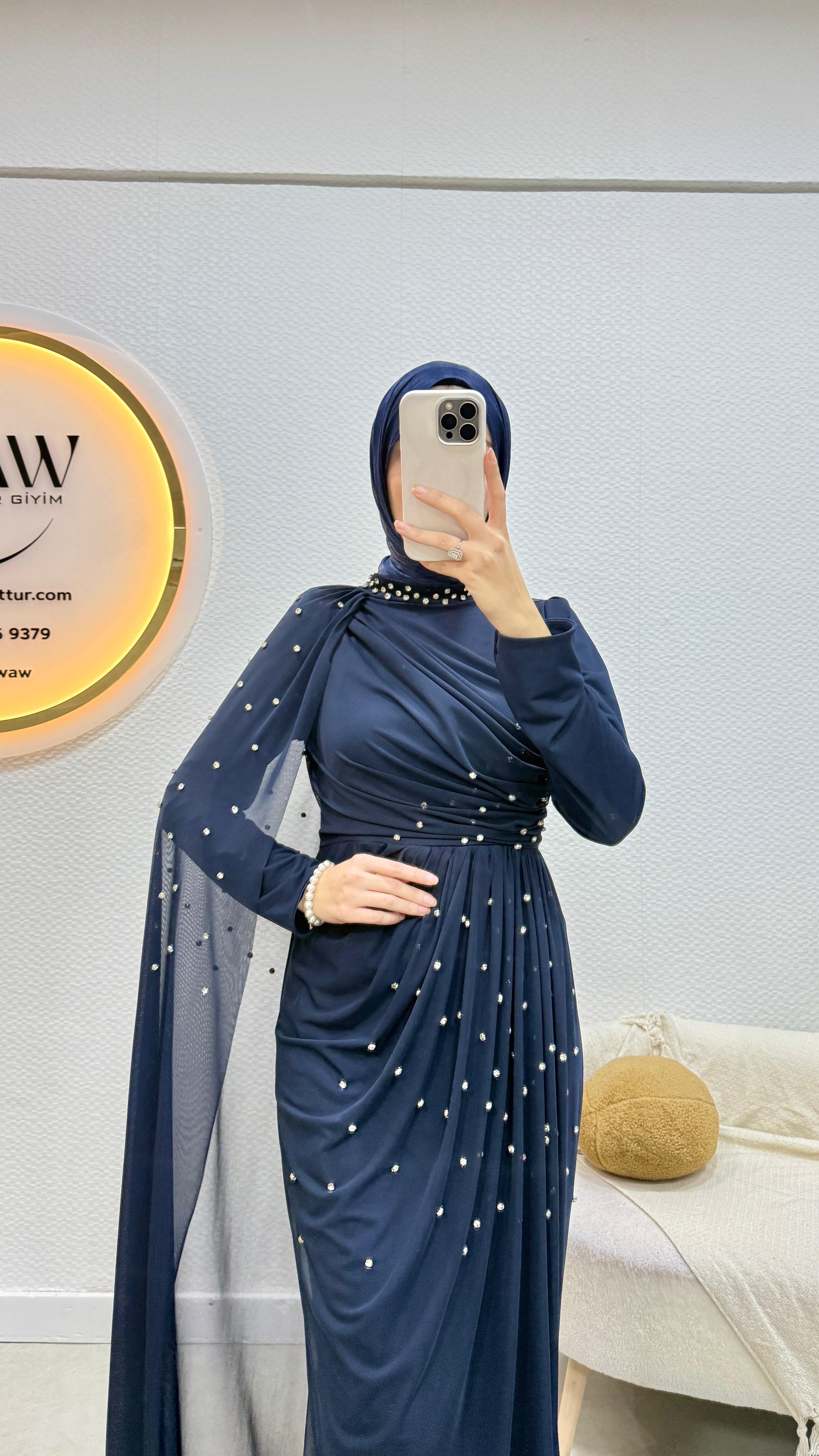 Gelince Haber VerÜrünümüz birinci kalite tül kumaştan üretilmiştir. Hakim yakadır. 36/38/40/42/44/46/48 bedenler mevcuttur. taş detaylıdır, astarlıdır iç göstermez. Pelerinlidir. Arka orta gizli fermuarlıdır. Manken 170/60kg 38 beden giymektedir.