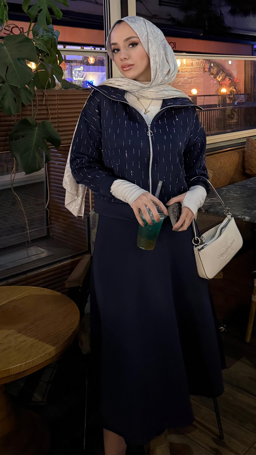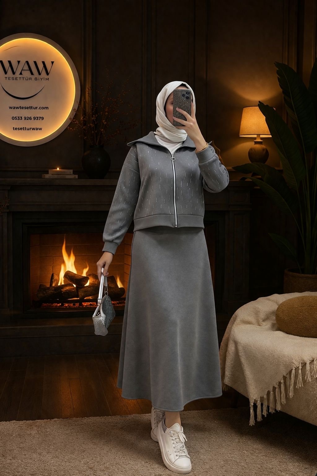 Etek/yelek olarak ikili takımdır, fermuar kullanılabilir.