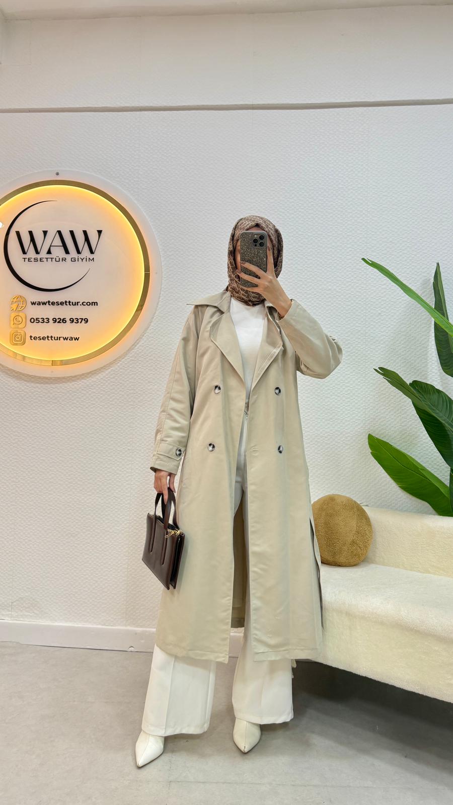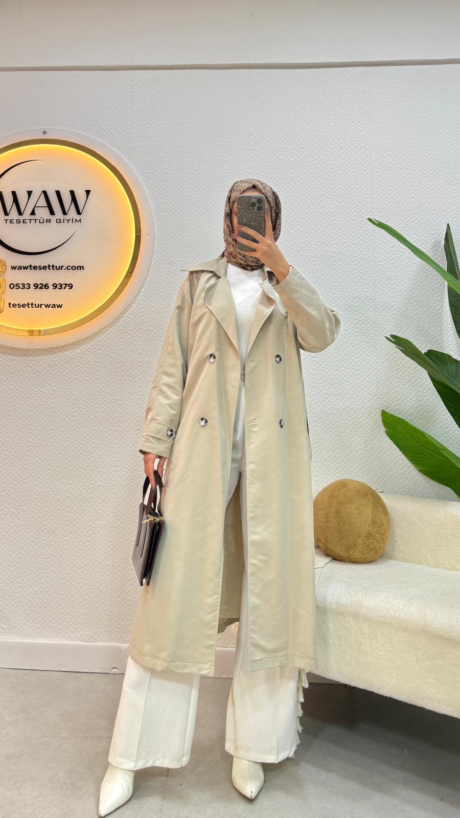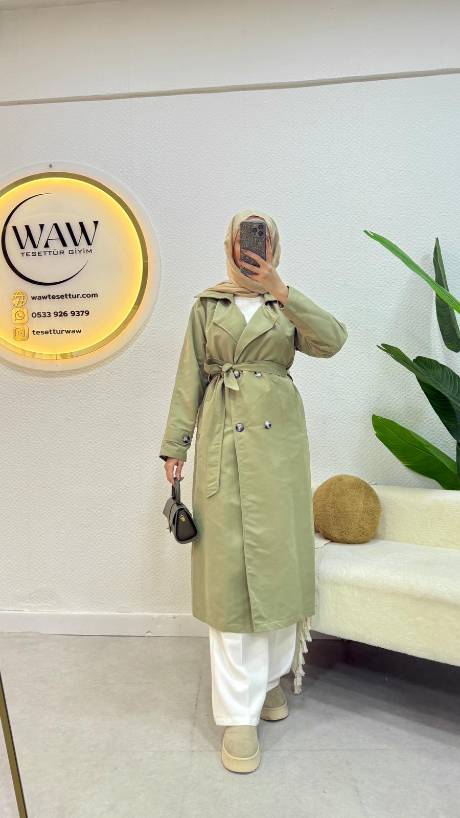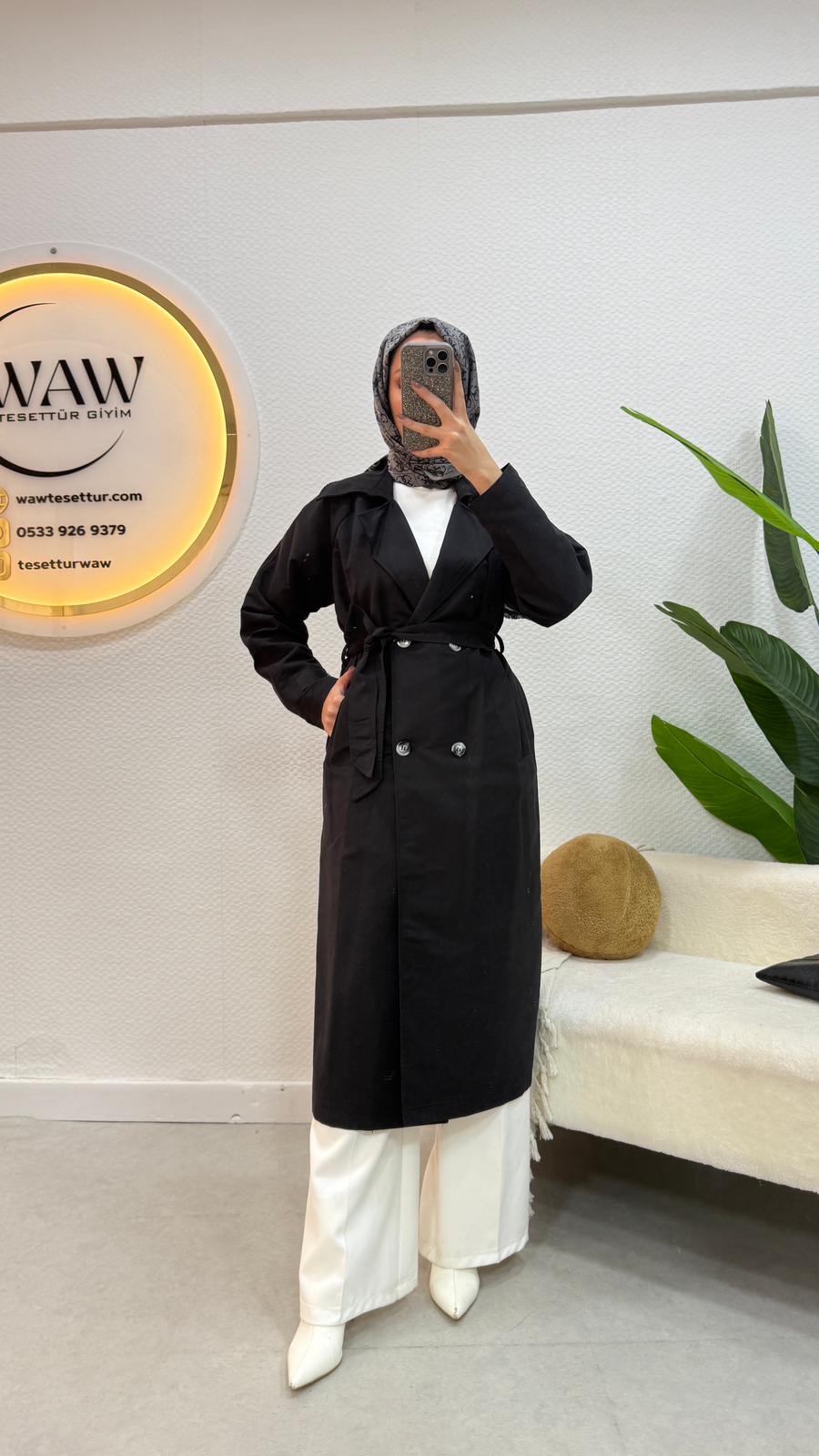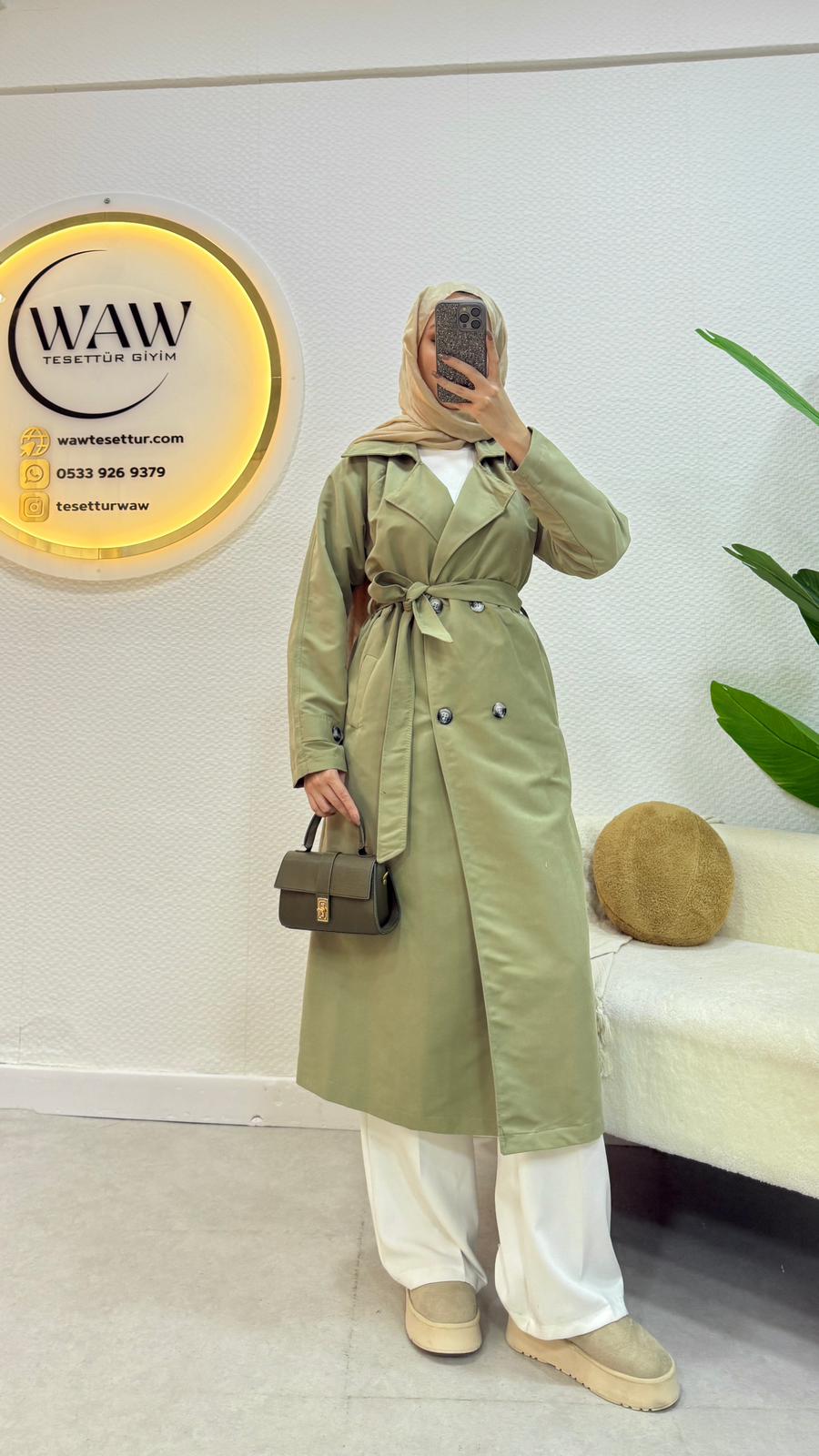 Kruvaze yaka, manşet detaylıdır.