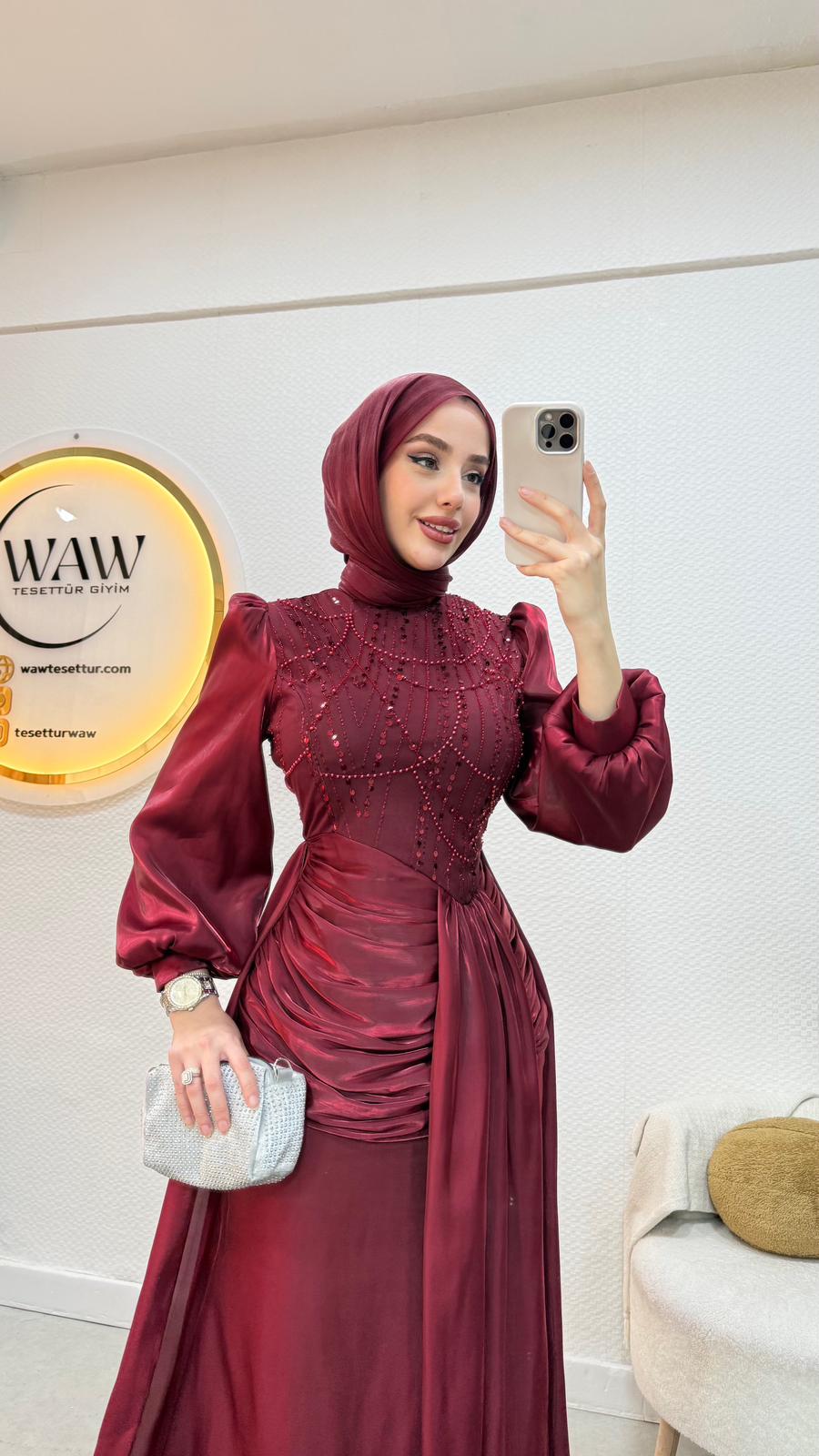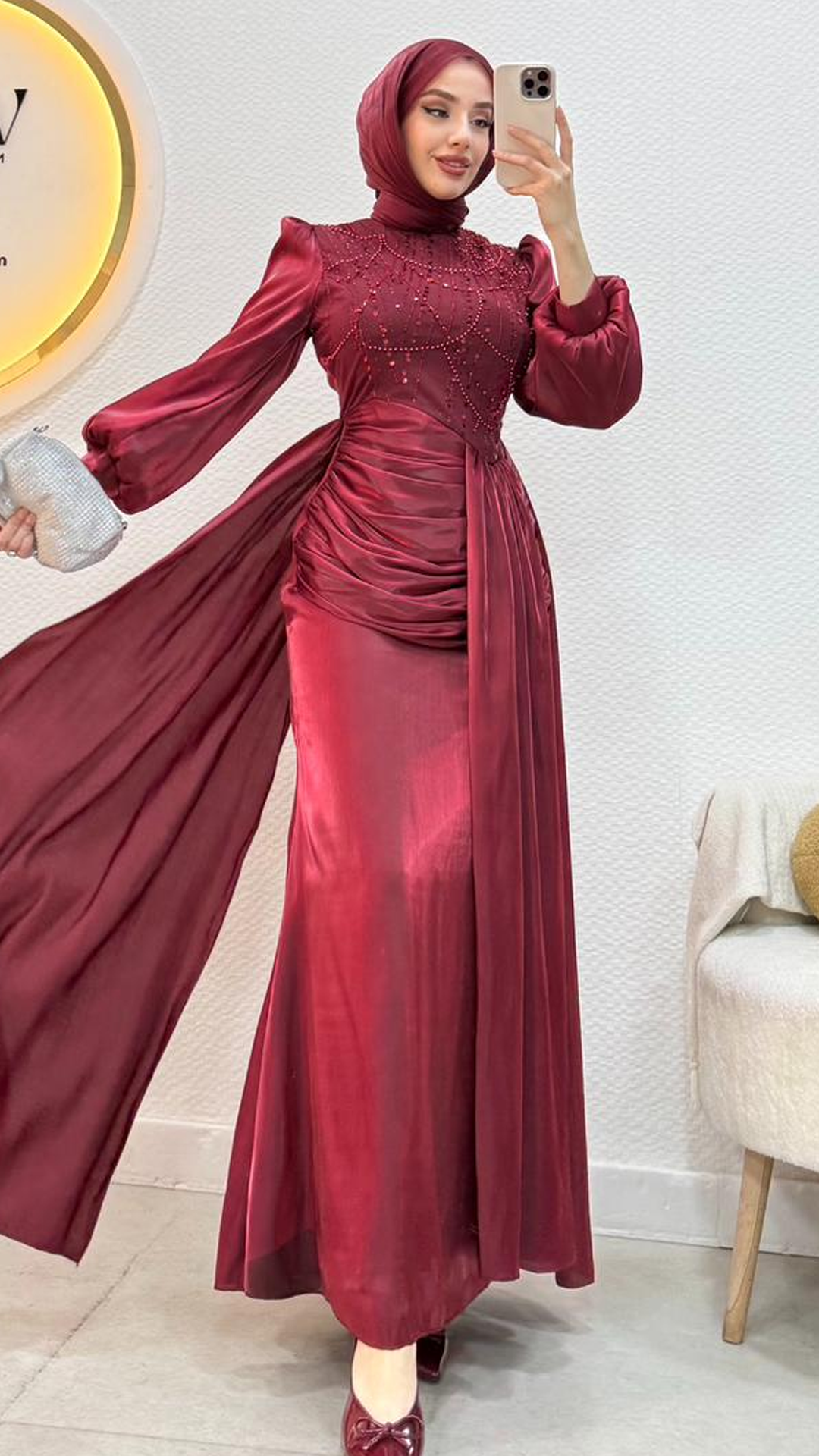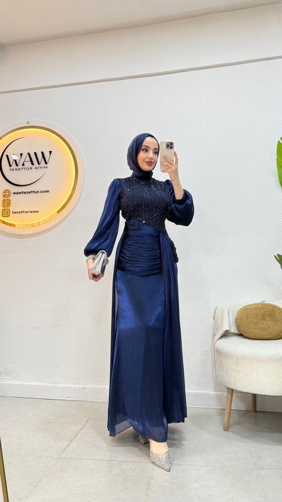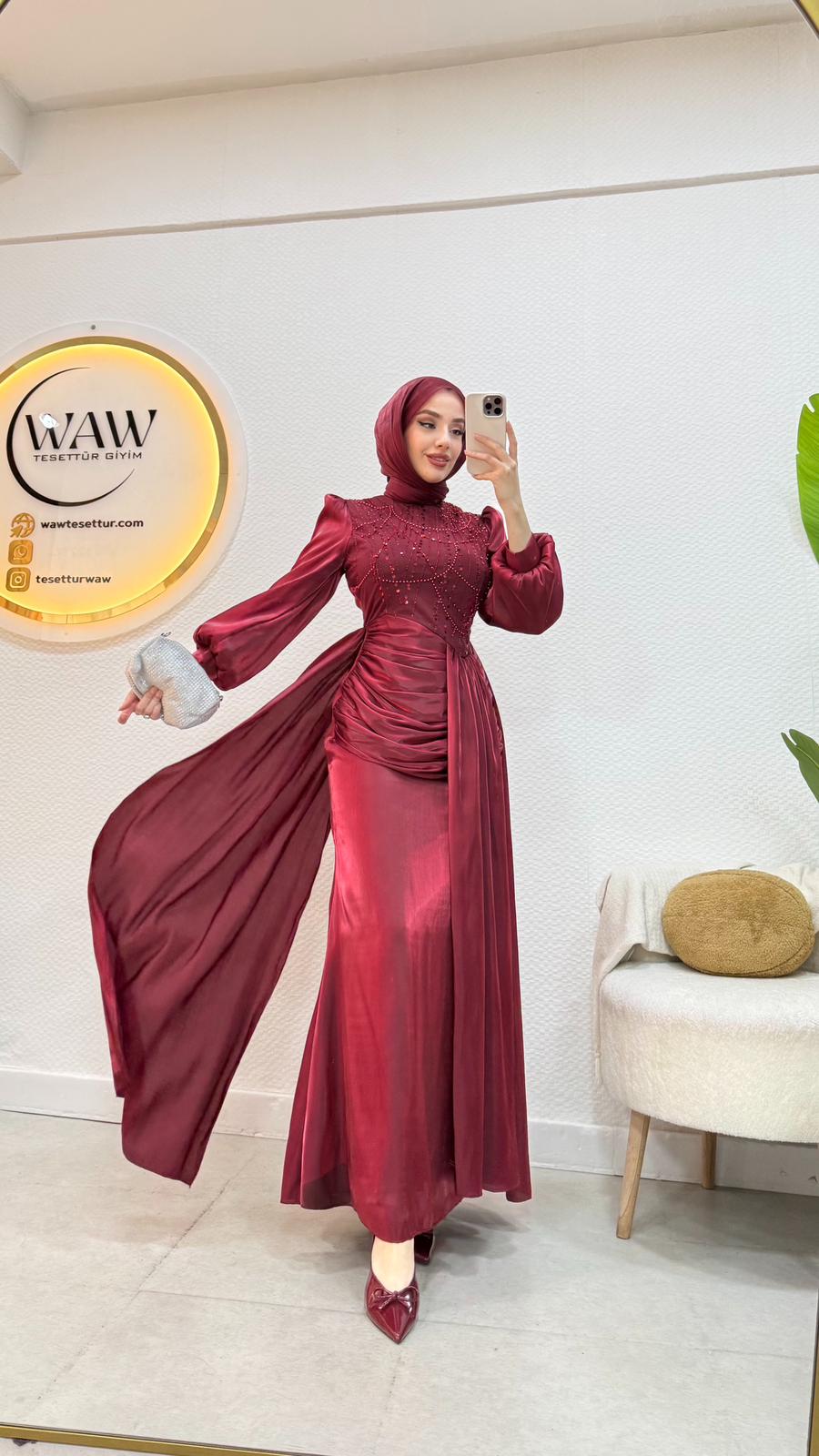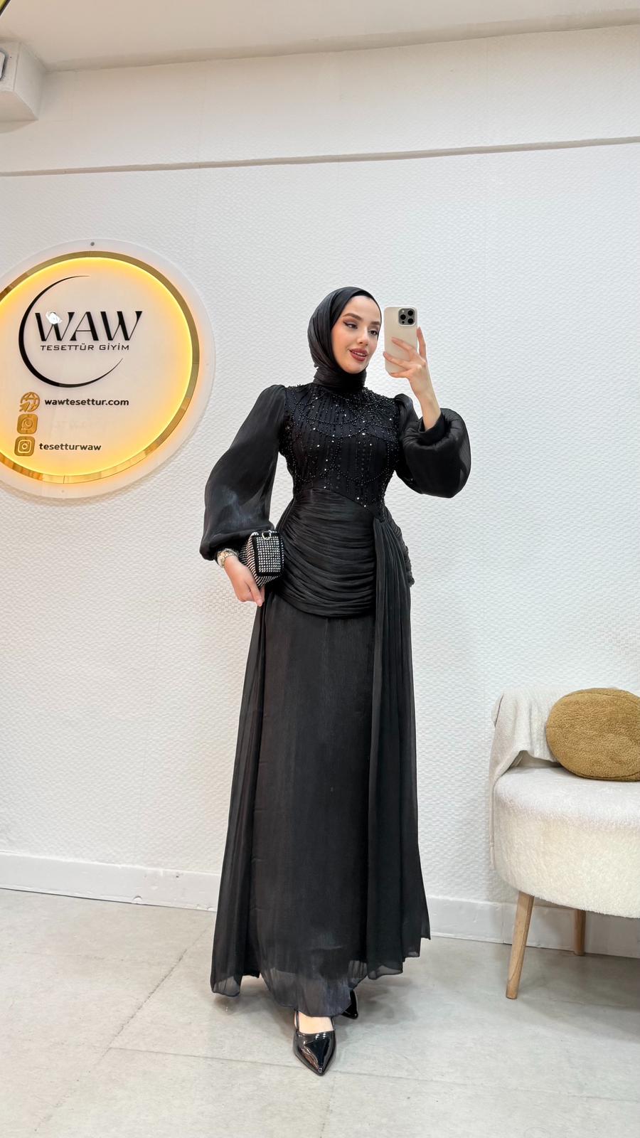 Janjan payet kumaştan üretilmiştir Balon koldur Orta arka gizli fermuarlıdır Tam kalıptır Boy:145 Beden 36/38/40/42/44