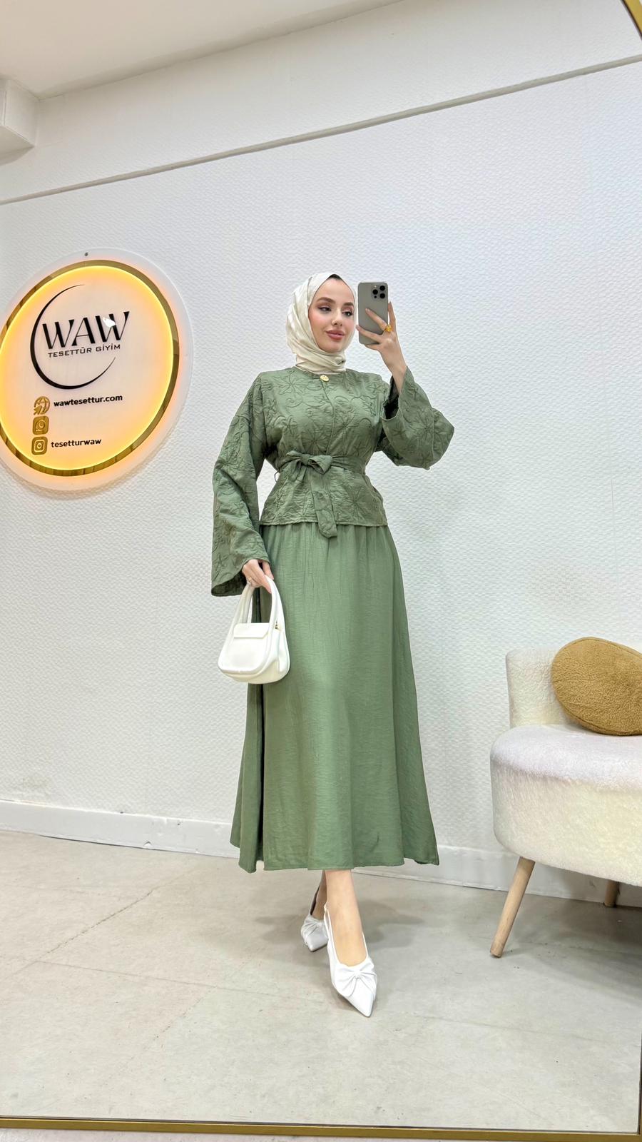 Jakarli kumaştan üretilmiştir Seyyar kemerlidirYakası düğmelidirÜst : 56cmAlt : 95cmS / M/ L / XL / XXL bedenleri mevcuttur. Çekim mankeni 170/60kg 38 beden tercih etmektedir