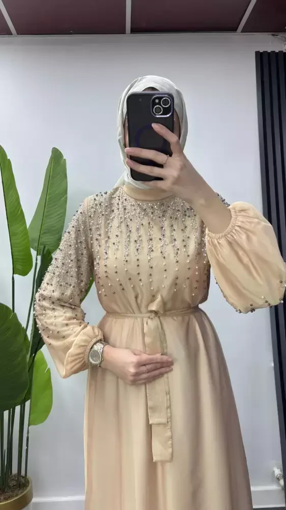 Gelince Haber VerÜrünümüz birinci kalite şifon kumaştan üretilmiştir. Astarlıdır iç göstermez. Taş işleme detaylıdır. Arka orta gizli fermuarlıdır. Hakim yakadır. 36/38/40/42/44 bedenler mevcuttur. Manşet lastiklidir. Etek ucu fırfır detaylıdır.Ürün boyu 140cm’dir. seyyar kemerlidir. Manken 170/60kg 38 giymektedir.